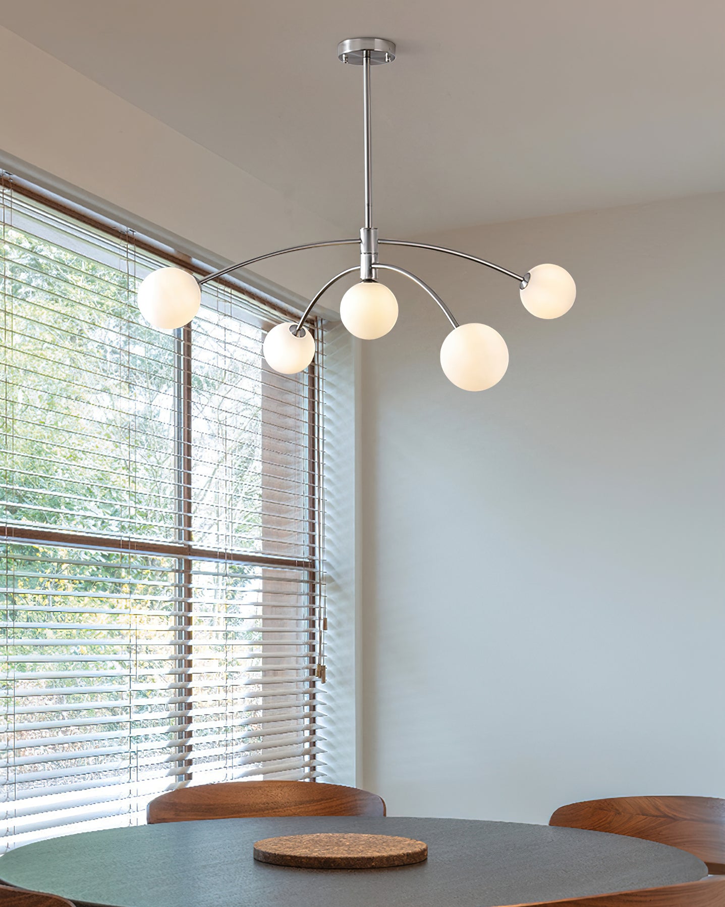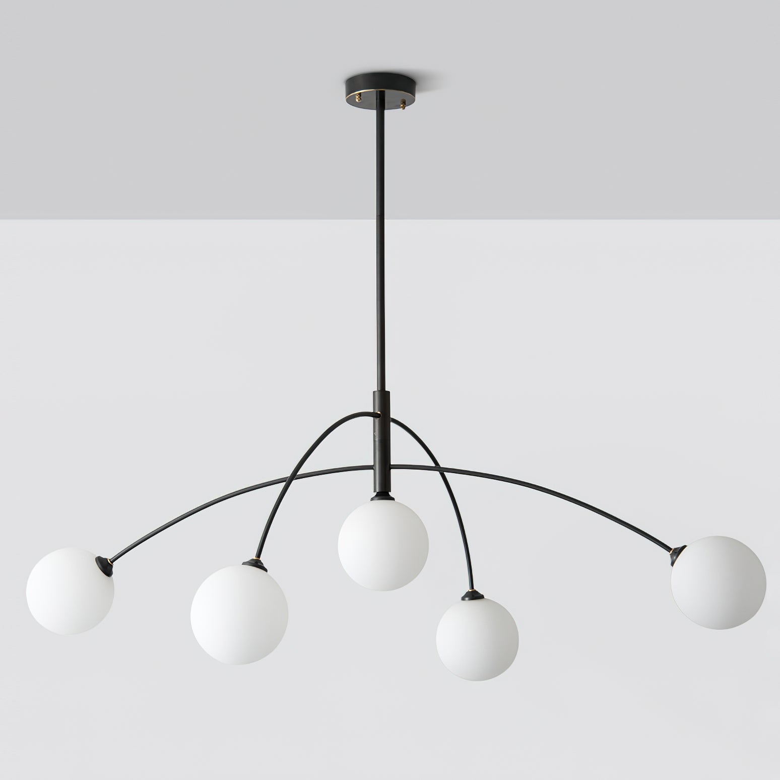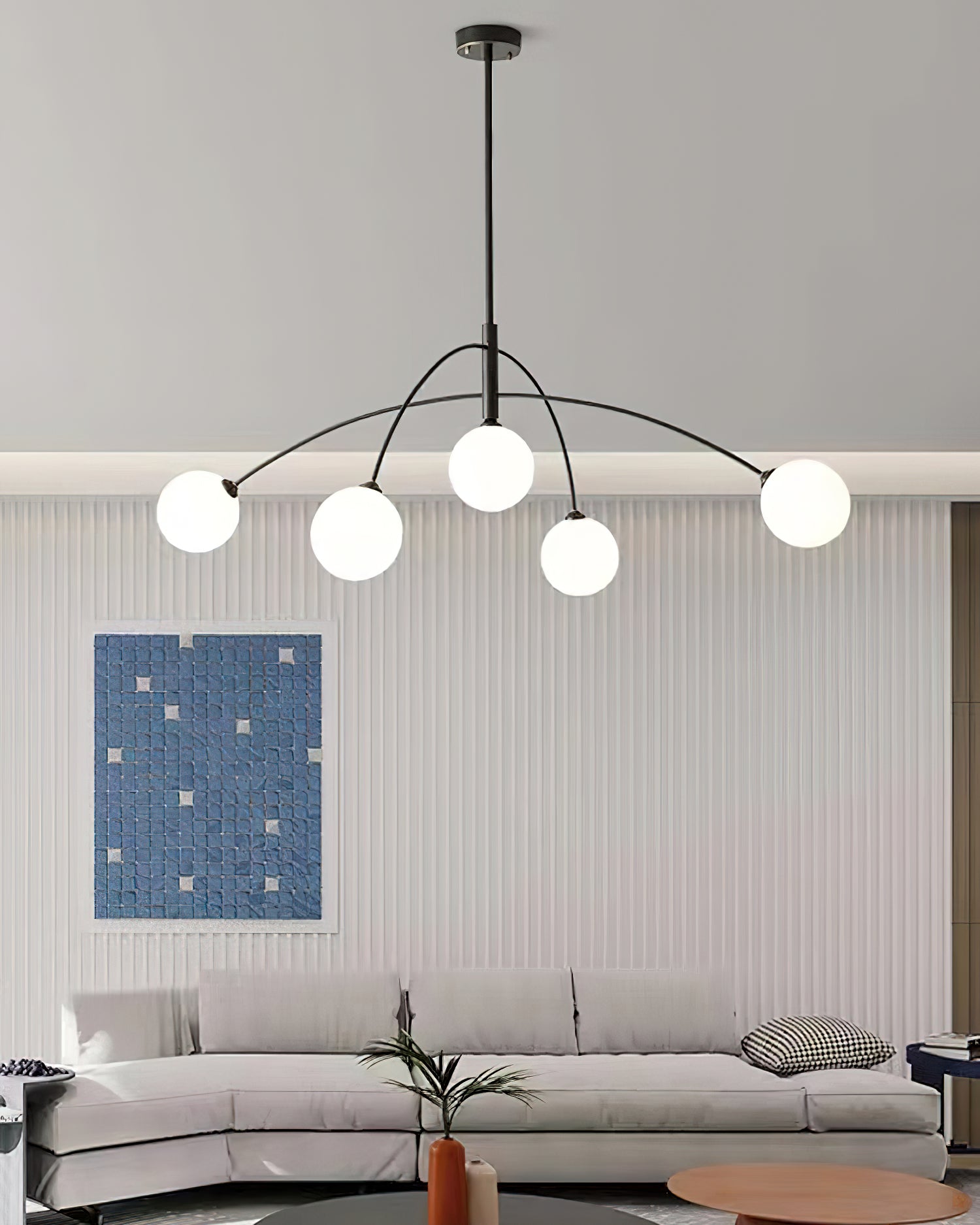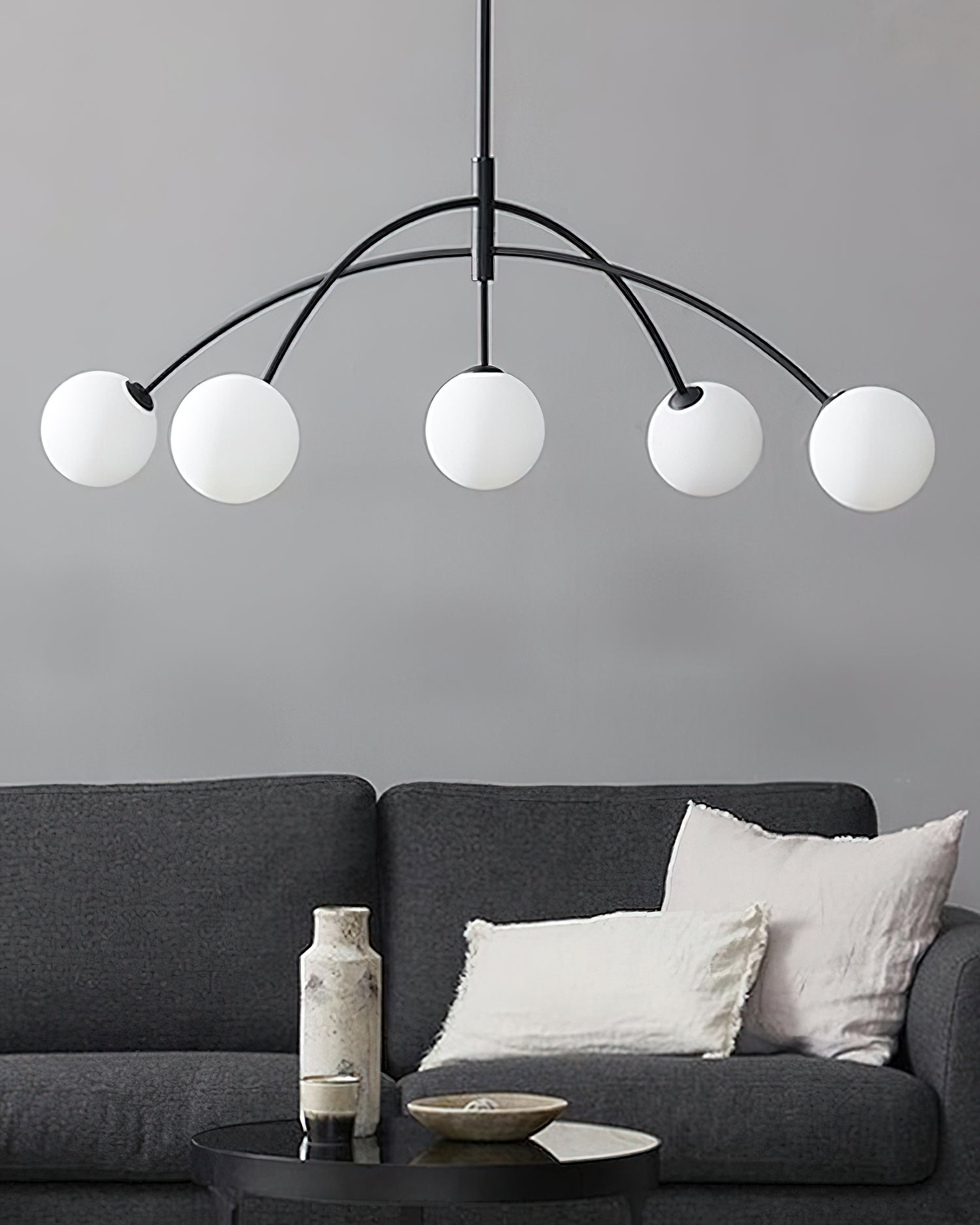Elevate your space with the Fellows Chandelier from Mooijane. This chandelier features a minimalist design that combines metal and glass elements to add a touch of modern sophistication to any room. This chandelier is perfect for adding a touch of glamour to any space, be it a modern living room, hallway, or grand dining room.