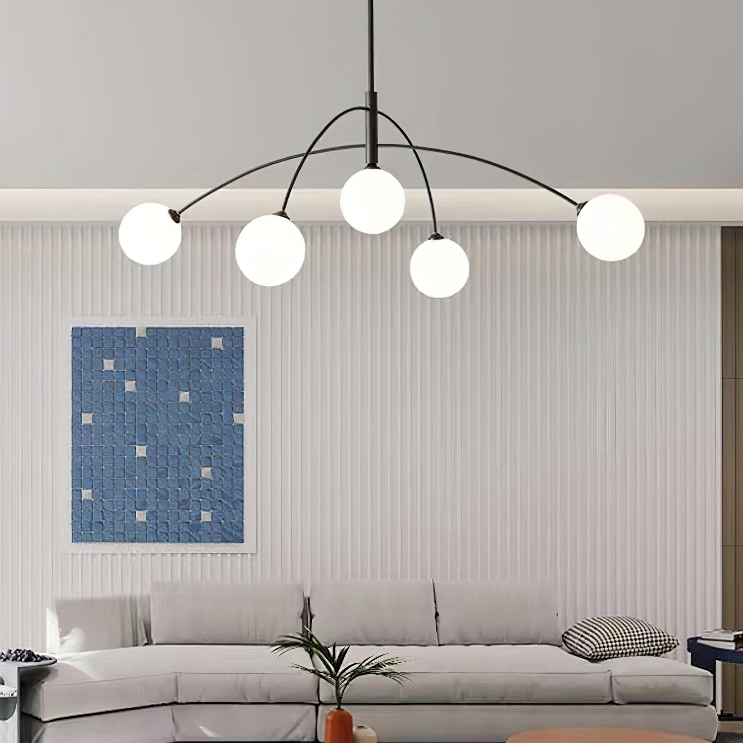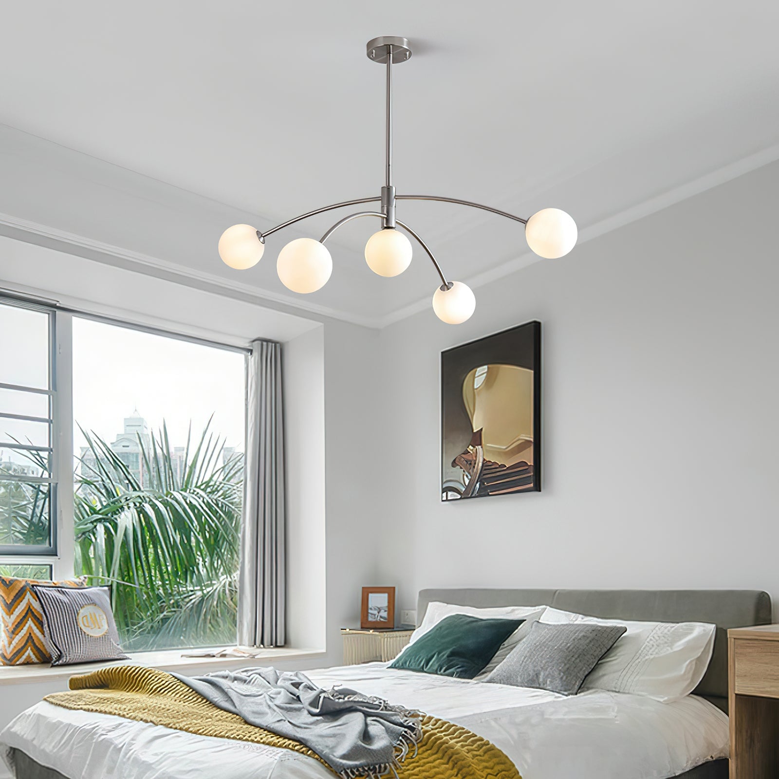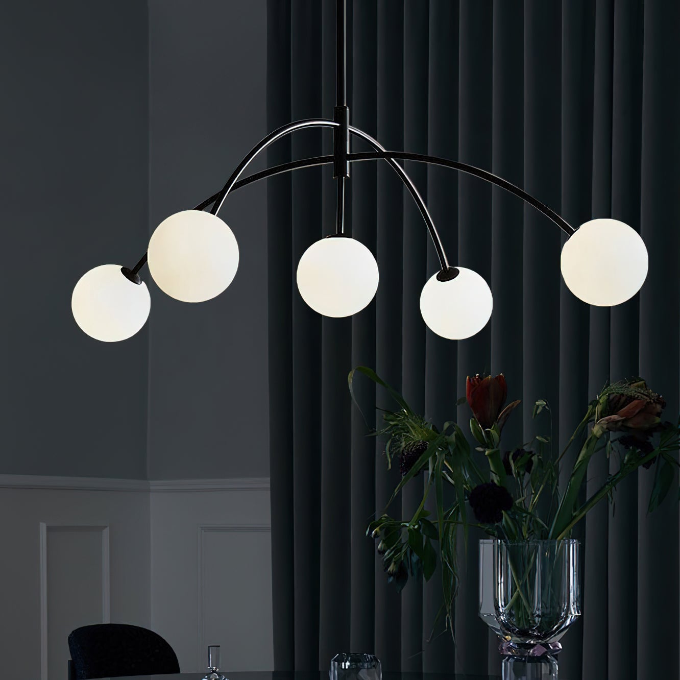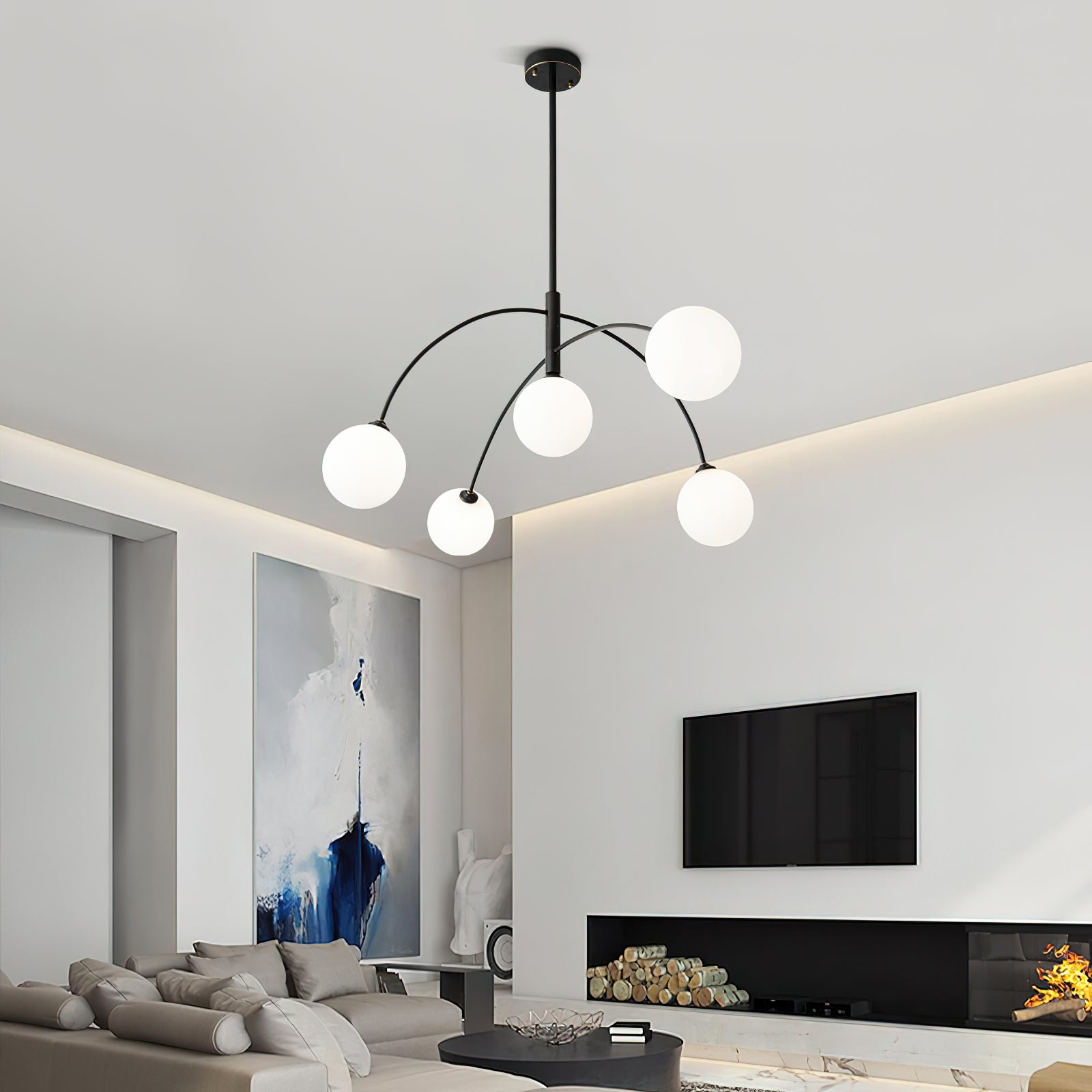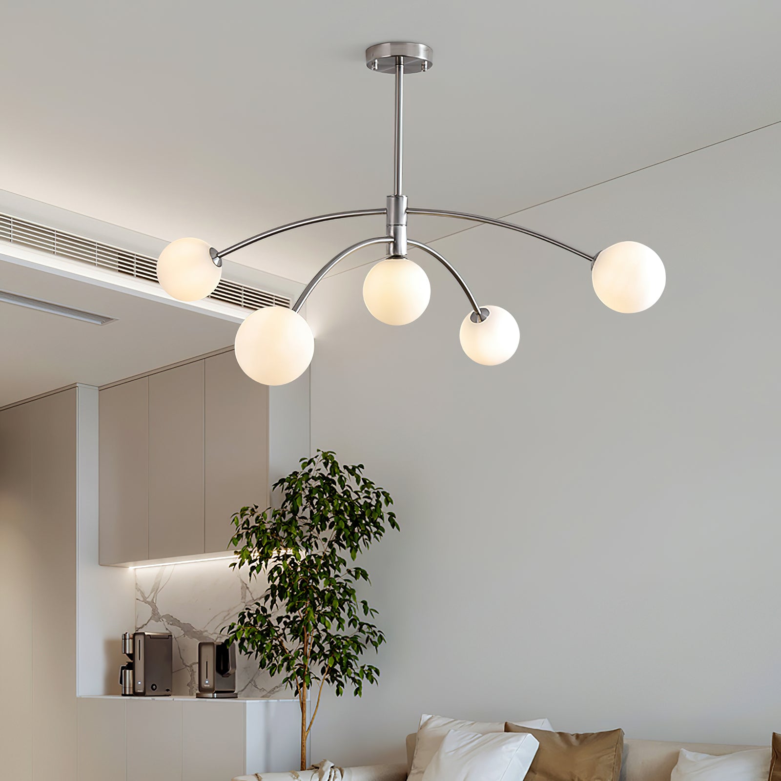 Elevate your space with the Fellows Chandelier from Mooijane. This chandelier features a minimalist design that combines metal and glass elements to add a touch of modern sophistication to any room. This chandelier is perfect for adding a touch of glamour to any space, be it a modern living room, hallway, or grand dining room.