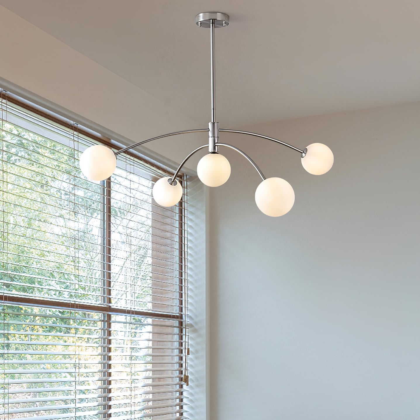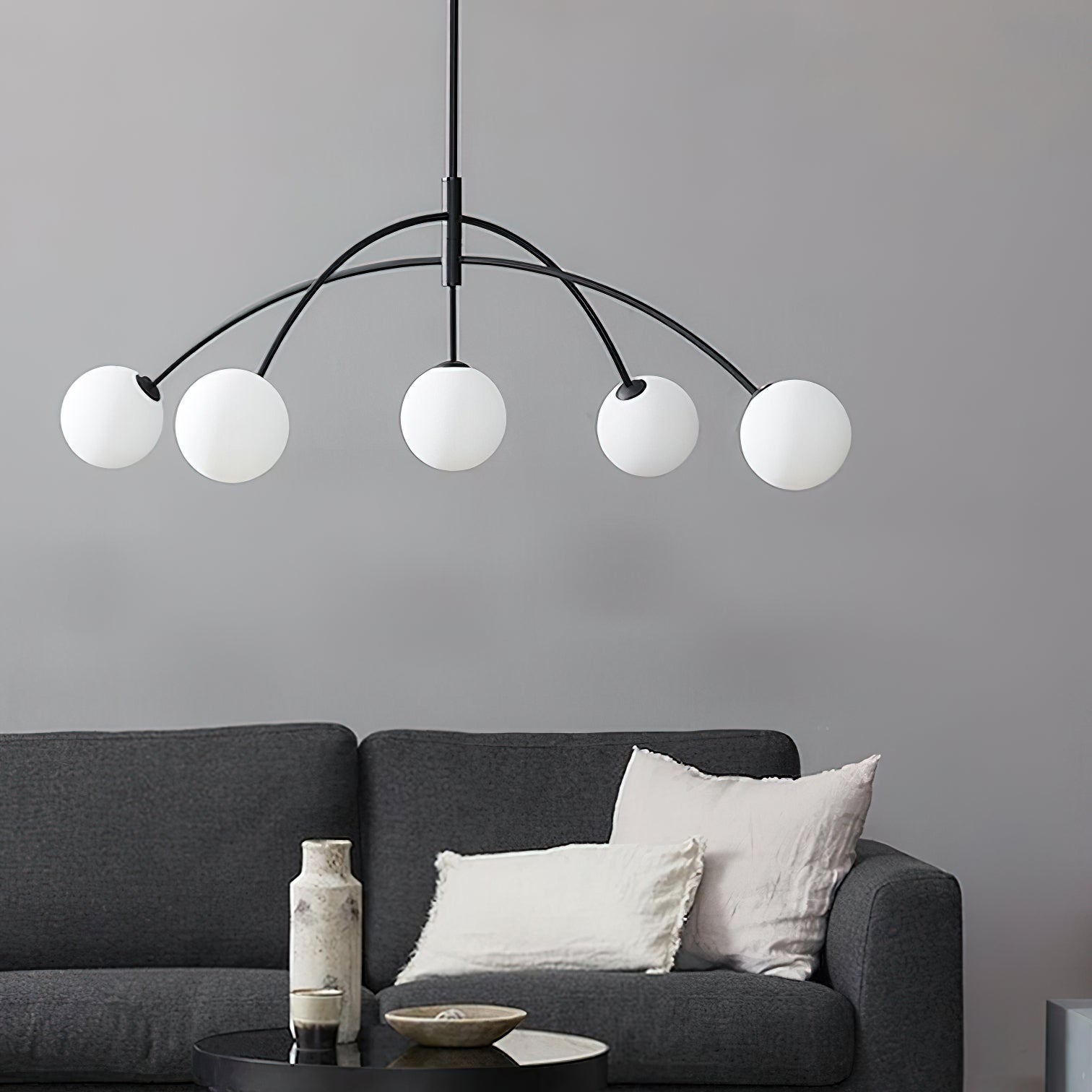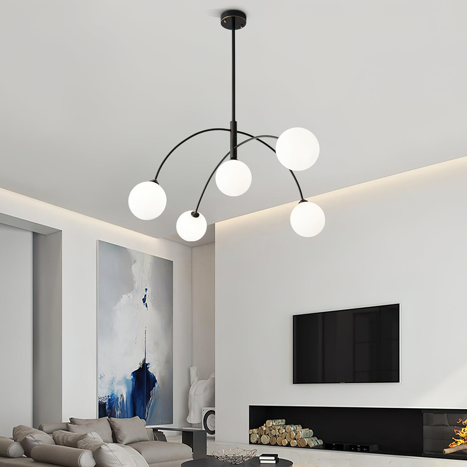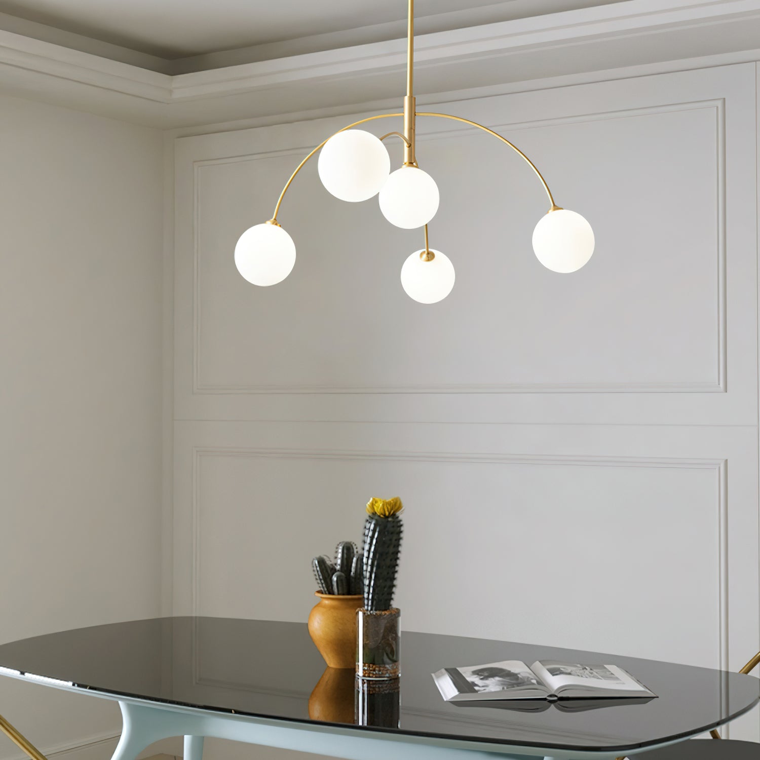 Elevate your space with the Fellows Chandelier from Mooijane. This chandelier features a minimalist design that combines metal and glass elements to add a touch of modern sophistication to any room. This chandelier is perfect for adding a touch of glamour to any space, be it a modern living room, hallway, or grand dining room.
