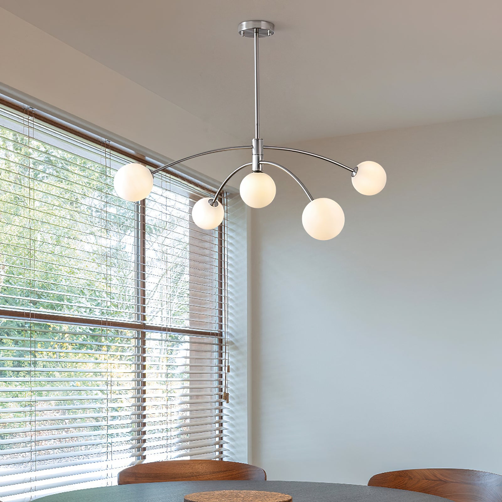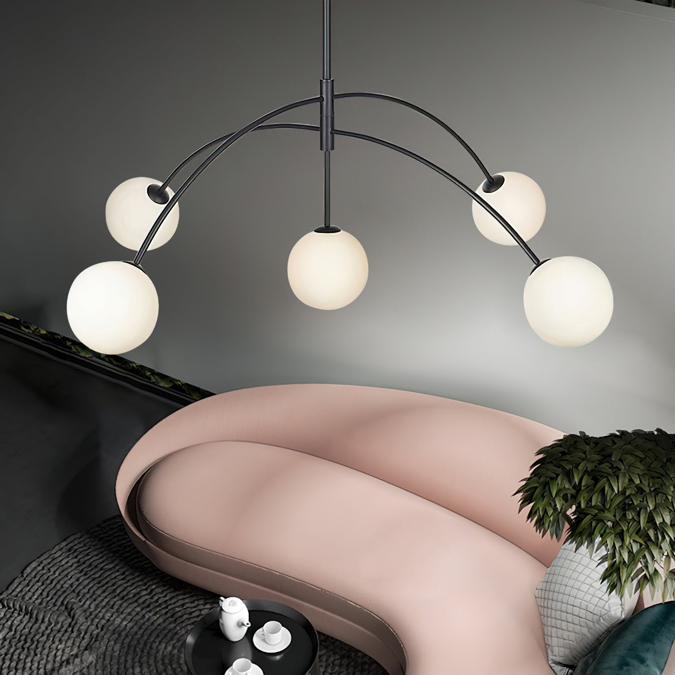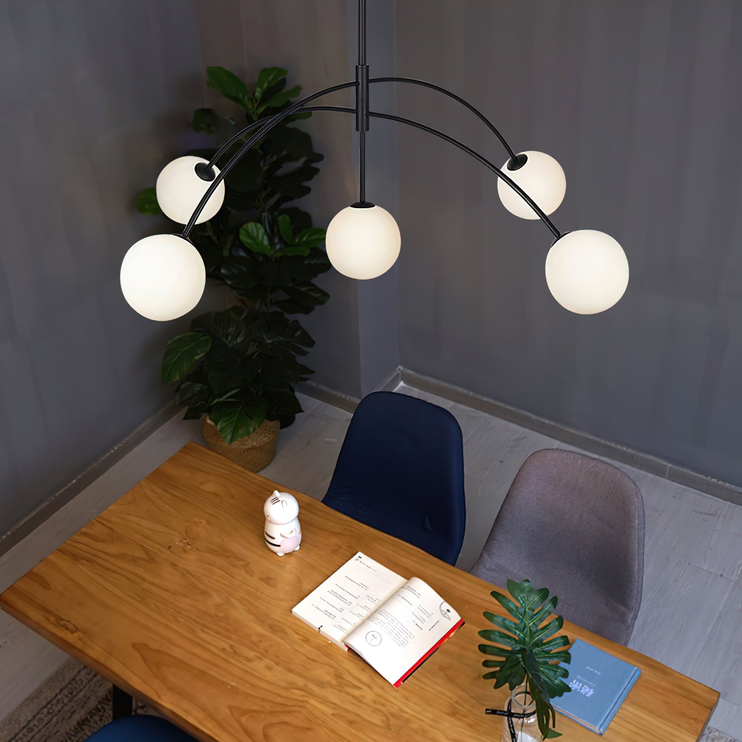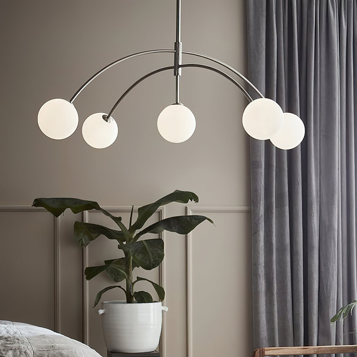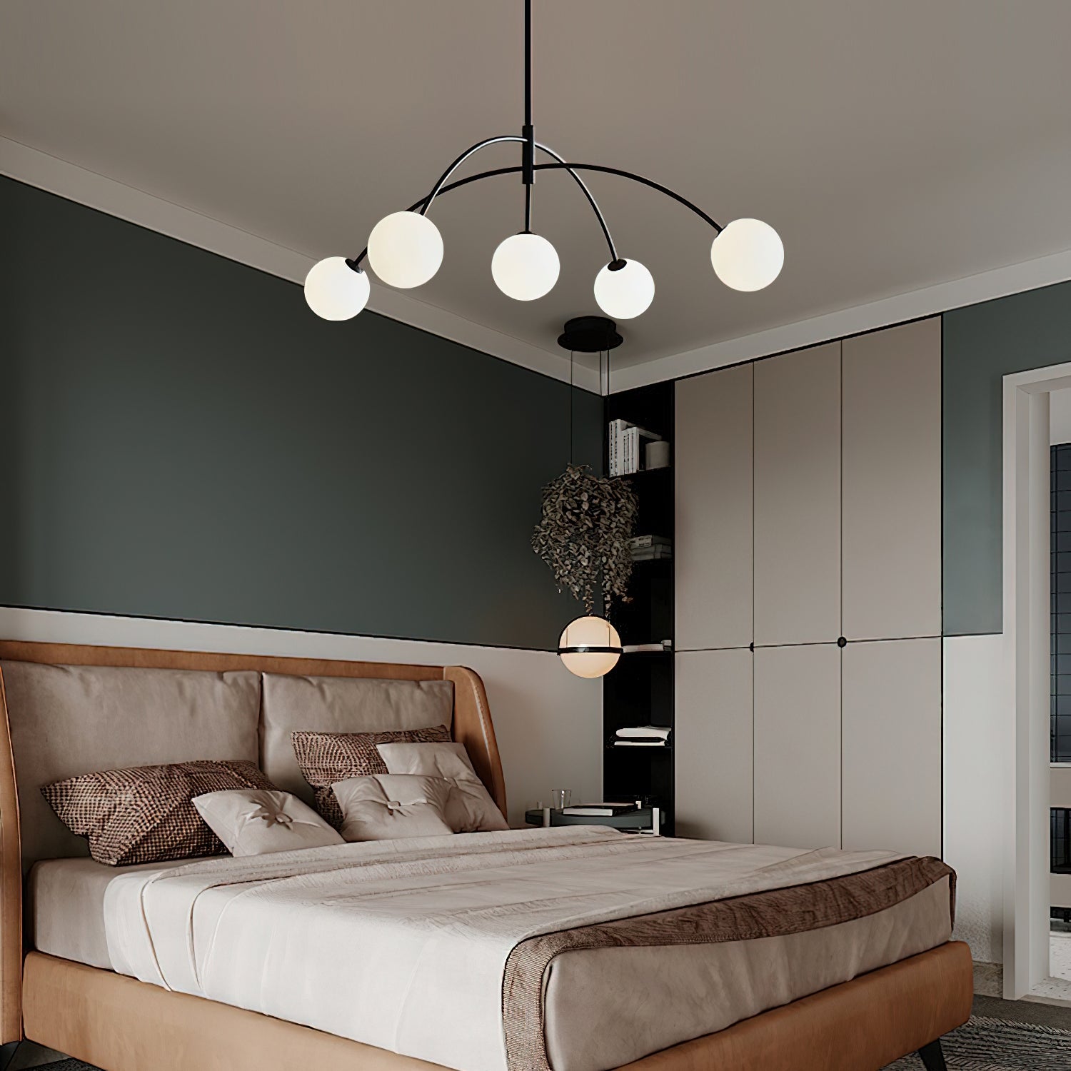 Elevate your space with the Fellows Chandelier from Mooijane. This chandelier features a minimalist design that combines metal and glass elements to add a touch of modern sophistication to any room. This chandelier is perfect for adding a touch of glamour to any space, be it a modern living room, hallway, or grand dining room.