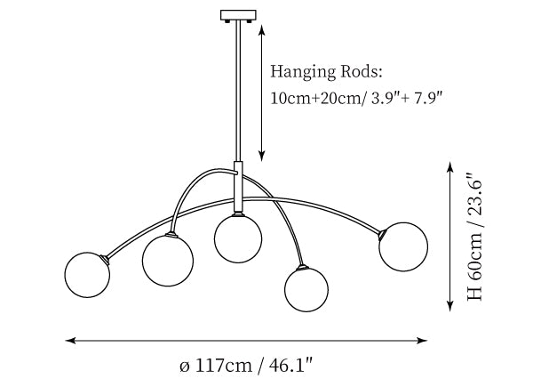 - We supply 10cm+20cm(3.9″+7.9″) hanging rods.