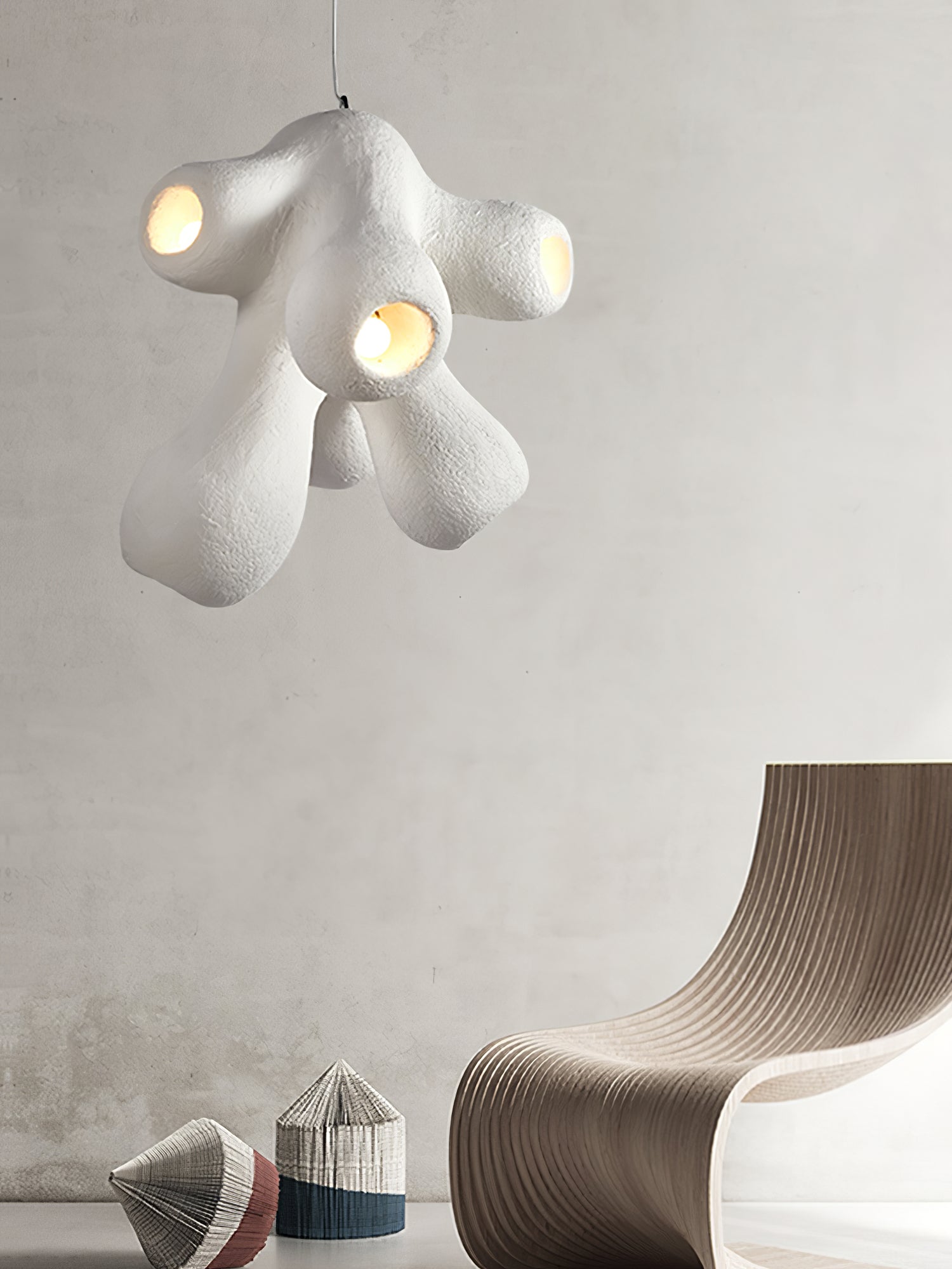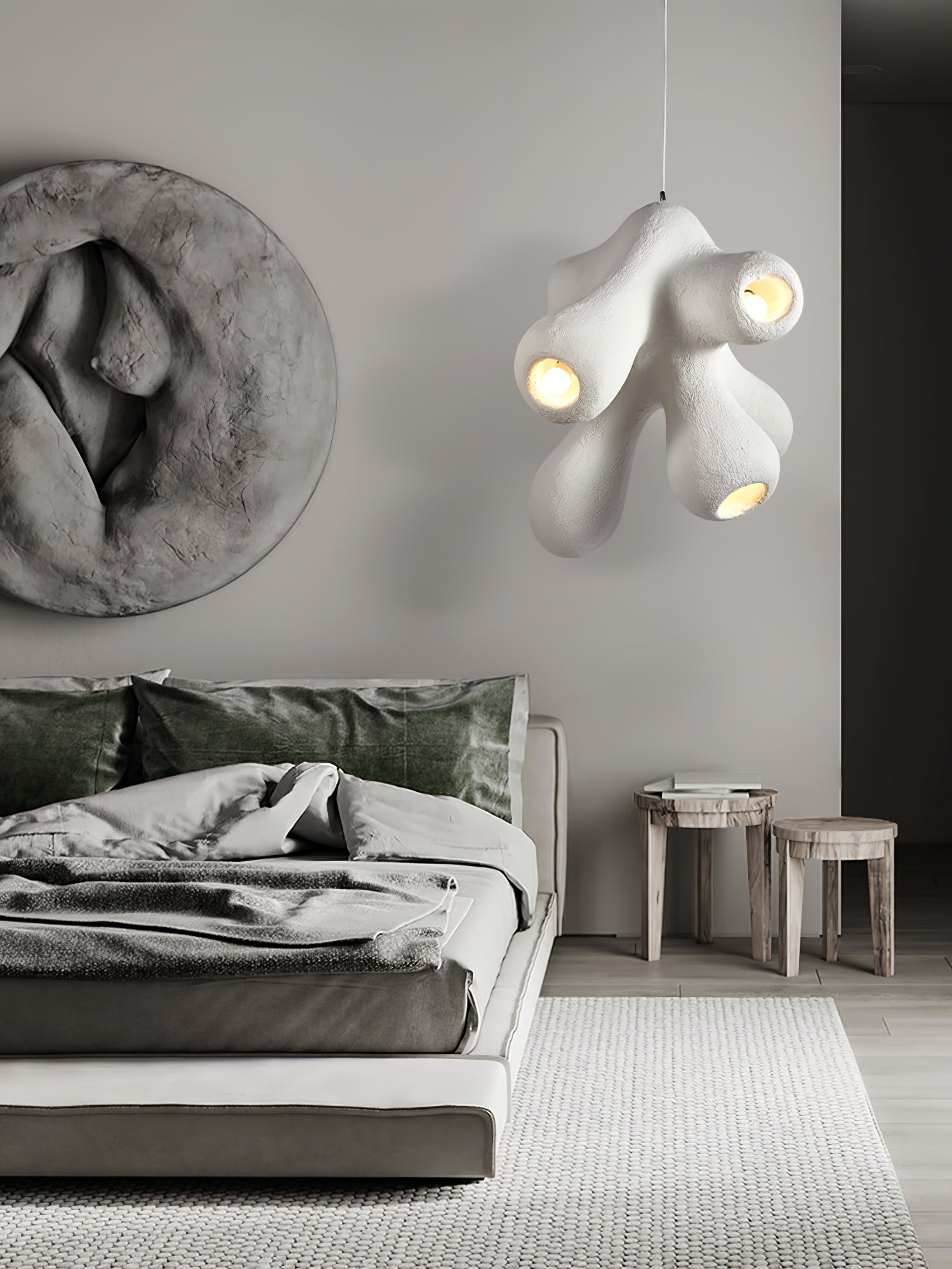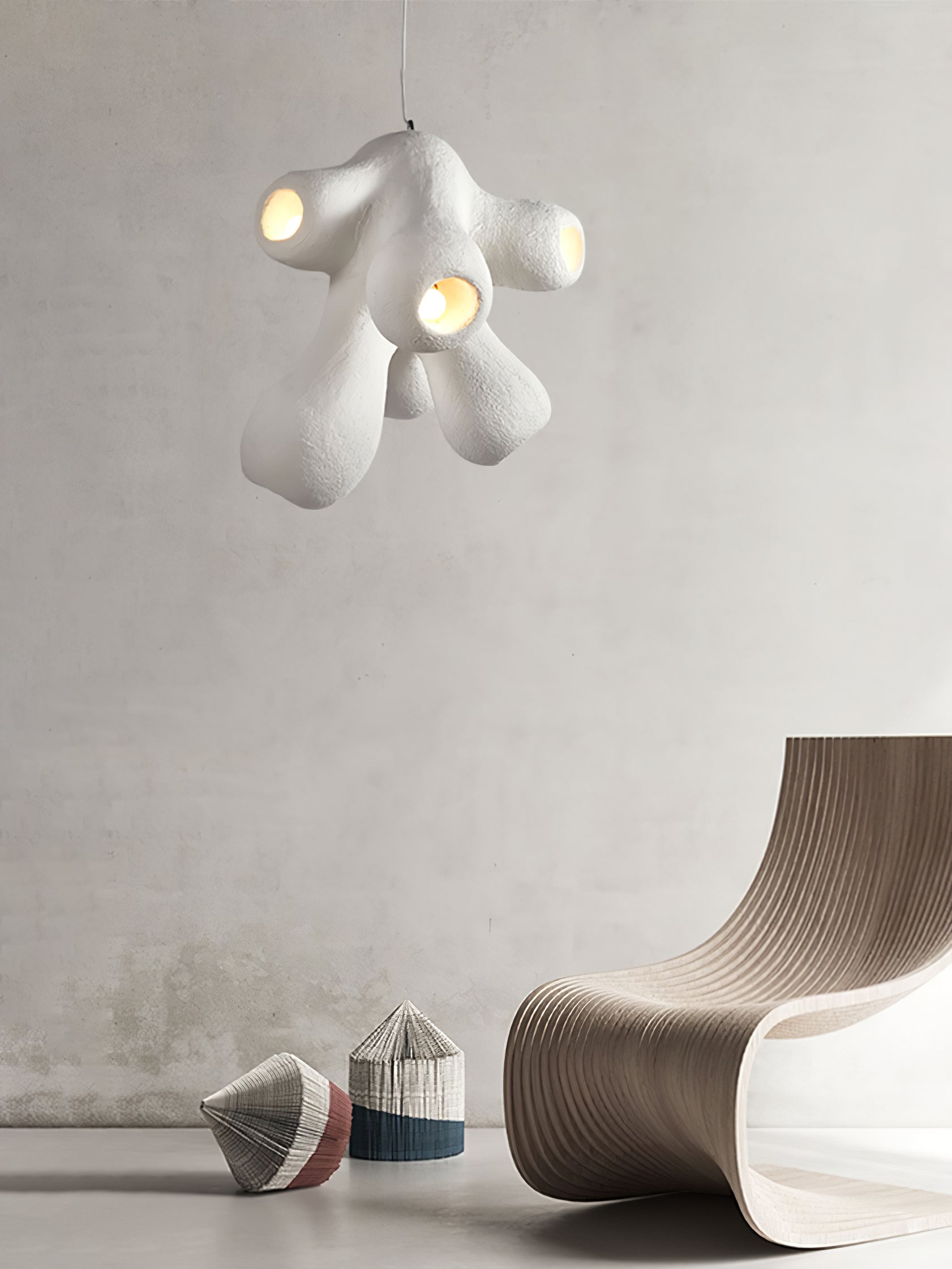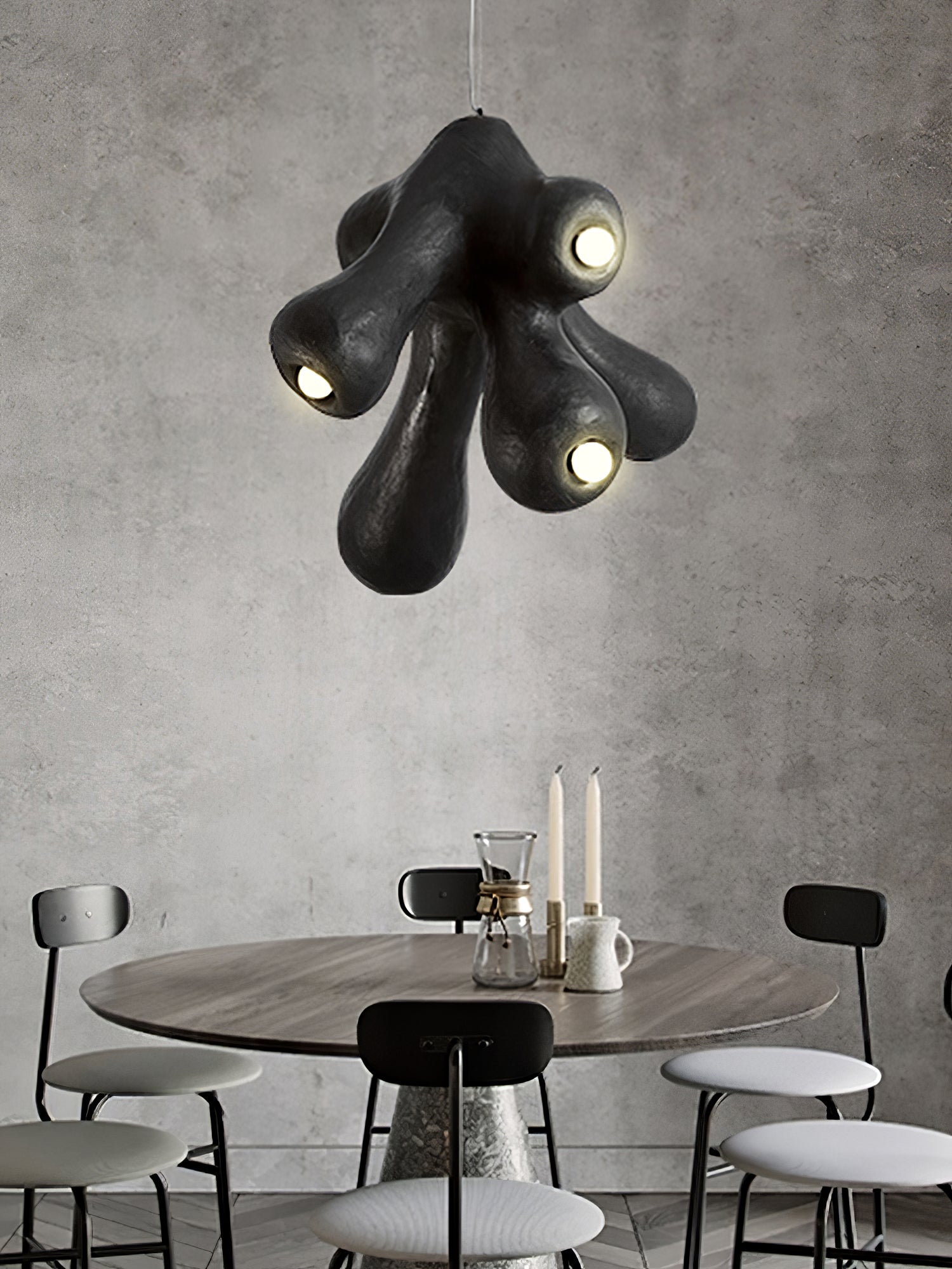 Fertility Pendant Lamp is a style that remains independent and casual and belongs to its own, incomplete forms and flawed things are more expressive of the spirit, and look like emotionally rich textures and elegant backdrops for artworks that enhance the joy of living and comfortability.