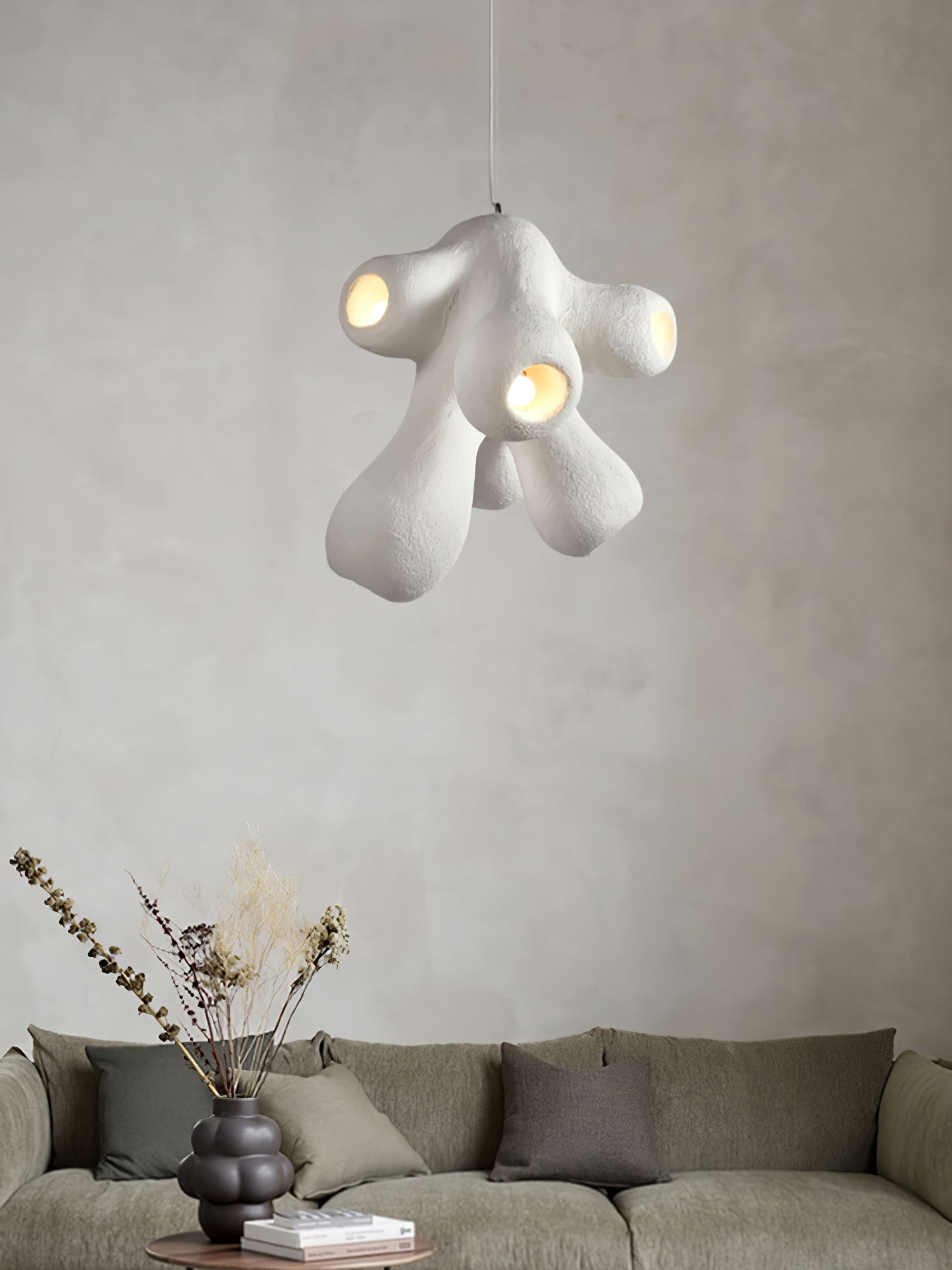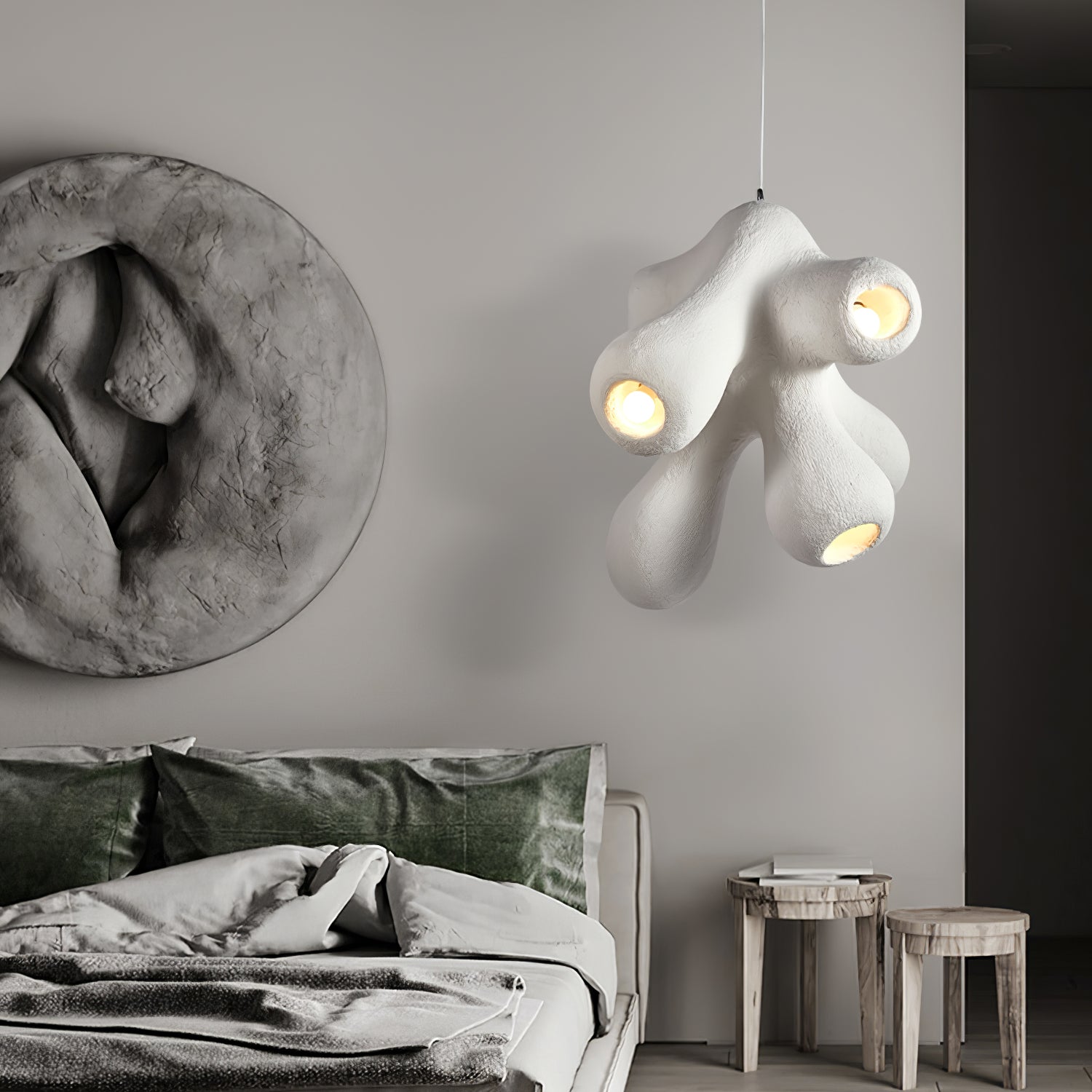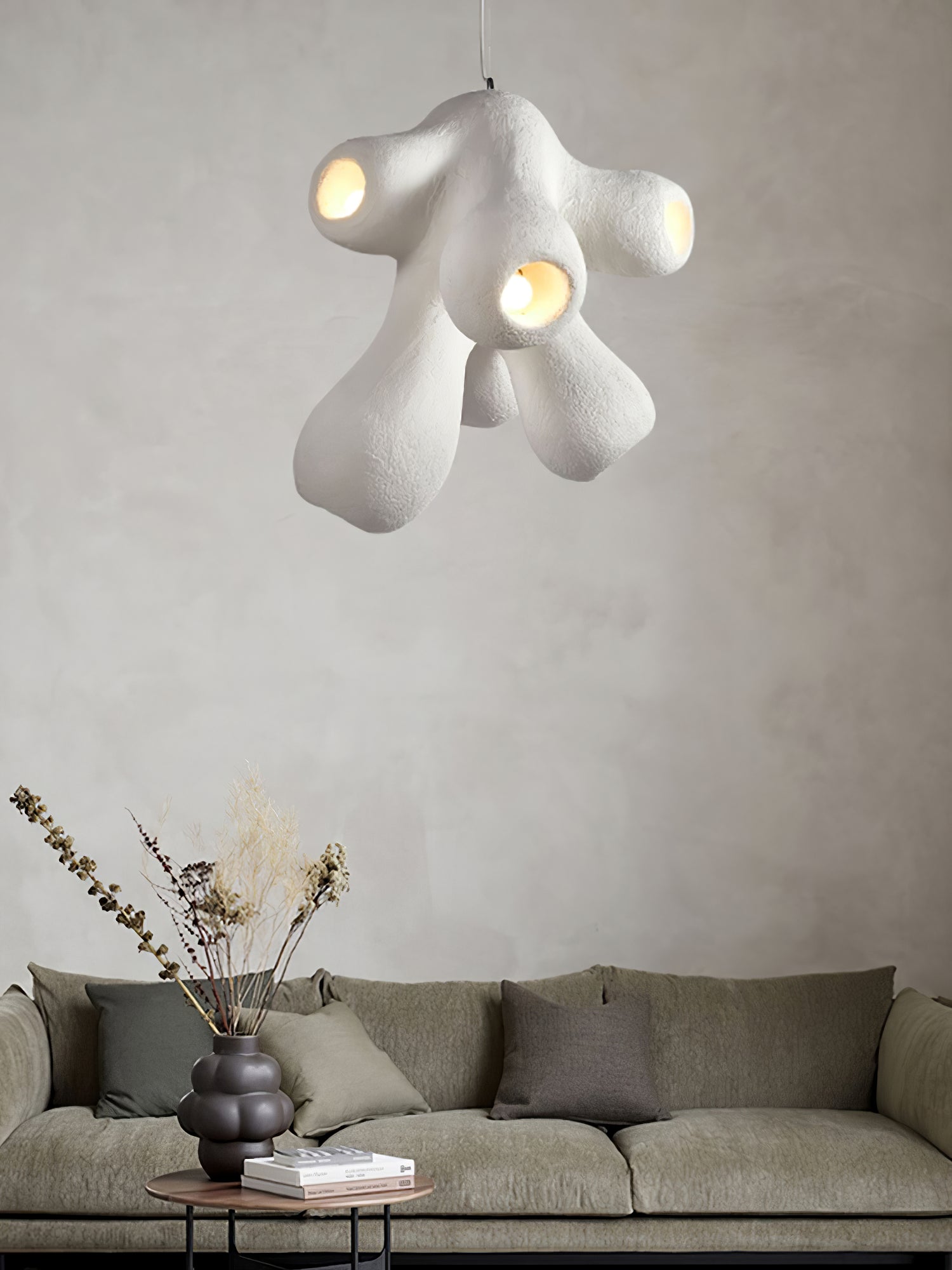 Fertility Pendant Lamp is a style that remains independent and casual and belongs to its own, incomplete forms and flawed things are more expressive of the spirit, and look like emotionally rich textures and elegant backdrops for artworks that enhance the joy of living and comfortability.