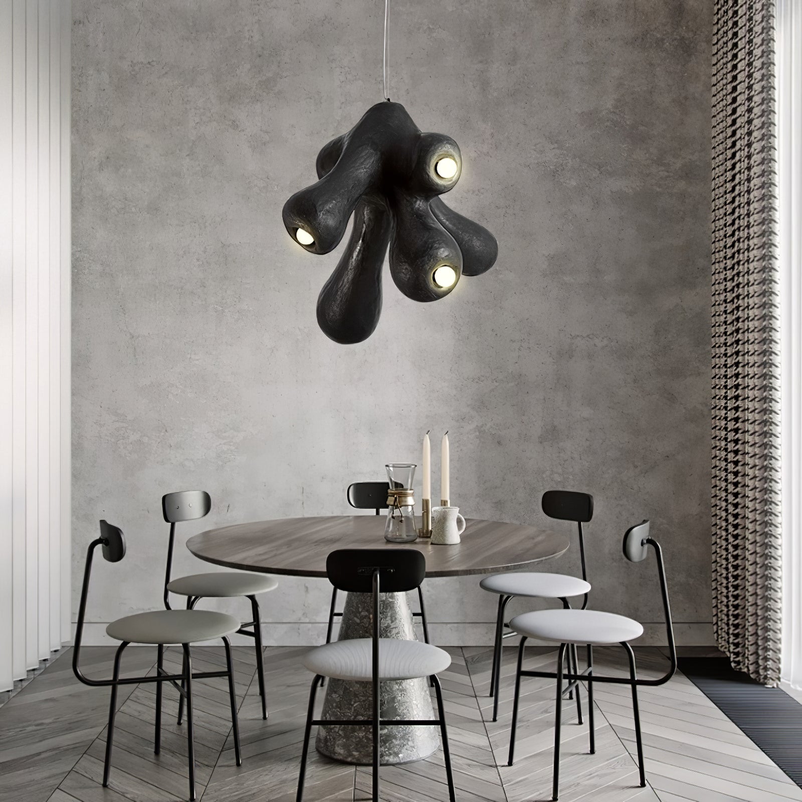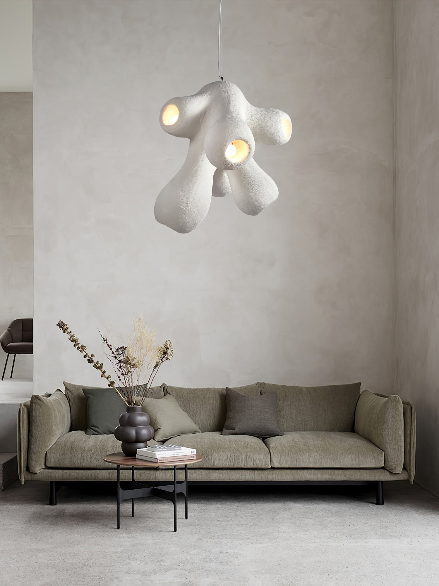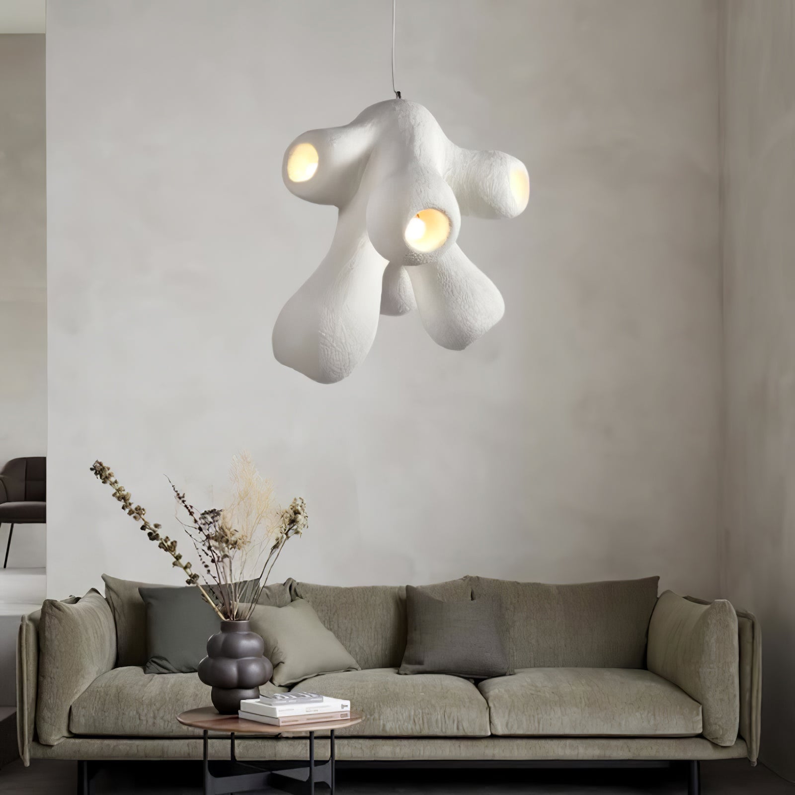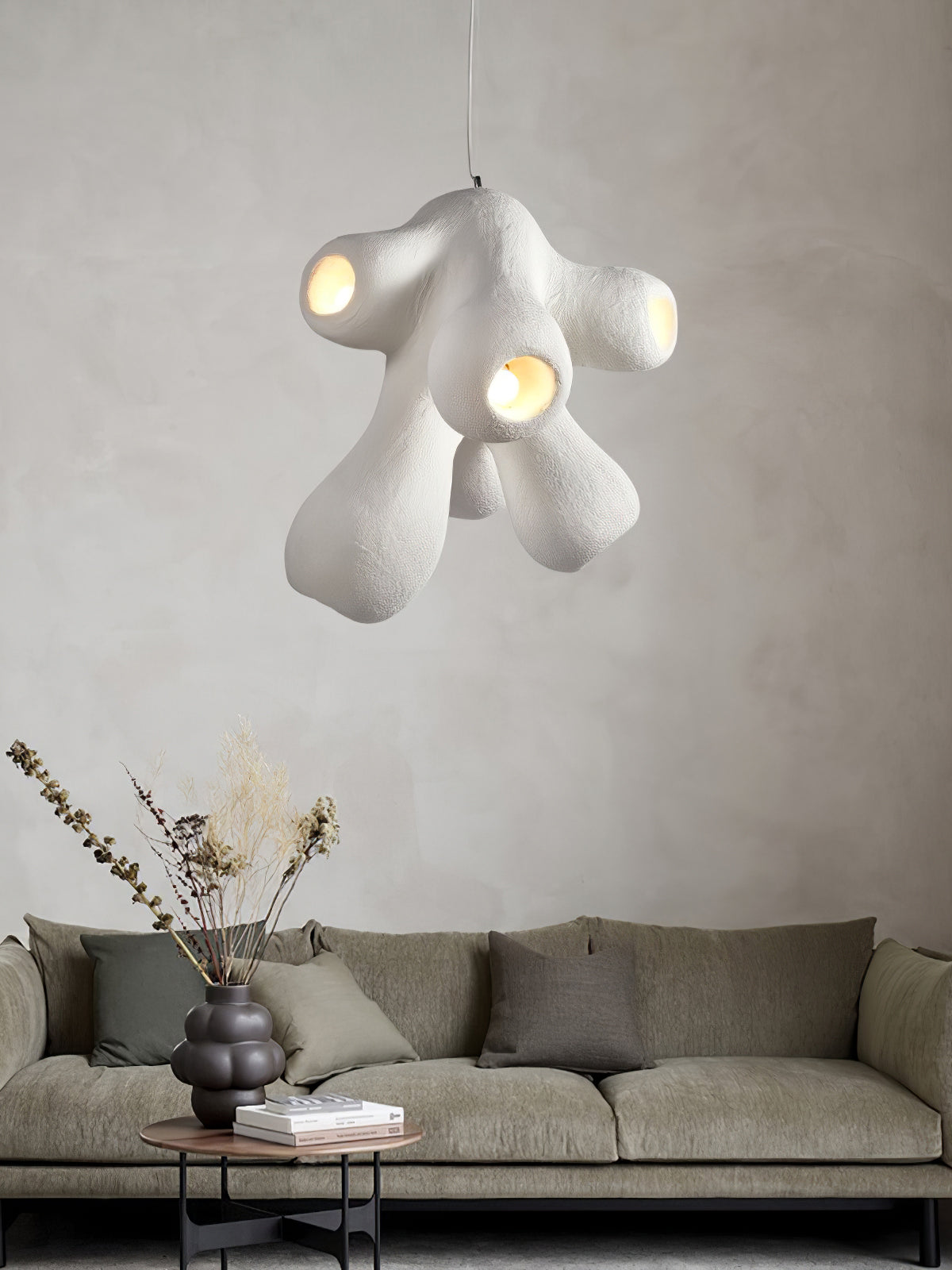 Fertility Pendant Lamp is a style that remains independent and casual and belongs to its own, incomplete forms and flawed things are more expressive of the spirit, and look like emotionally rich textures and elegant backdrops for artworks that enhance the joy of living and comfortability.