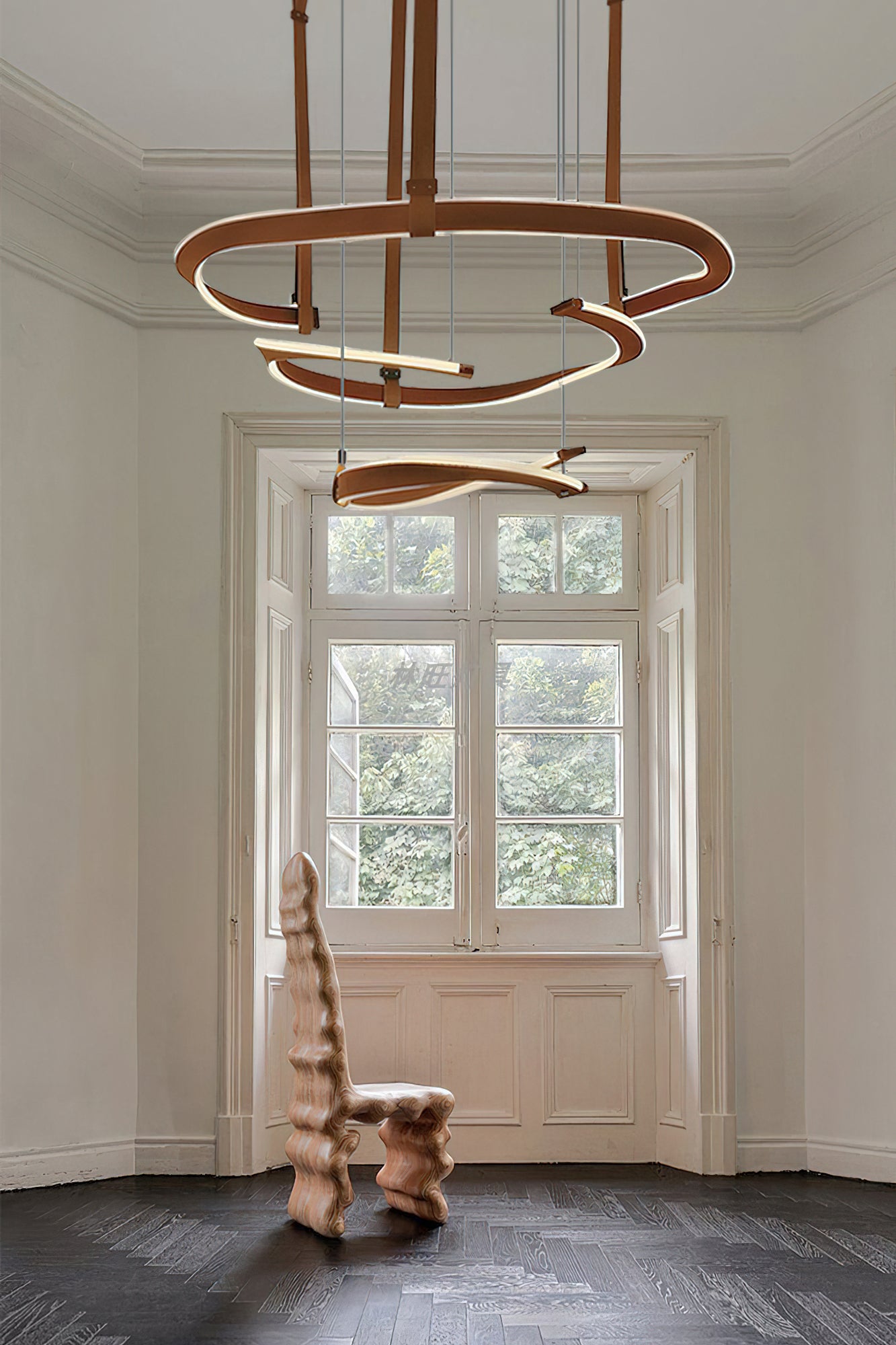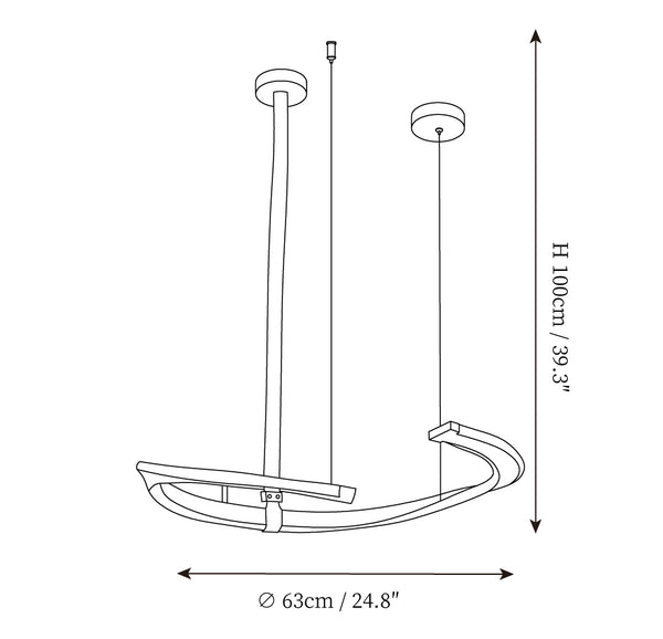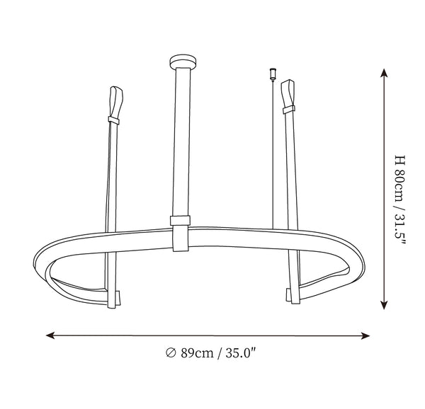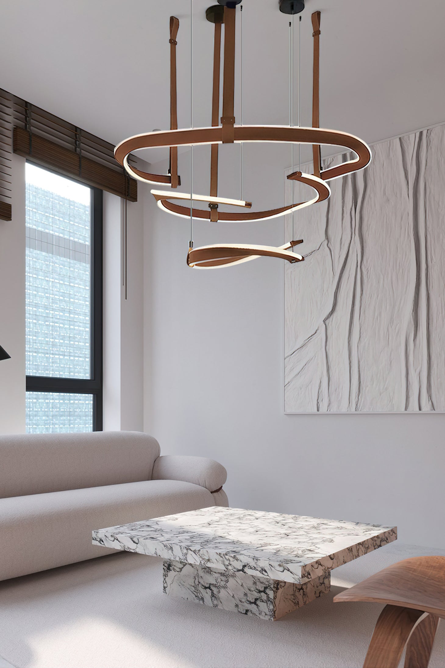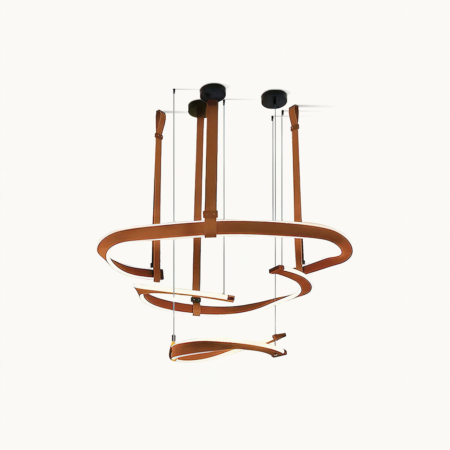 Abstract yet inviting, this linear hanging brings drama and sculpture to your home. Like a modern piece of art suspended from the ceiling, this linear piece consists of a series of twisted rings suspended from thin wires. Each ring has its own flaws that offer a unique touch to typical decorating choices. The outside of each ring is illuminated by integrated LEDs.