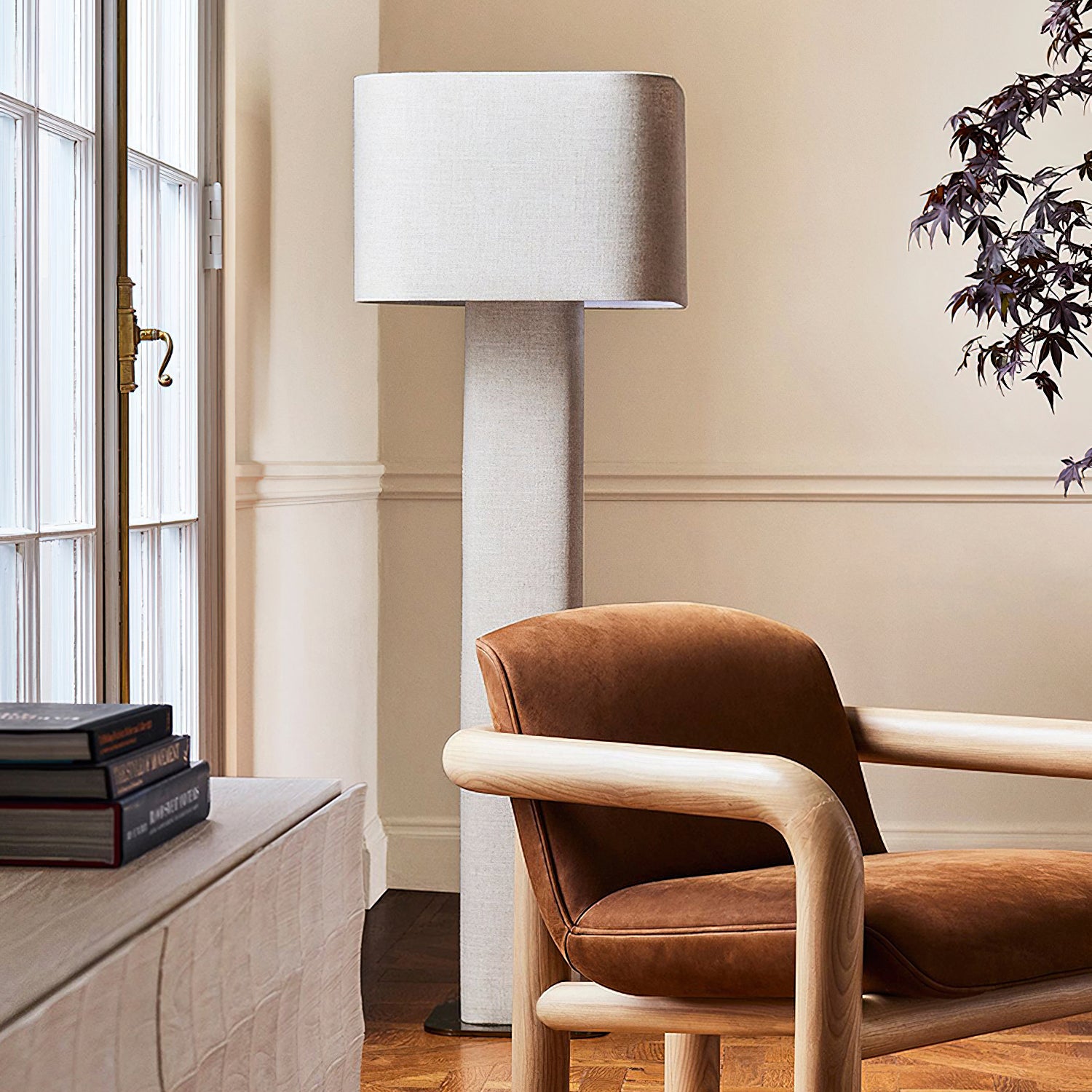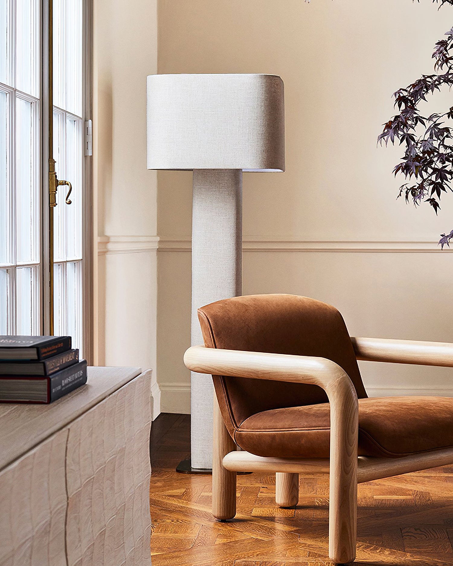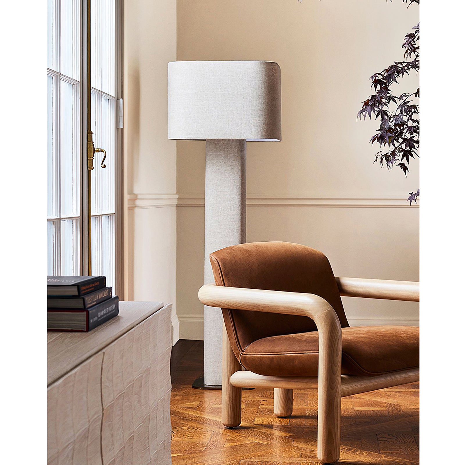 The Fiona Floor Lamp from Mooijane is fully wrapped in soft linen, adding light, airy texture to any space. Its clean, minimalist form pairs effortlessly with modern or relaxed interiors, offering both visual warmth and gentle illumination. A subtle yet stylish statement for living rooms, bedrooms, or reading nooks.