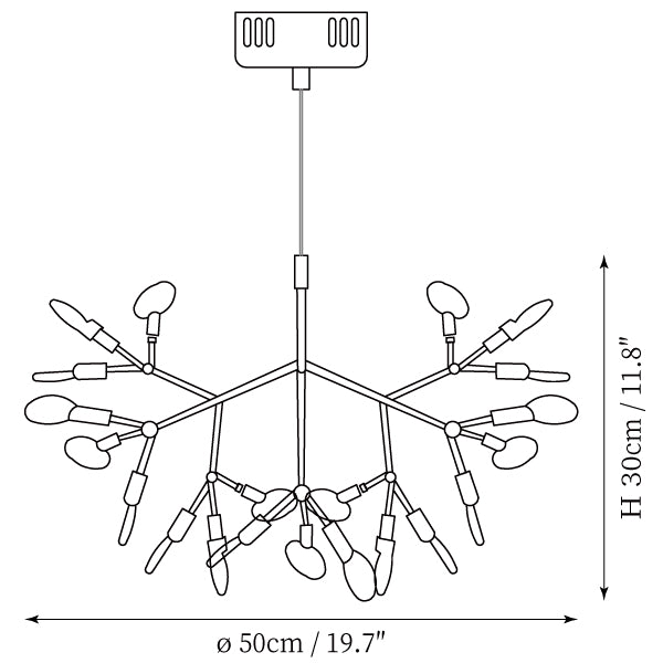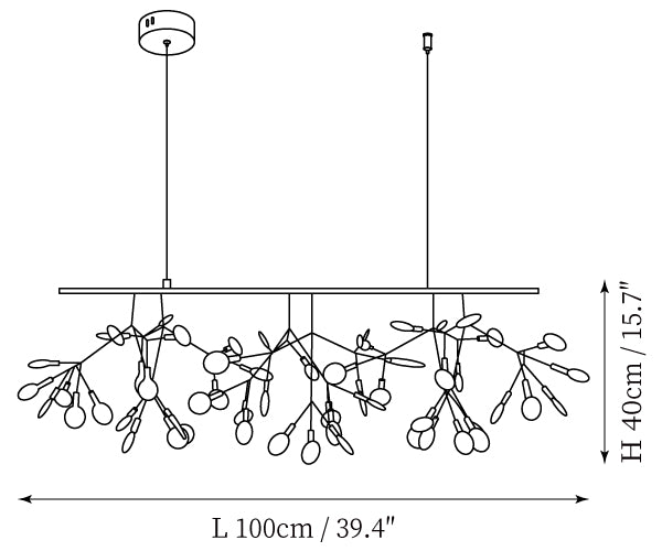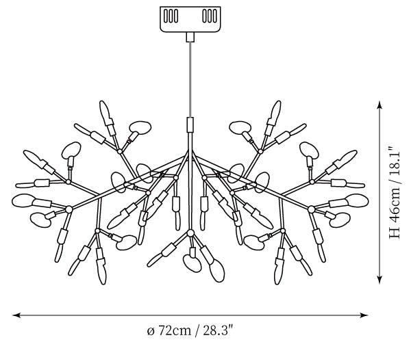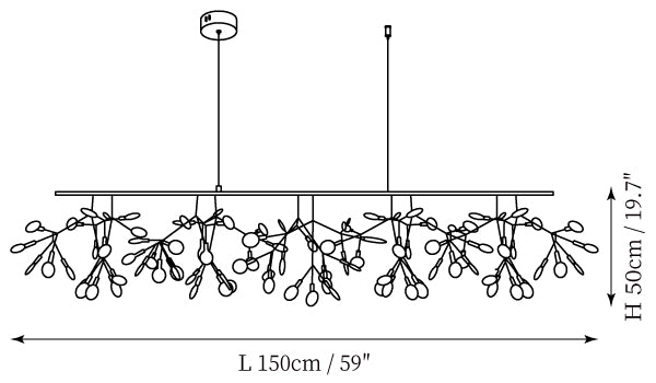 - 63-Lights Size: Dia 98cm x H 49cm / ∅ 38.6″ x H 19.3″ (Power: ~20W)