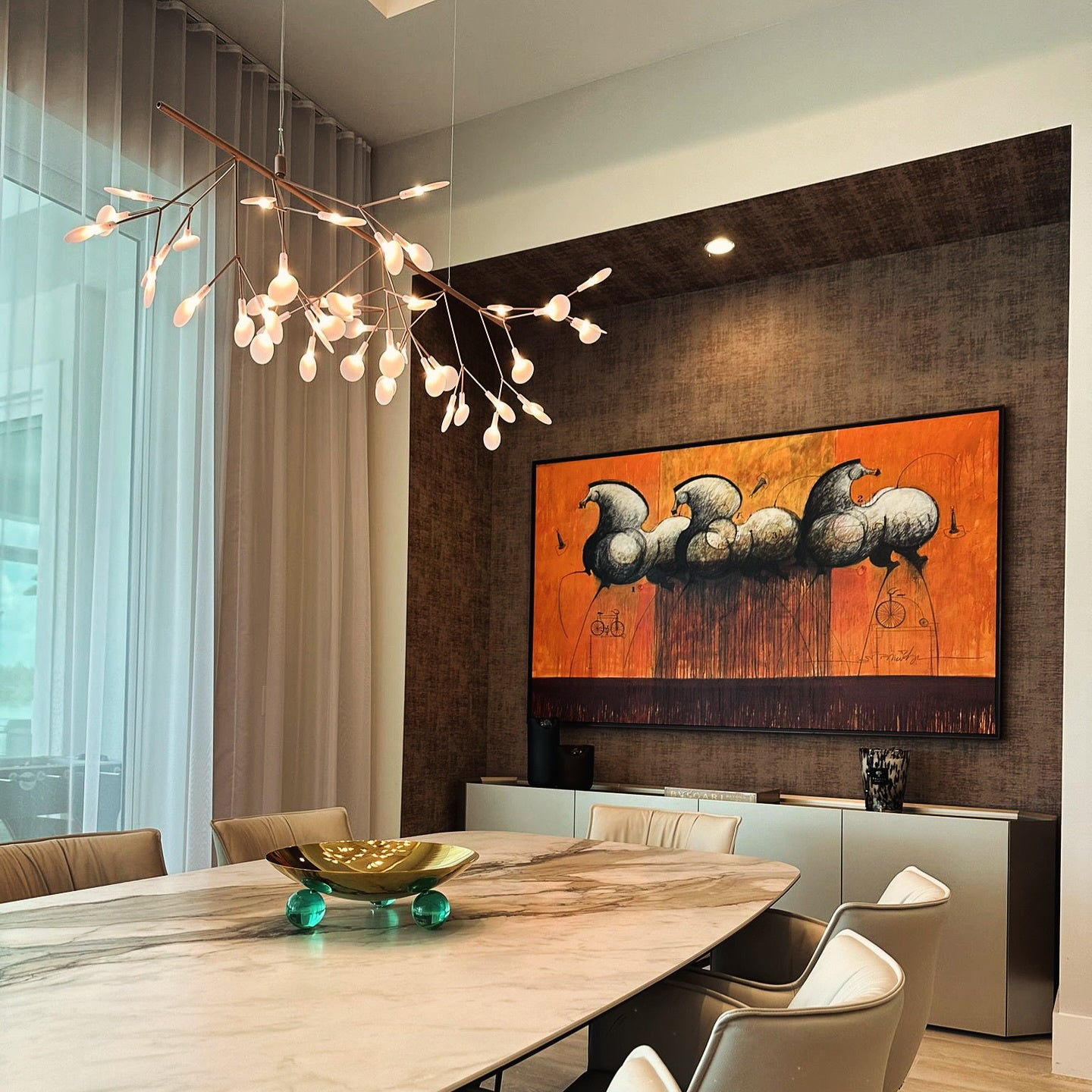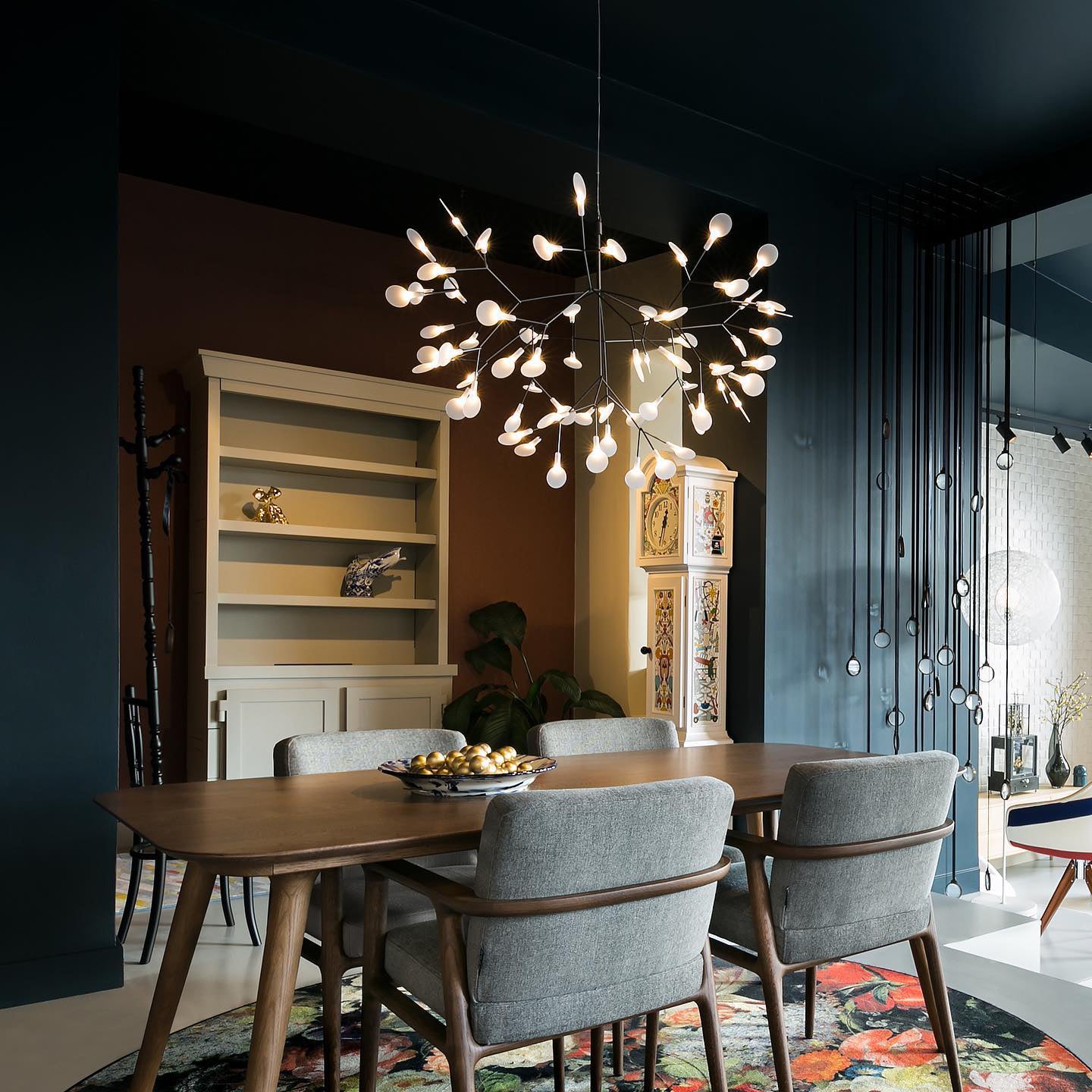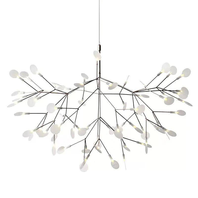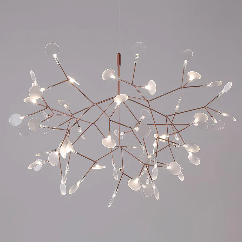The Firefly LED Chandelier by Mooijane features intricate acrylic petals that form a flower-like shape, casting a bright, firefly-inspired glow. Available in Black and Rose Gold, it offers a unique, customizable design with repositionable leaves. Crafted with a metal wire frame, polycarbonate lenses, and ultra-thin suspension wire, this chandelier brings elegance and warmth to any space.
