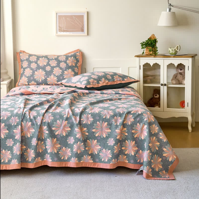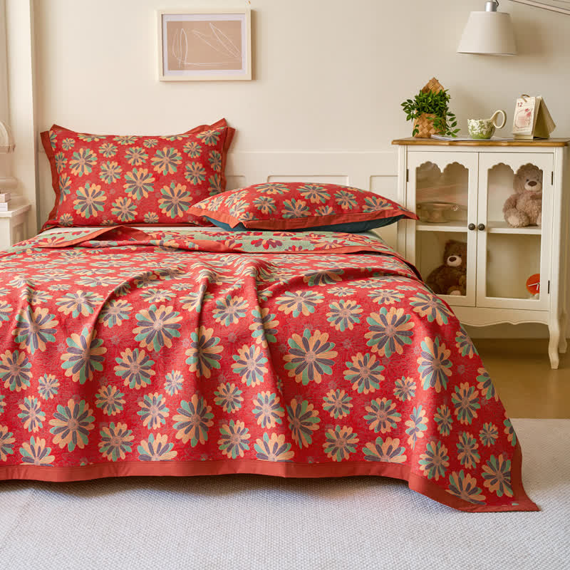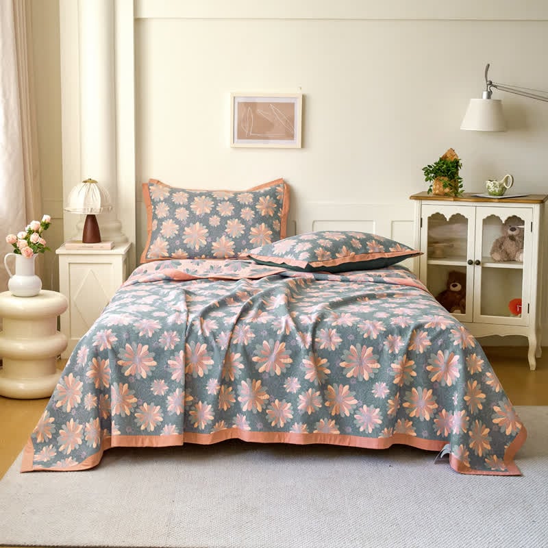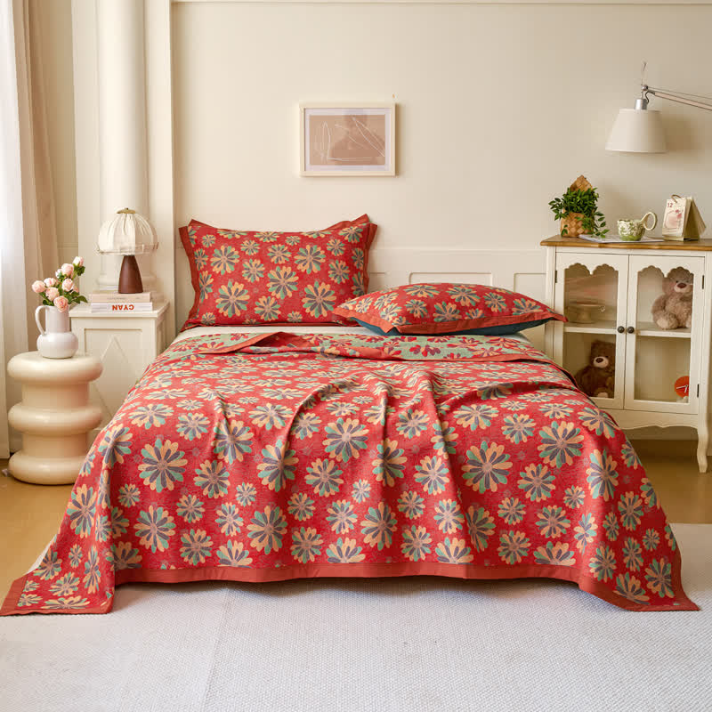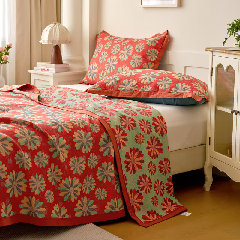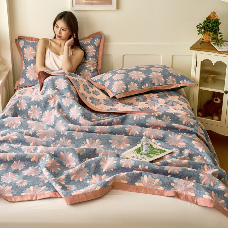 Floral Cotton Gauze Yarn-dyed Jacquard Quilt