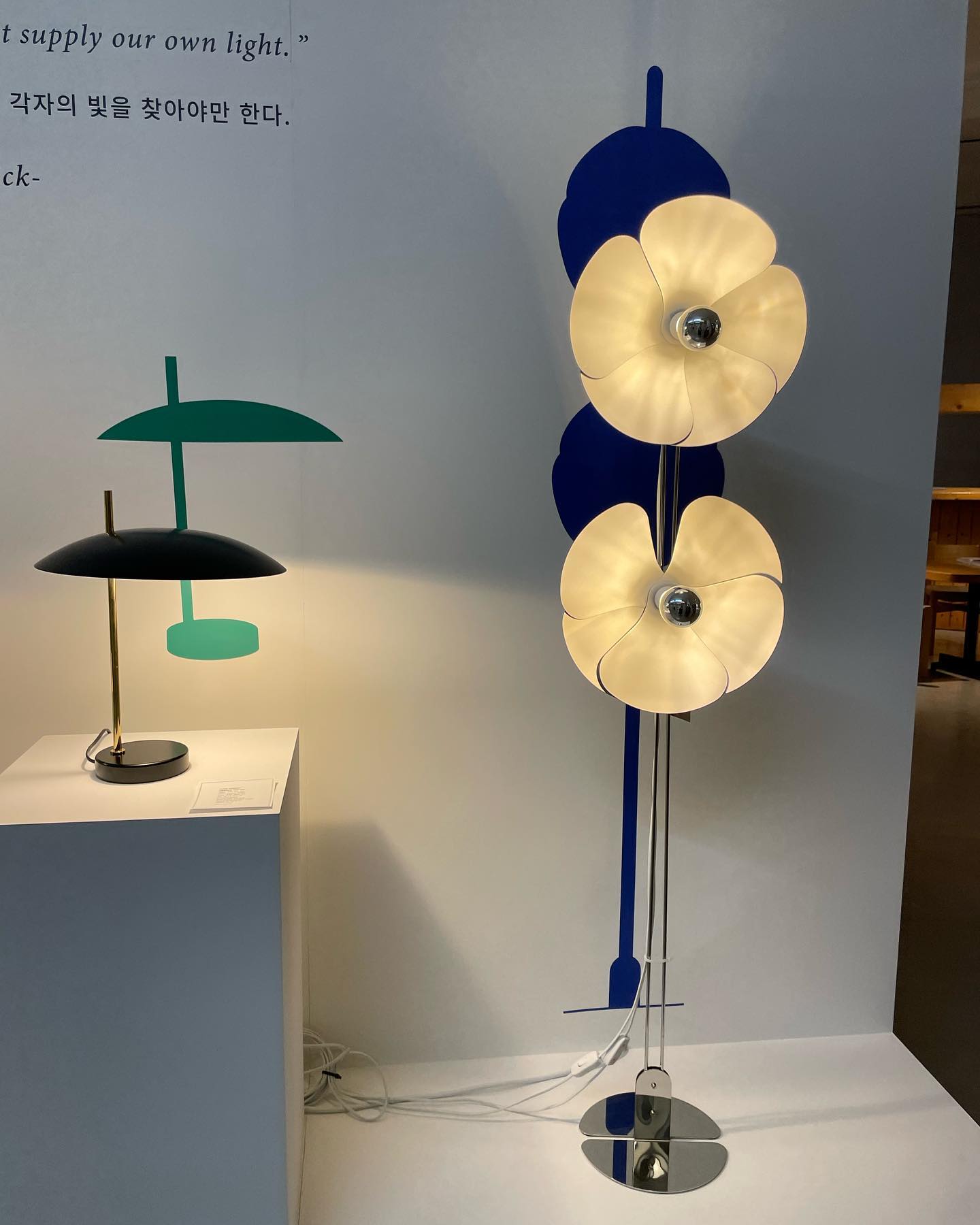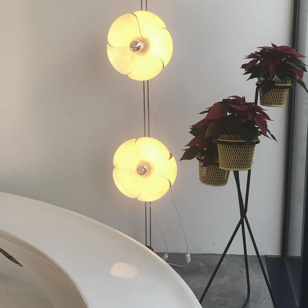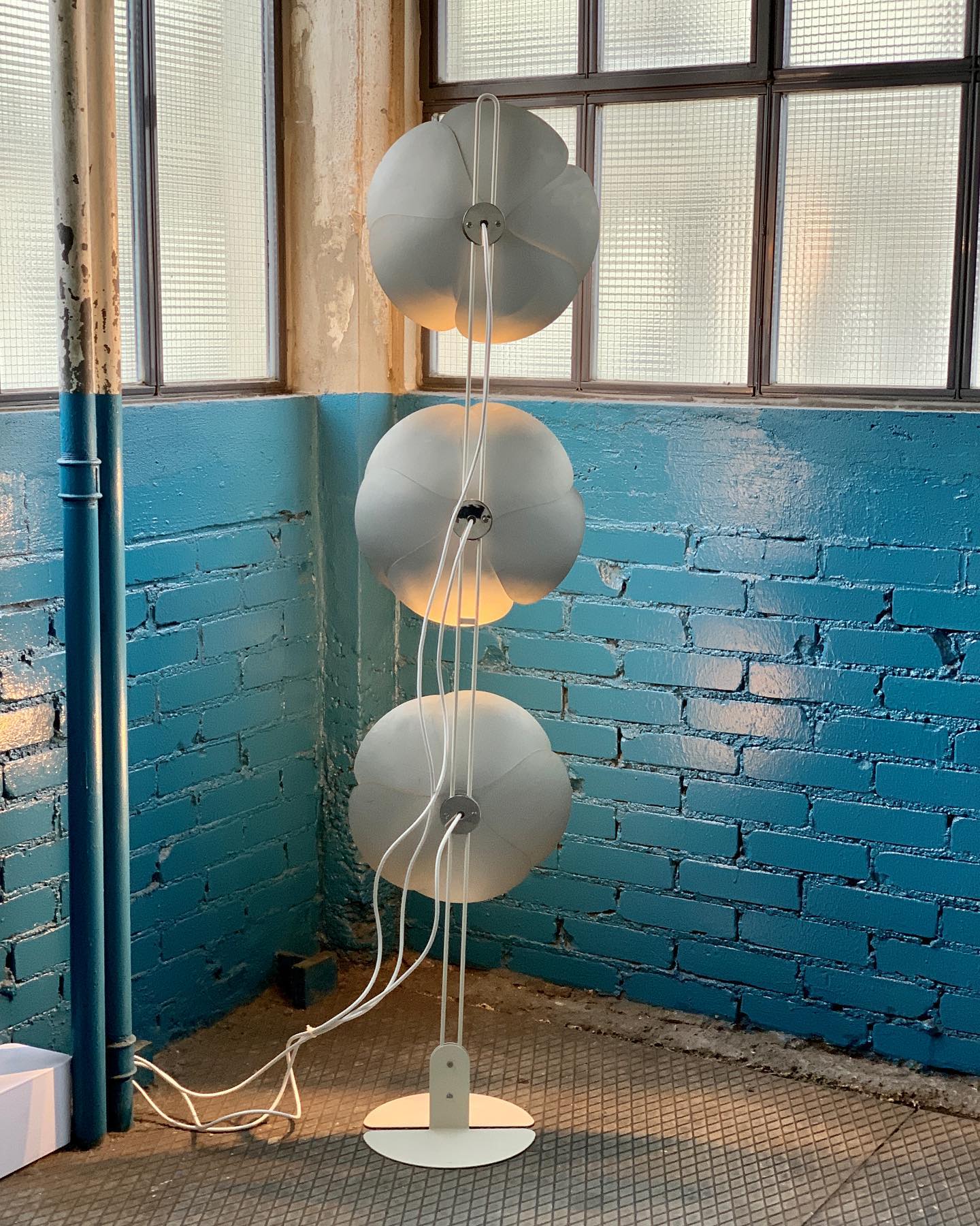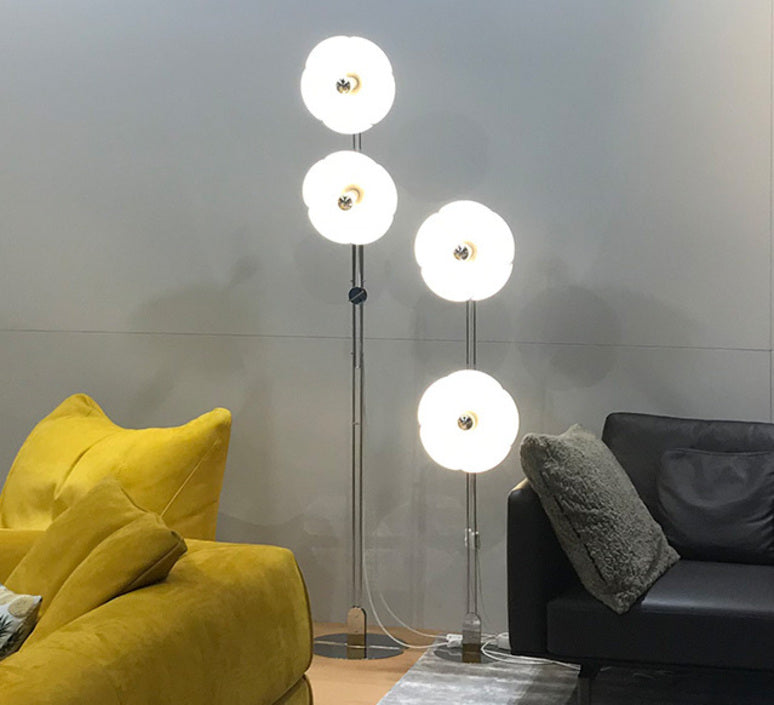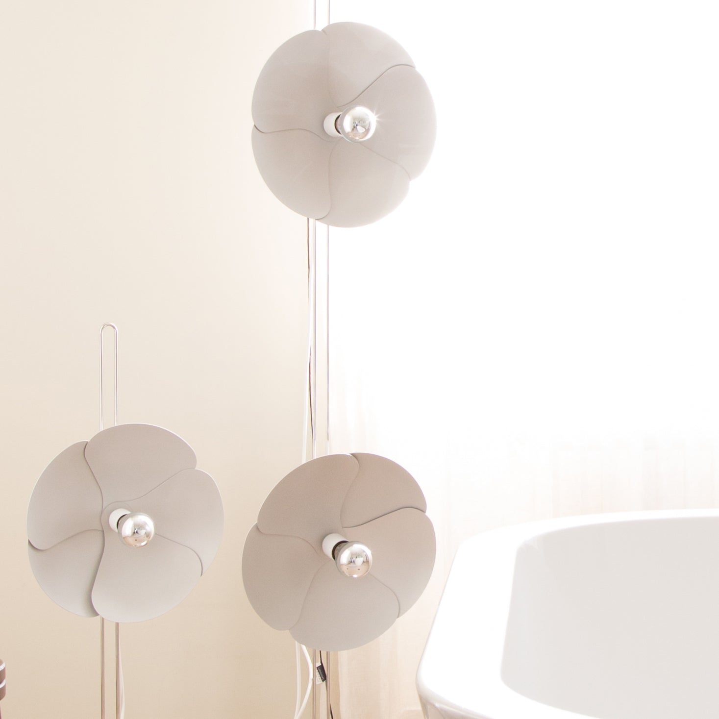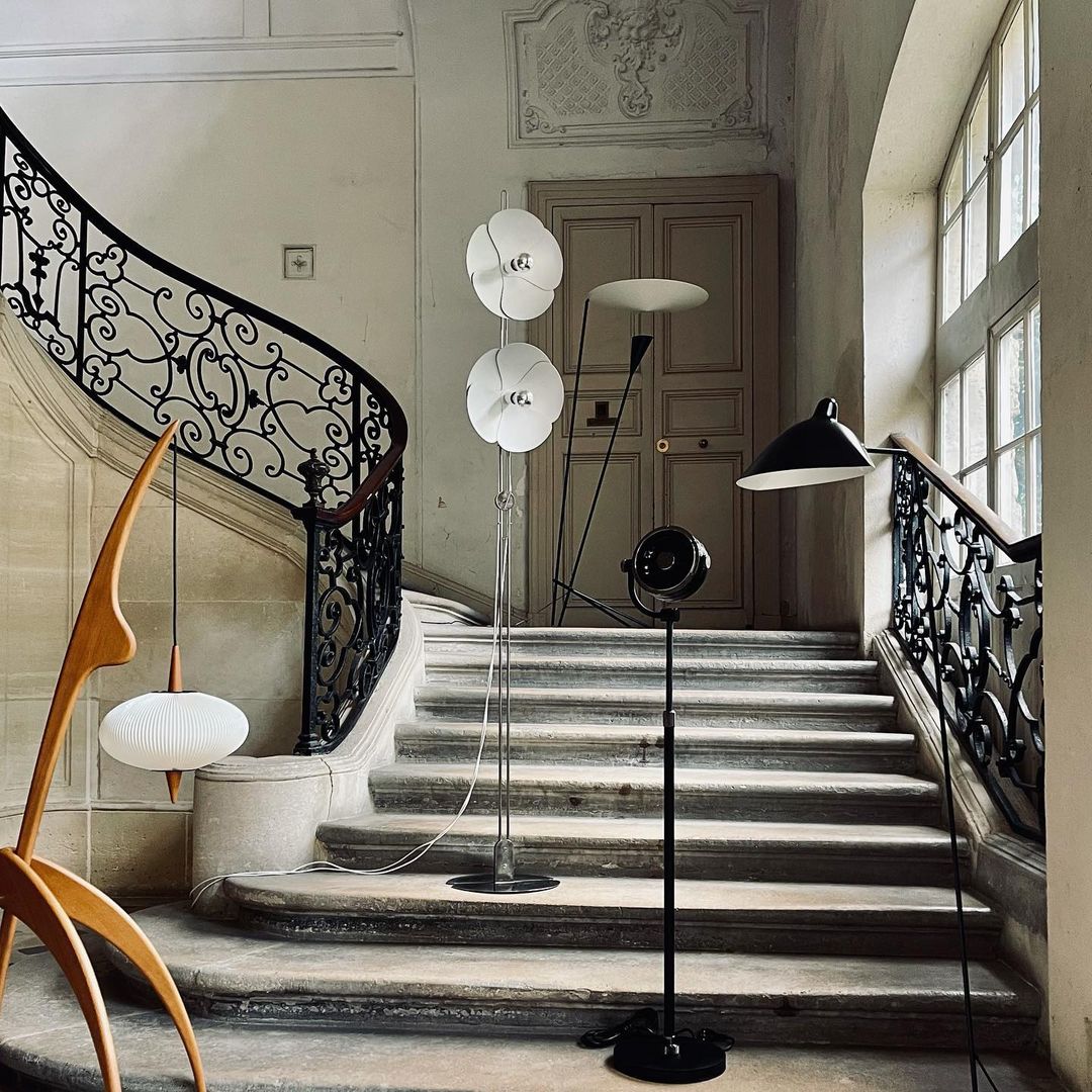 Beautiful flowers Floor lamp, designed In 1967, Our invented a flower-shaped lighting device, made of aluminum petals fixed on two chromed metal wires, He used this silver caped bulb, which was new at the time, and produced very high quality reflected lighting.