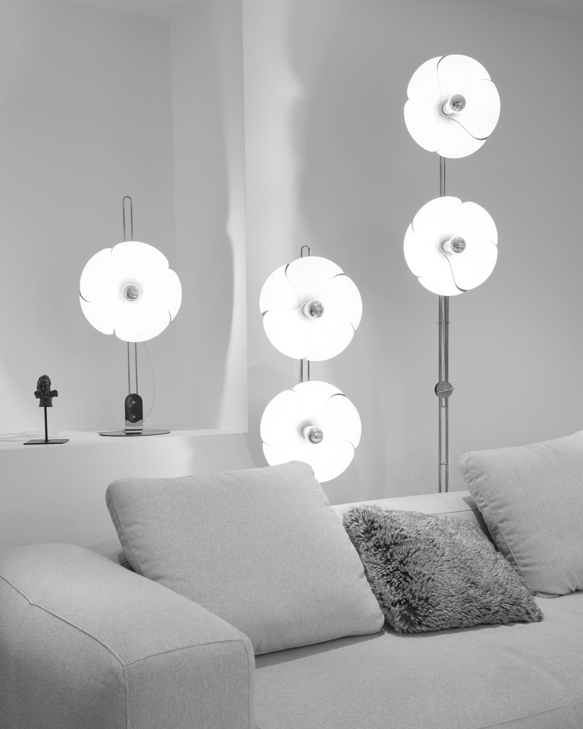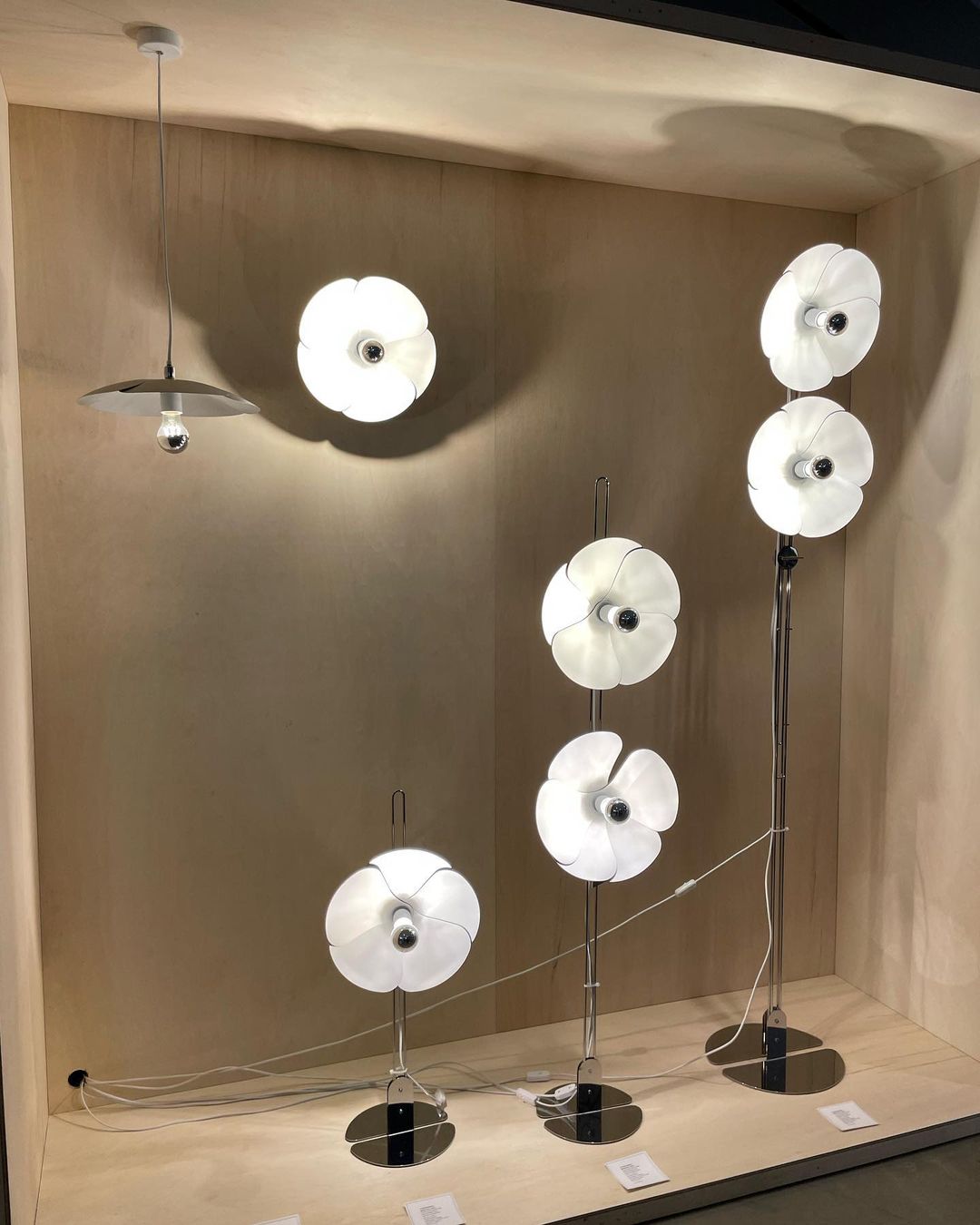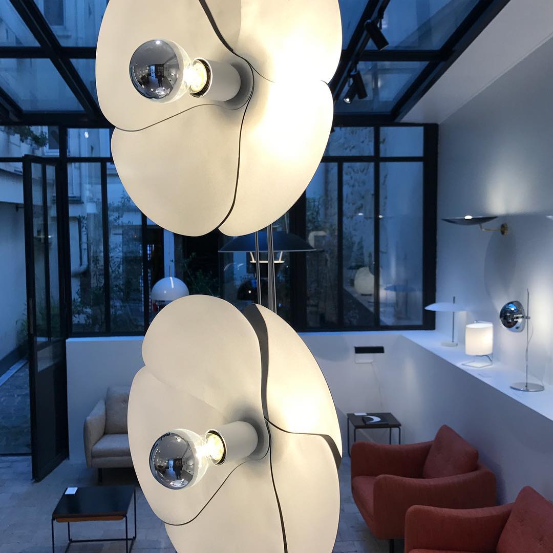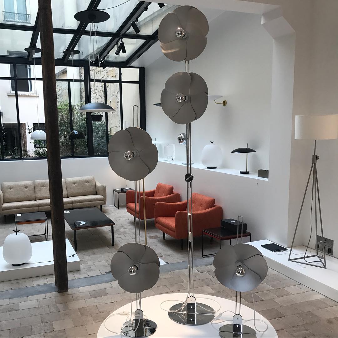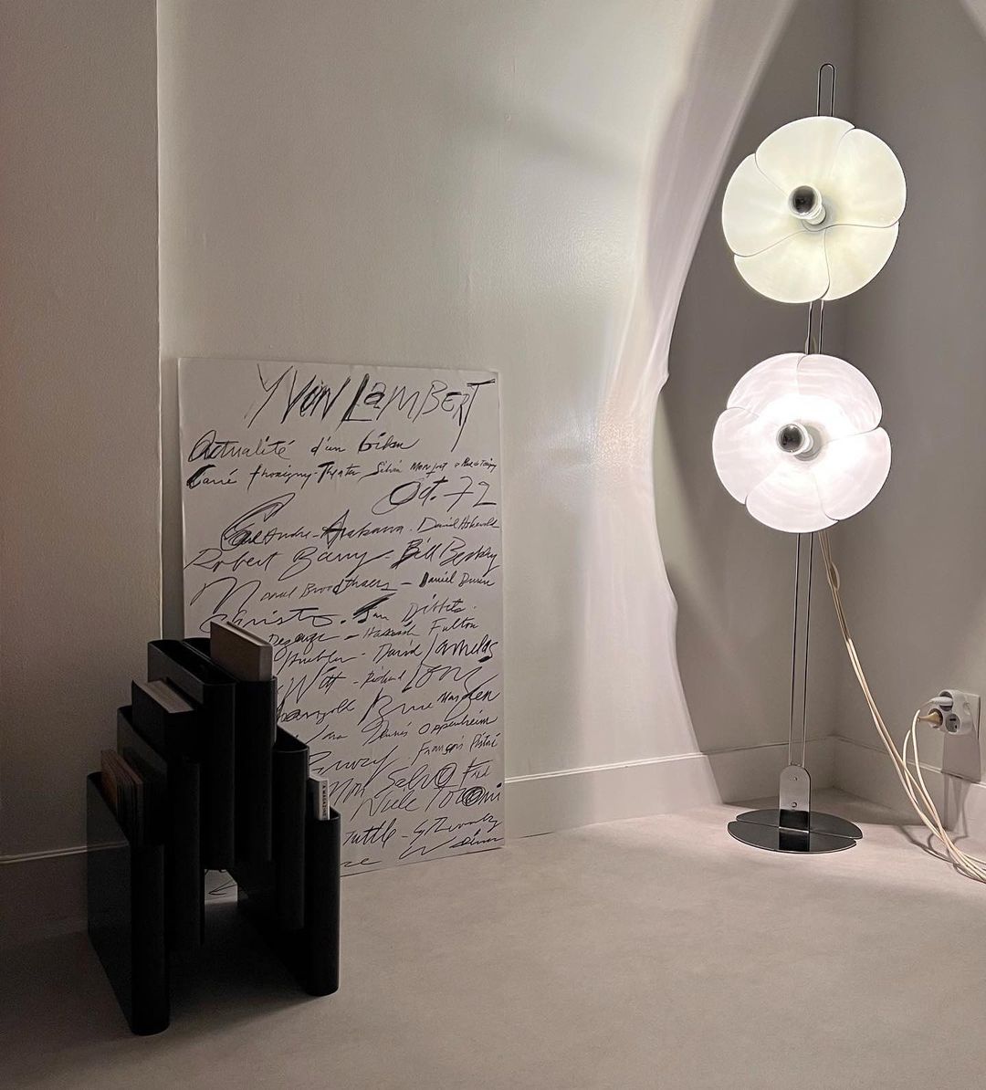 Beautiful flowers Floor lamp, designed In 1967, Our invented a flower-shaped lighting device, made of aluminum petals fixed on two chromed metal wires, He used this silver caped bulb, which was new at the time, and produced very high quality reflected lighting.