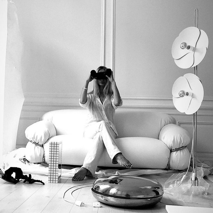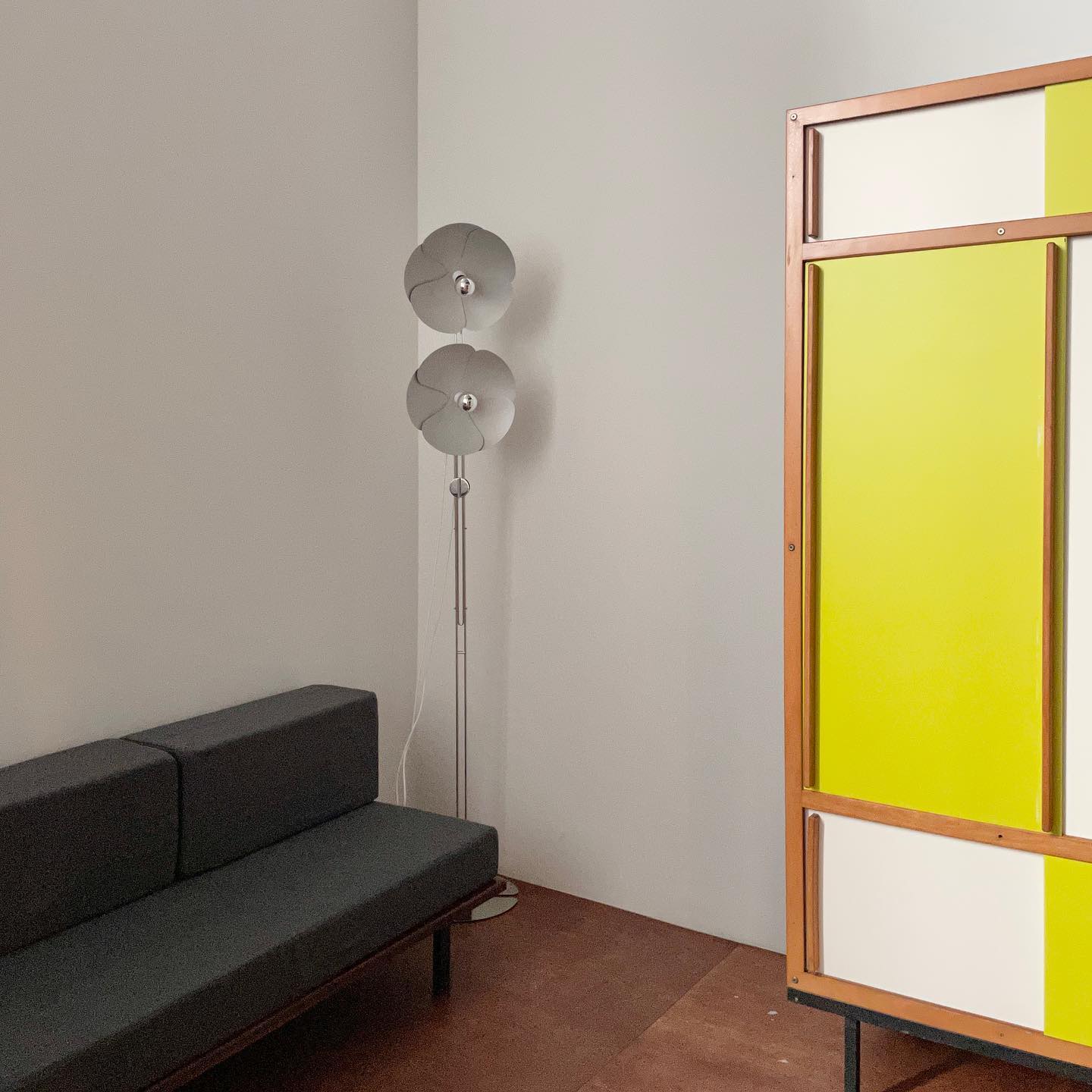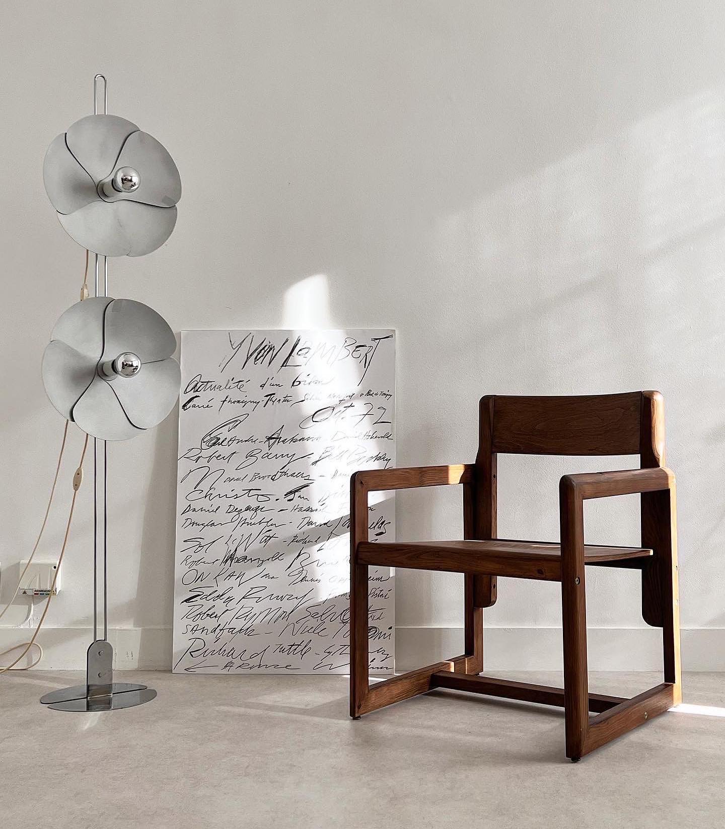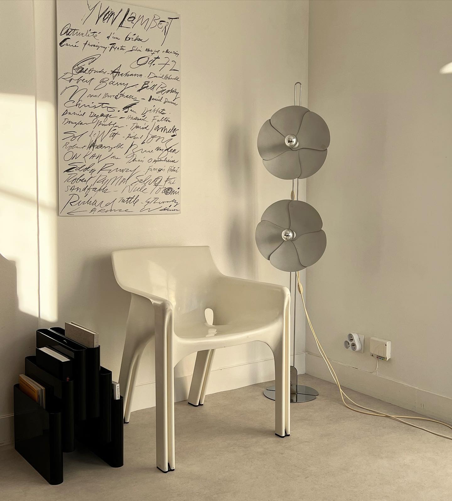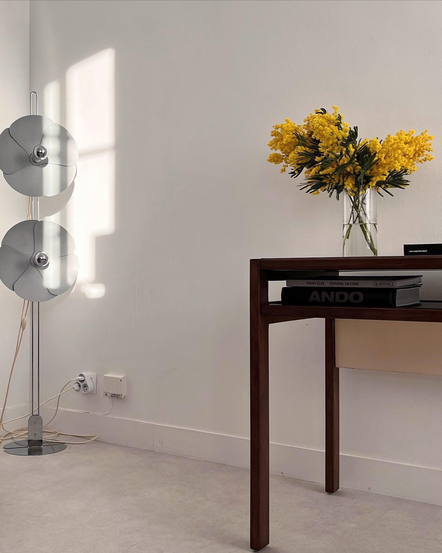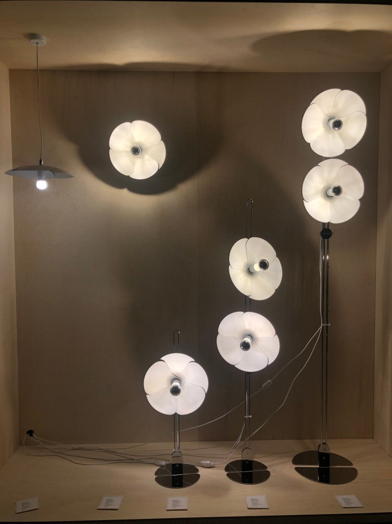 Beautiful flowers Floor lamp, designed In 1967, Our invented a flower-shaped lighting device, made of aluminum petals fixed on two chromed metal wires, He used this silver caped bulb, which was new at the time, and produced very high quality reflected lighting.
