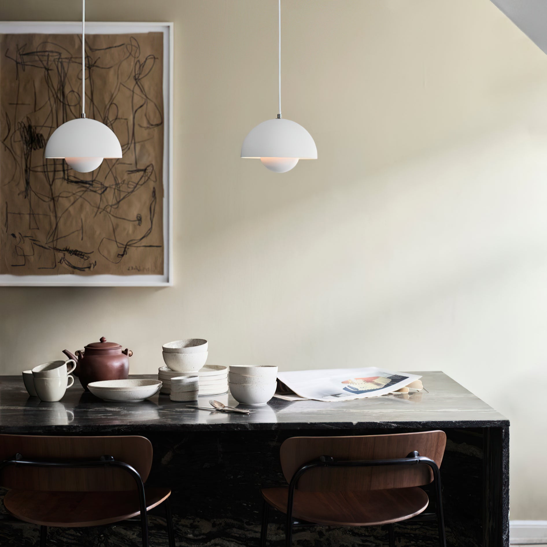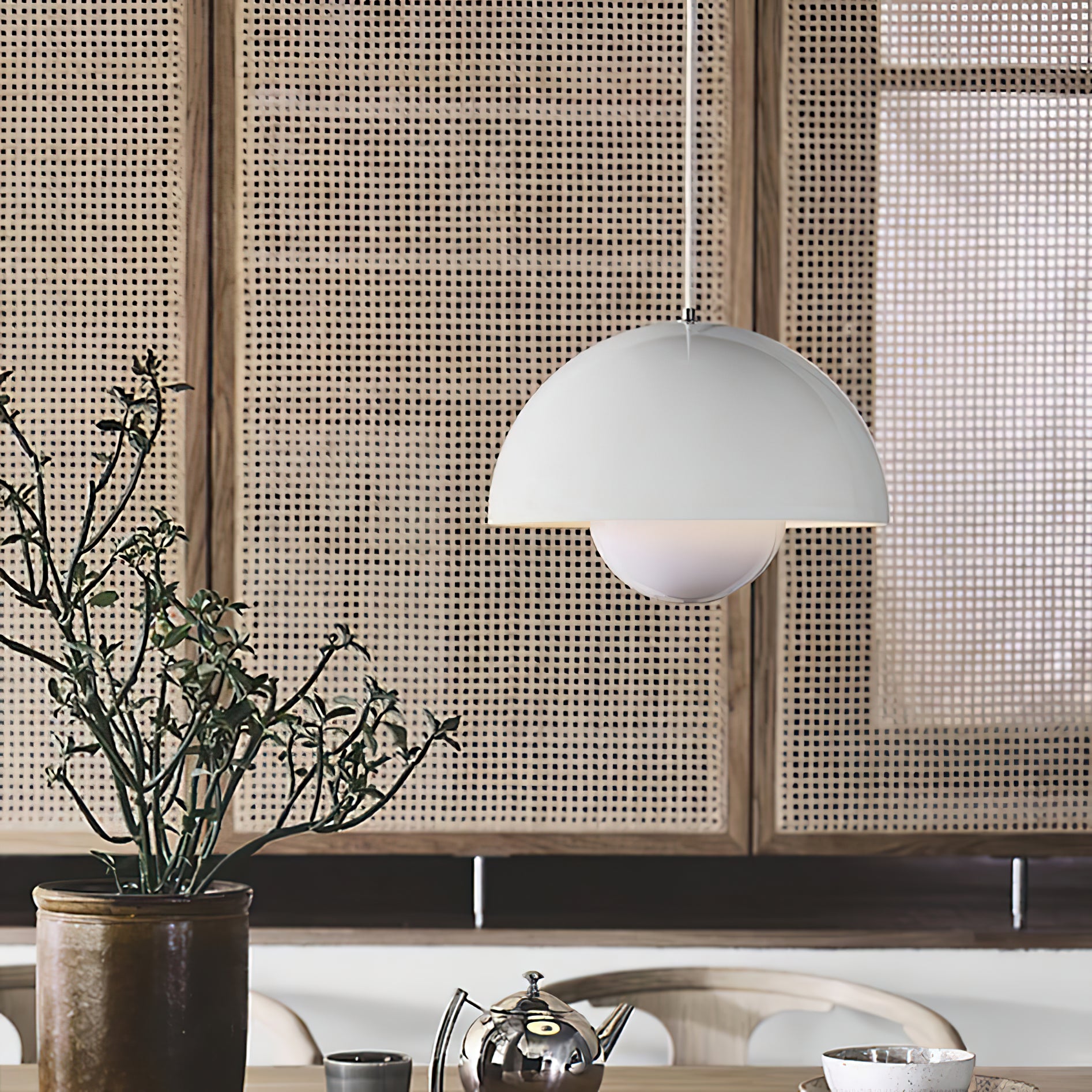 The Flowerpot Pendant Light VP1&VP7 brings sophistication to any room with its minimalist design and stunning mirror-like high-gloss finish created through advanced nano-painting. Ideal for any space, from dining rooms to offices, it adds a statement piece that enhances your decor while radiating beautiful light.