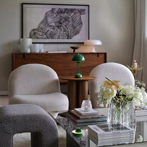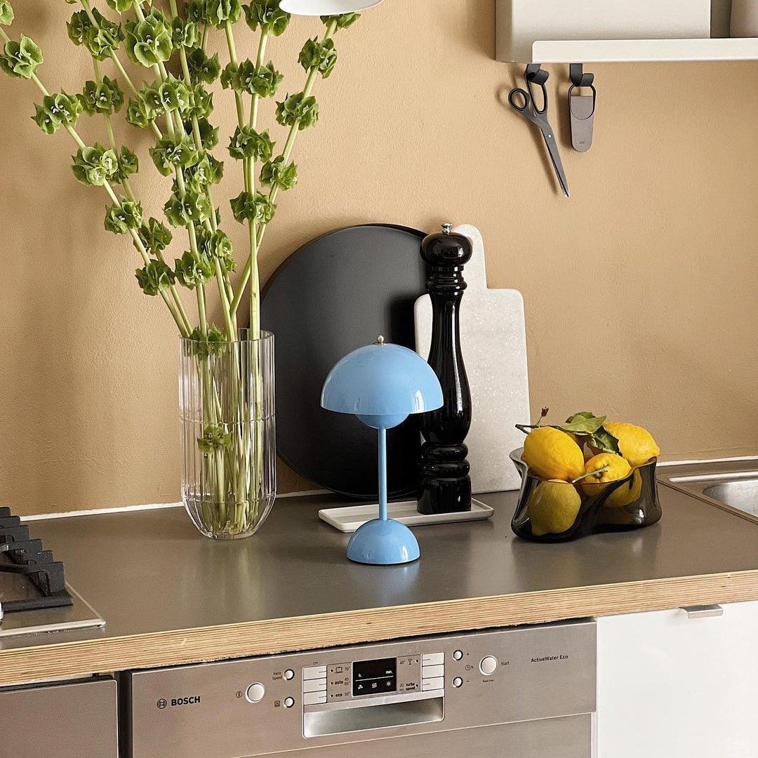 Introducing the Flowerpot Portable Table Lamp - the perfect combination of style and convenience. Enjoy the portability of this cordless lamp with its round base and lampshade. Use the included USB charging cable to take it anywhere. Ideal for creating a cozy ambiance both indoors and outdoors.