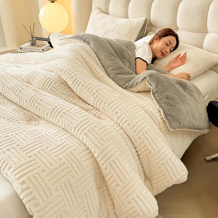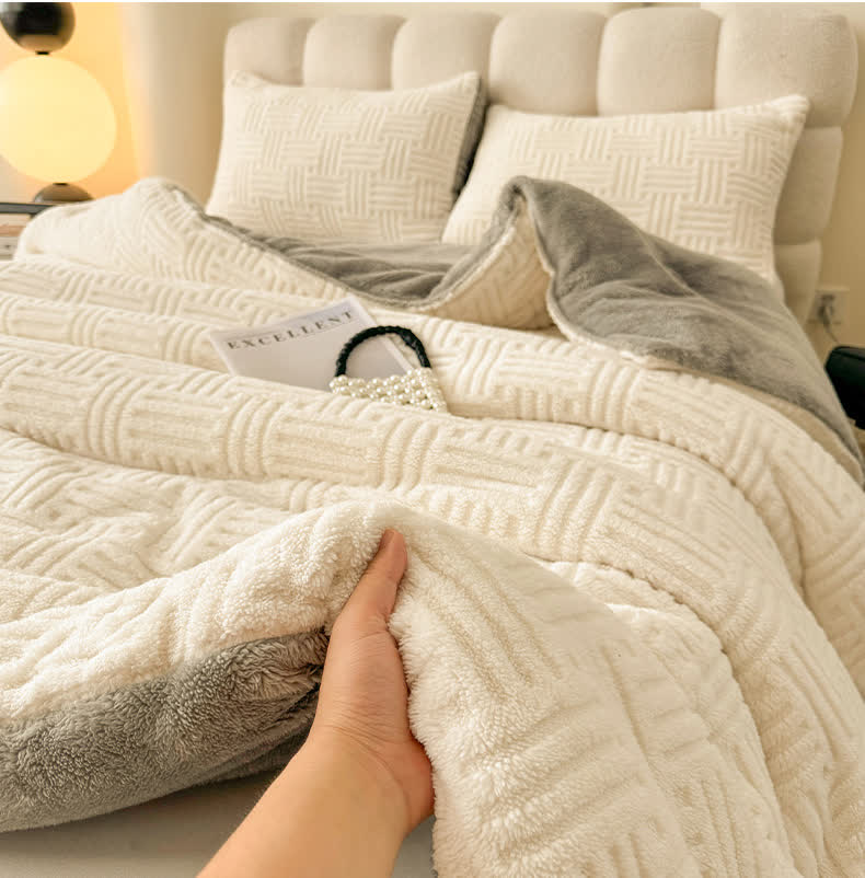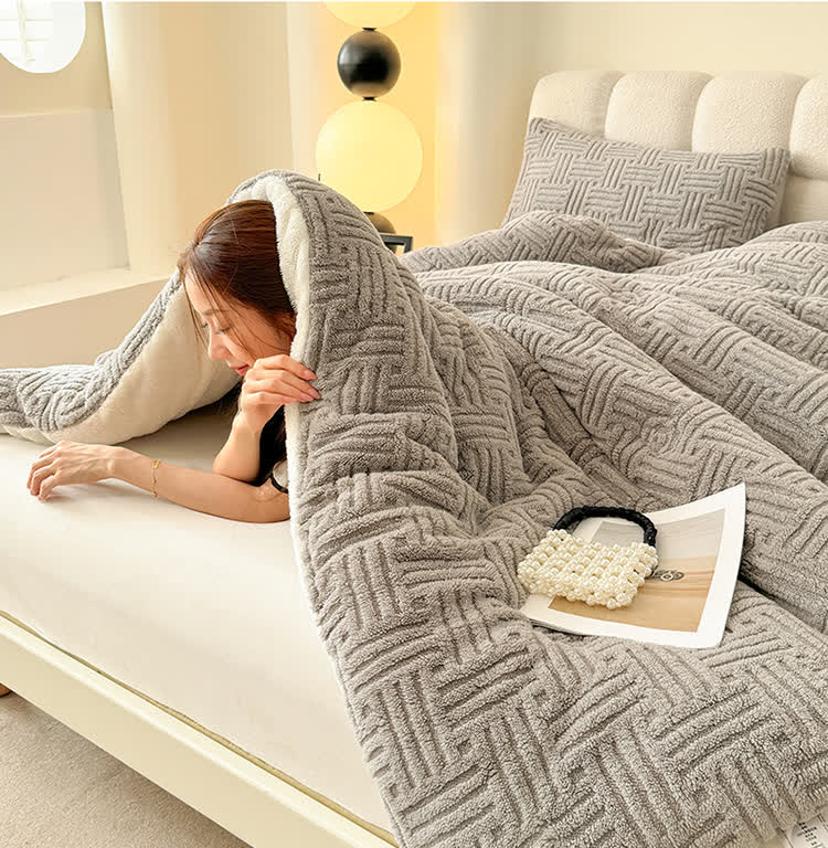 This fluffy blanket boasts a stylish and luxurious appearance, epitomizing warmth and indulgence. Made of double-sided microfiber velvet, it offers different textures without shedding or static, keeping you warm on cold nights for improved sleep quality.