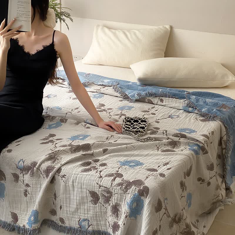Four Layers Cotton Gauze Tassel Comfy Quilt