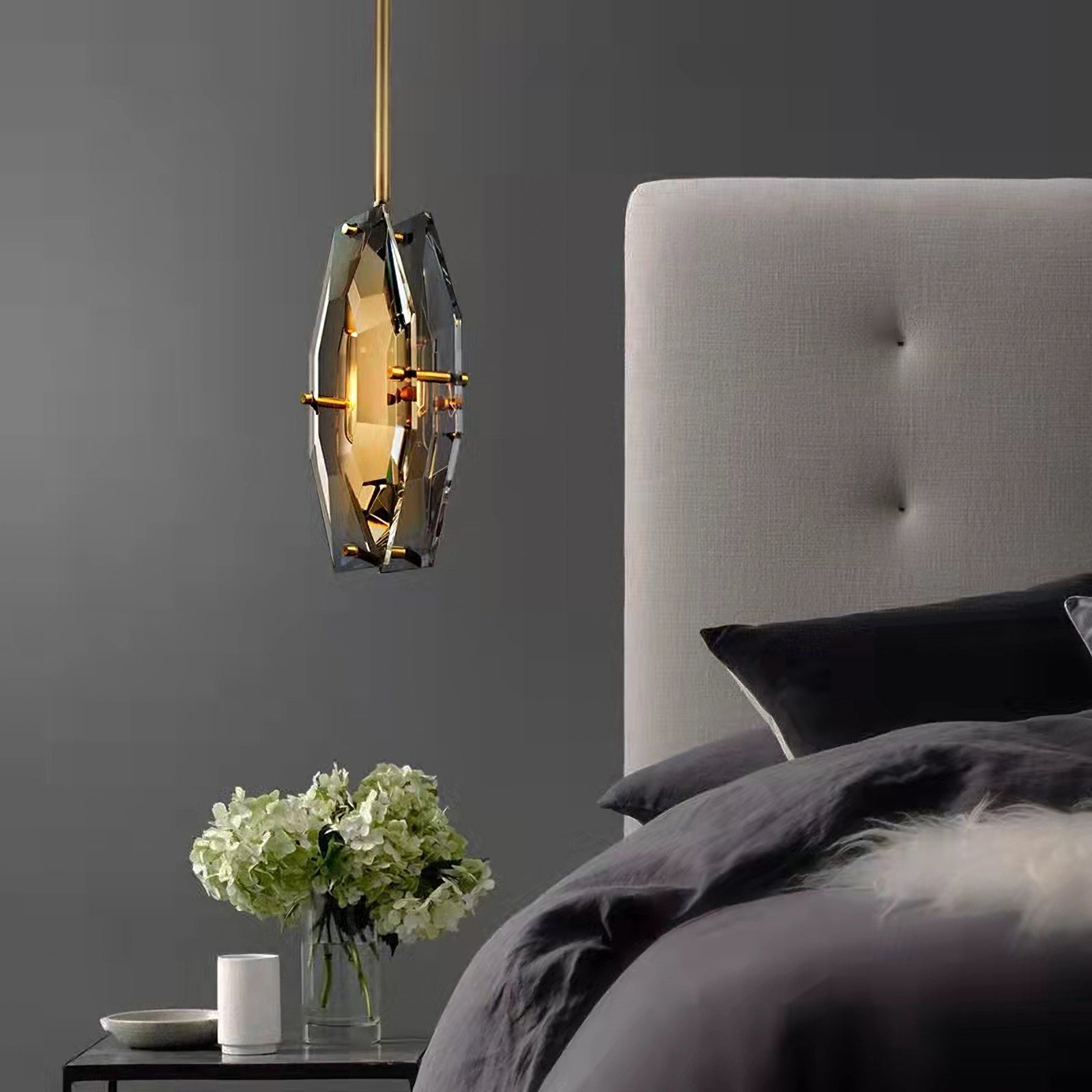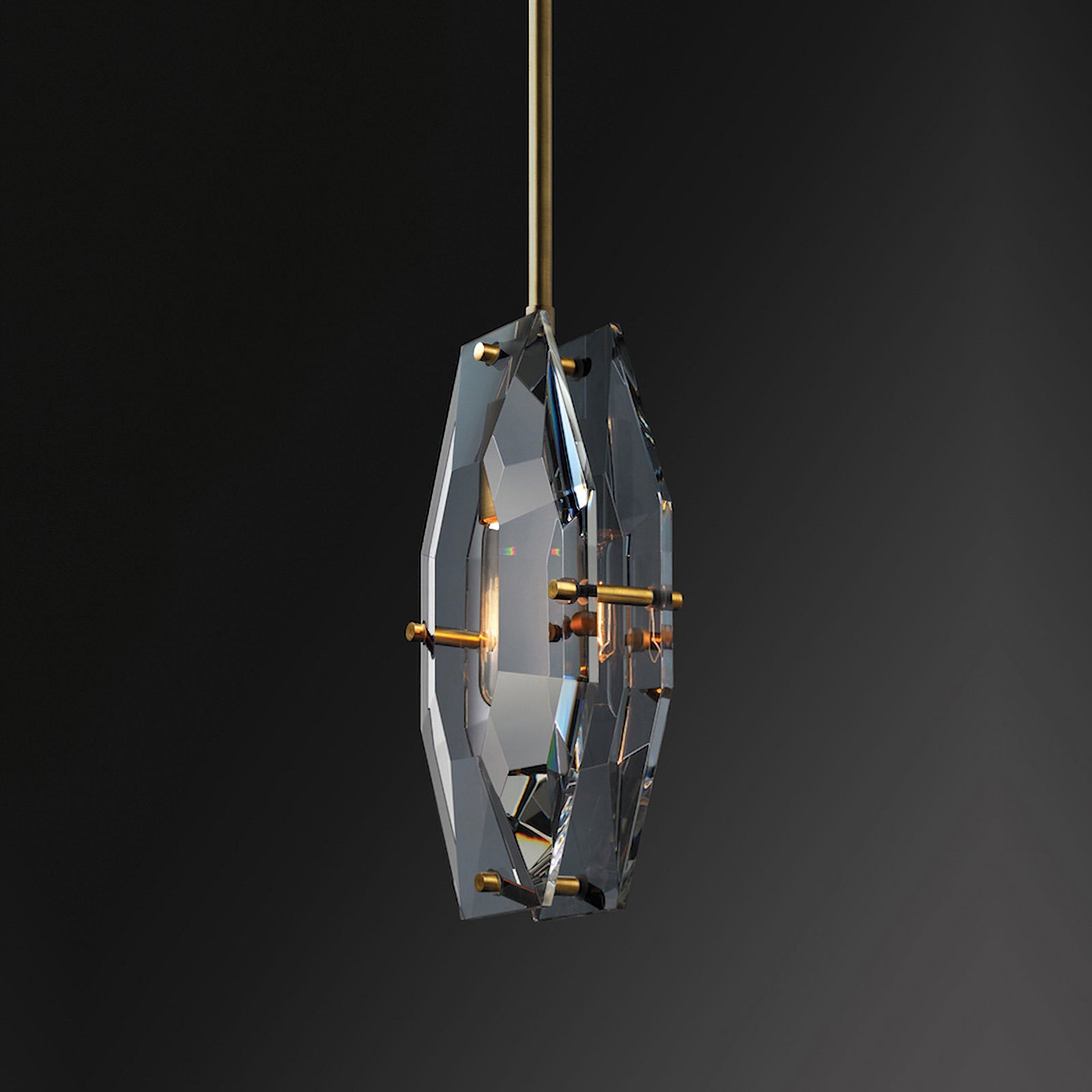 The Francaix Pendant Light is machined by hand from solid brass. All parts are hand polished and Patina’d. The crystal panel is hand-processed and polished. Take your room ensemble from simple to stylish with this must-have pendant lighting. Simple and modern come to mind when you see this pendant. This fixture is minimalist in design but grand in style.