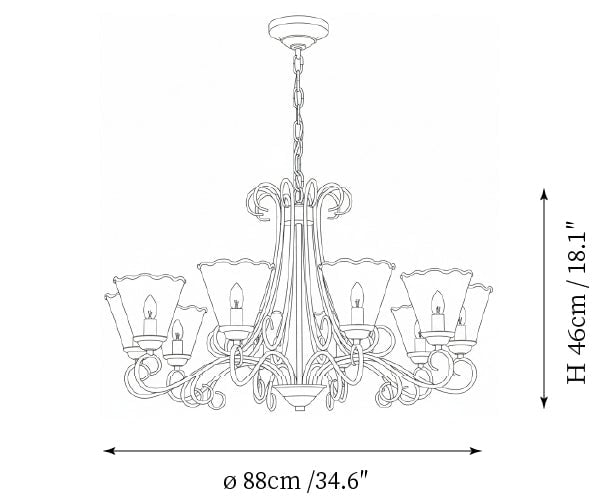 - 10-Lights Size: Dia 88cm x H 46cm / ∅ 34.6″ x H 18.1″