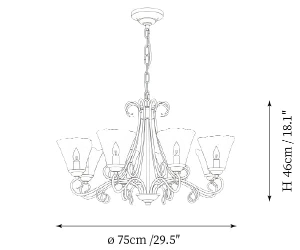 - 8-Lights Size: Dia 75cm x H 46cm / ∅ 29.5″ x H 18.1″