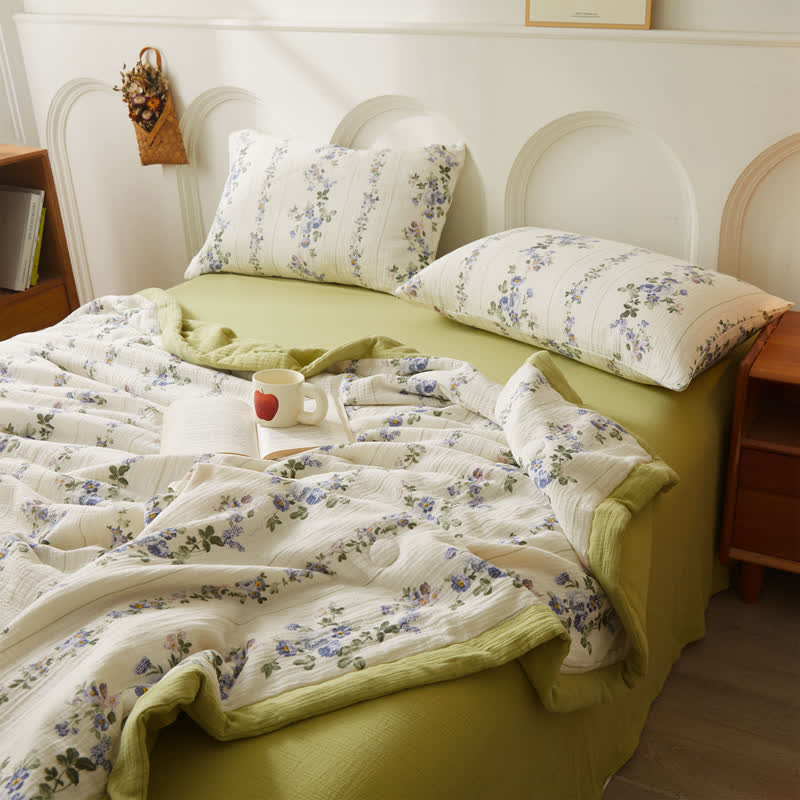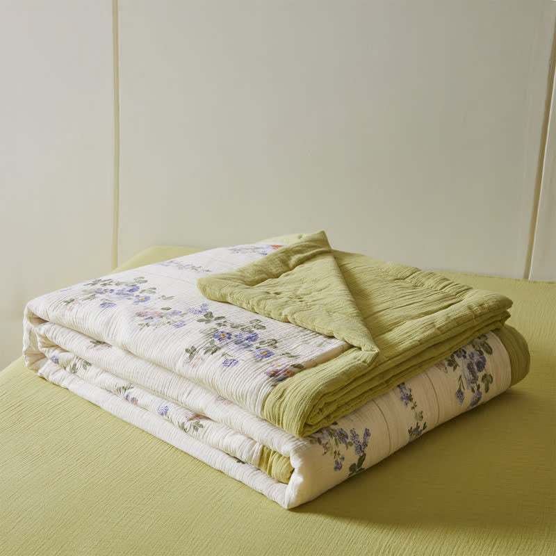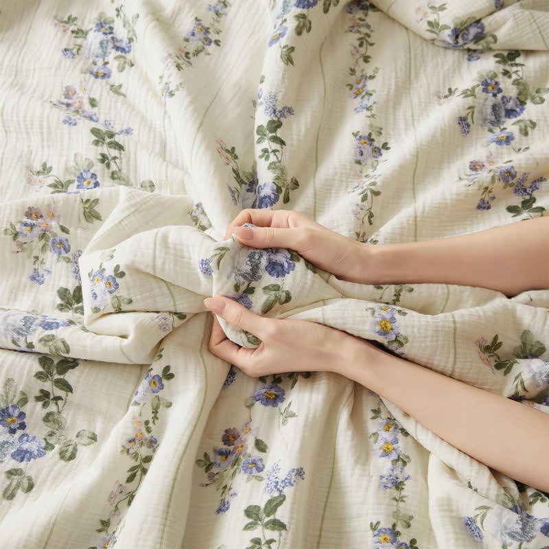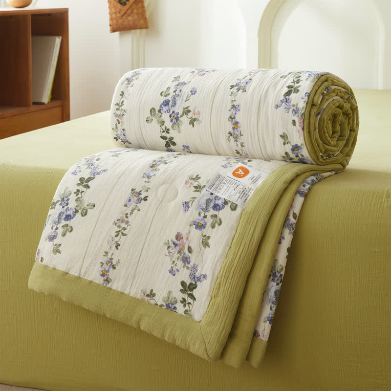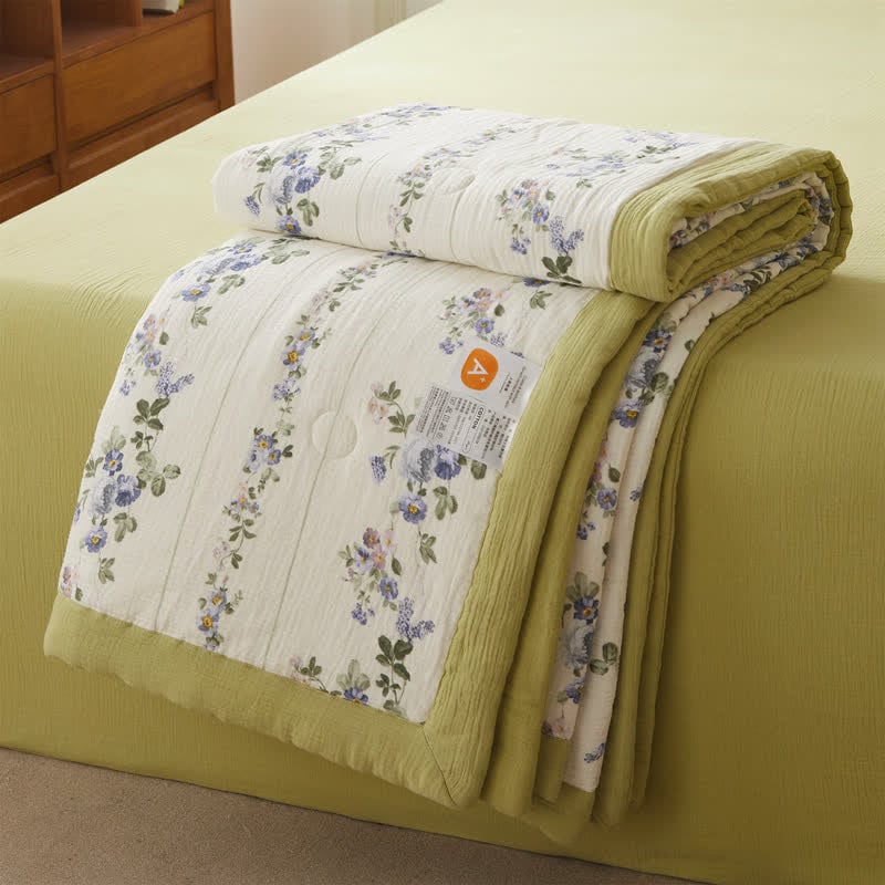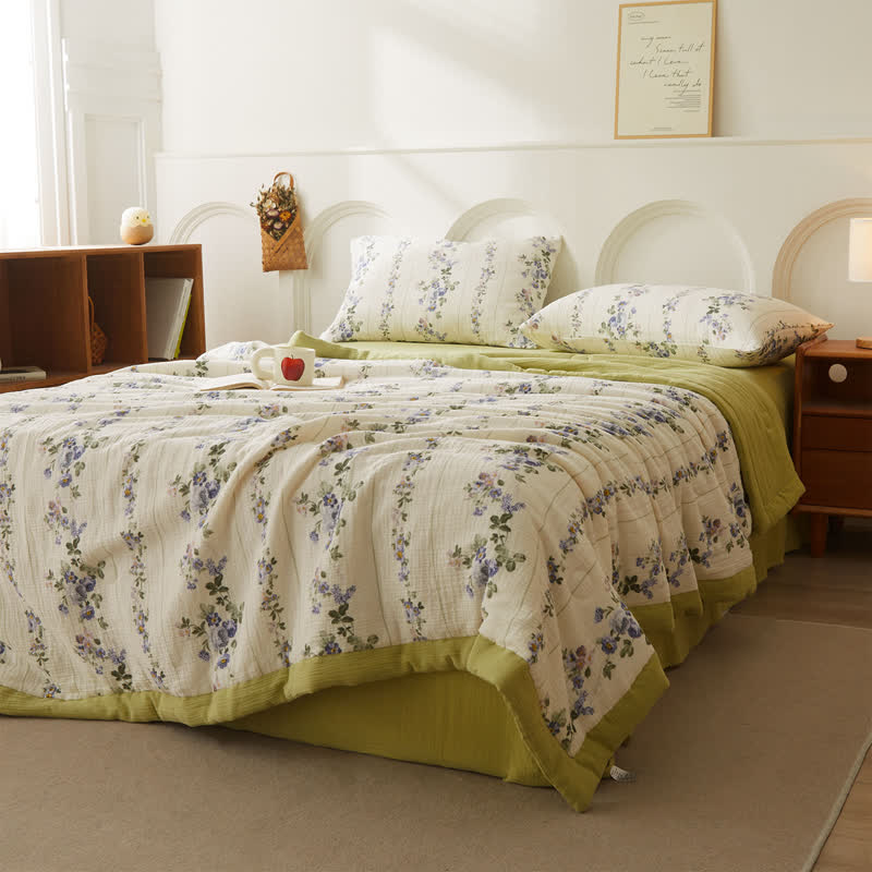 Fresh Floral Cotton Gauze Lightweight Quilt