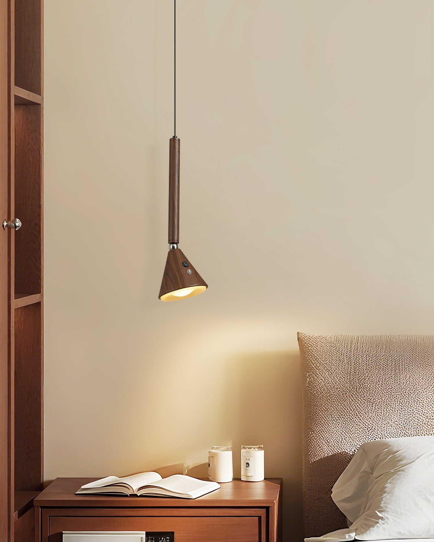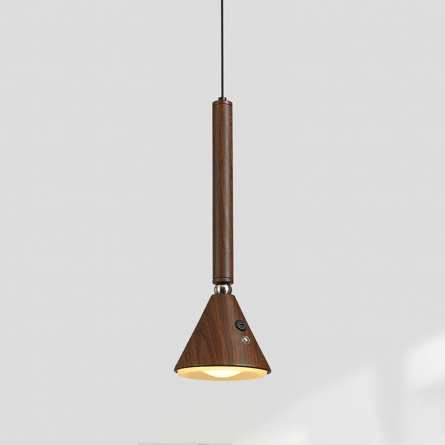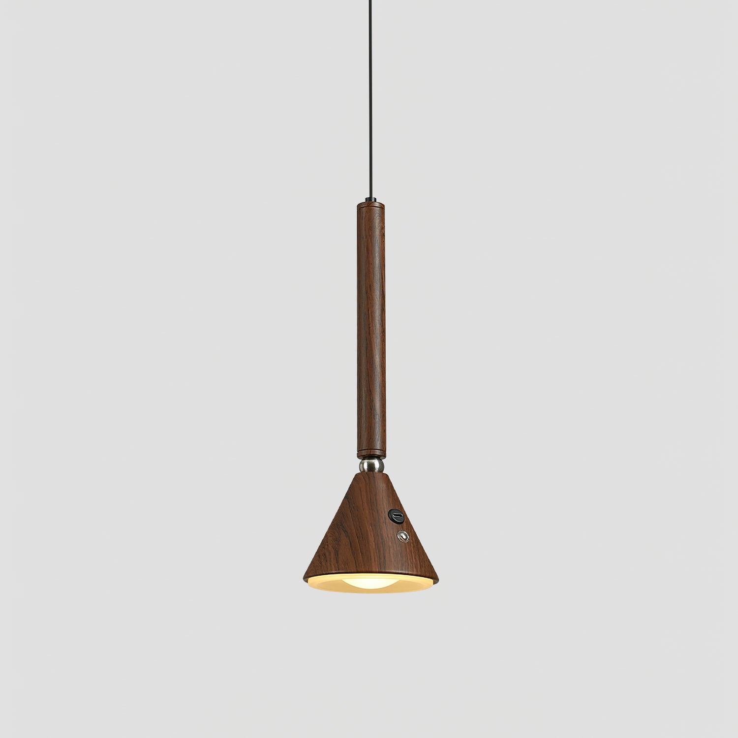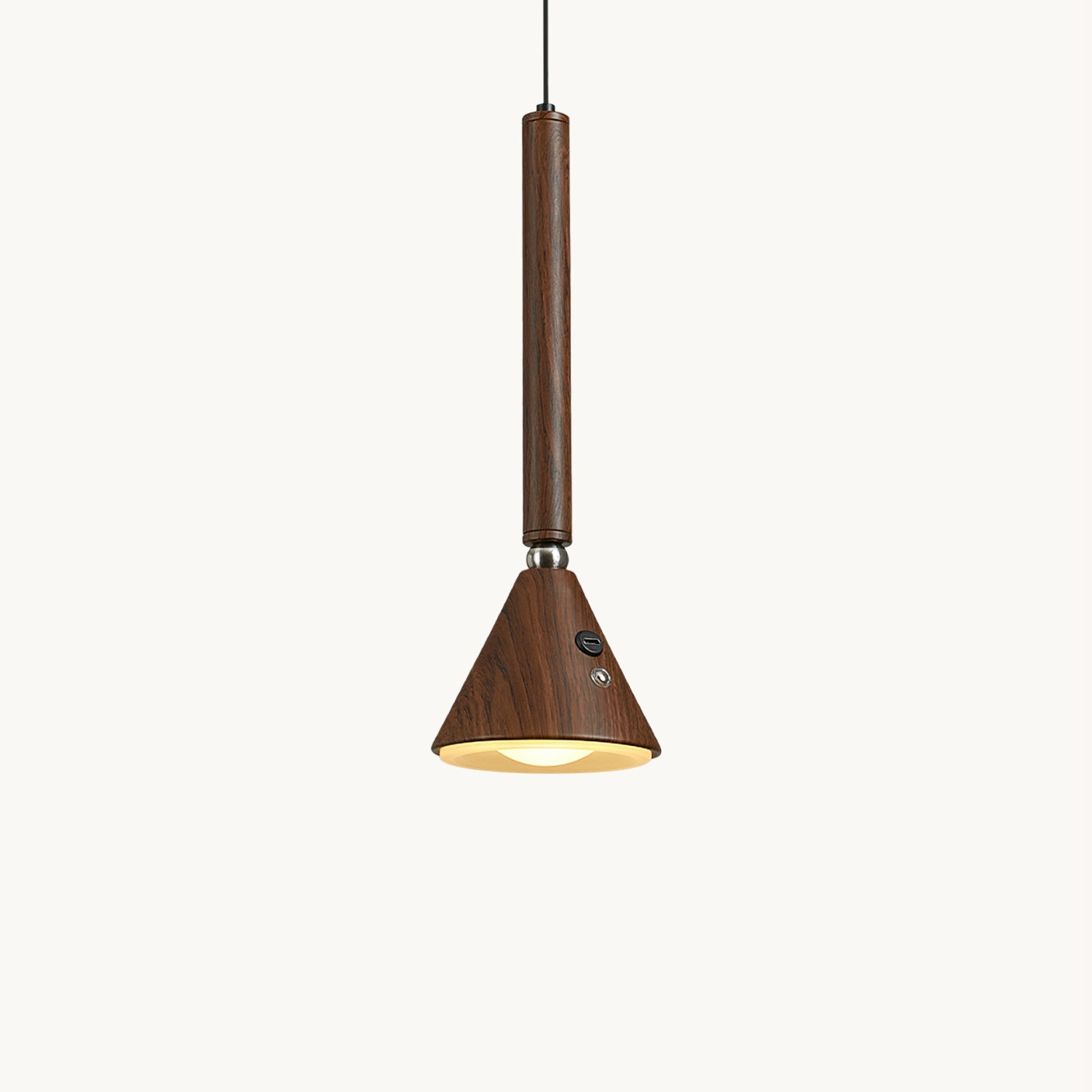 The Galeria Pendant Lamp by Mooijane combines modern simplicity with natural elegance. Its slender cylindrical form and tapered head, finished in rich dark walnut, create sleek lines and refined proportions. The wood grain lends a warm, organic glow, accented by subtle metal details. Emitting a focused, warm beam, it’s ideal for bar lighting, illuminating dining tables, or highlighting a reading nook. With its blend of contemporary design and natural texture, it adds sophistication and calm to any space.