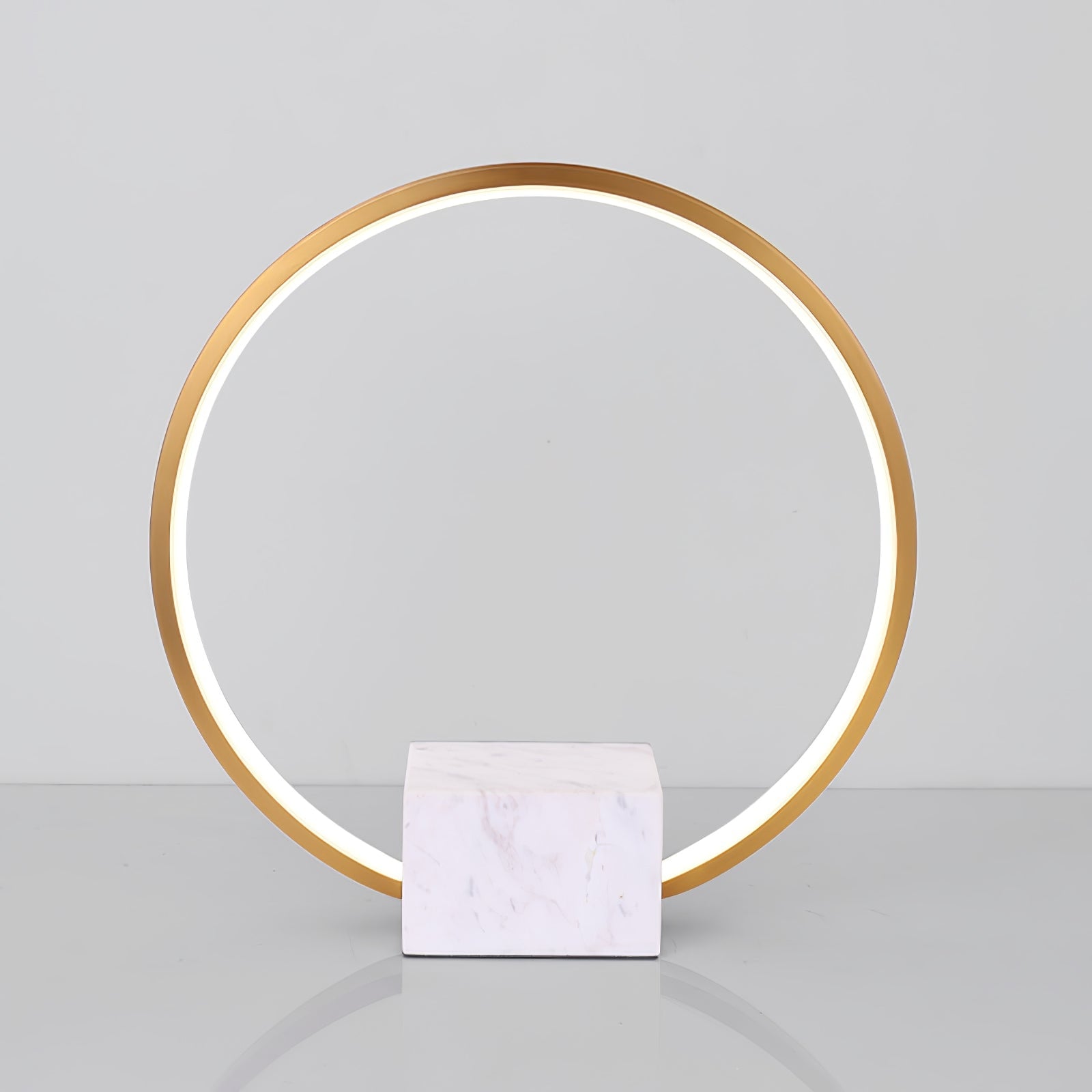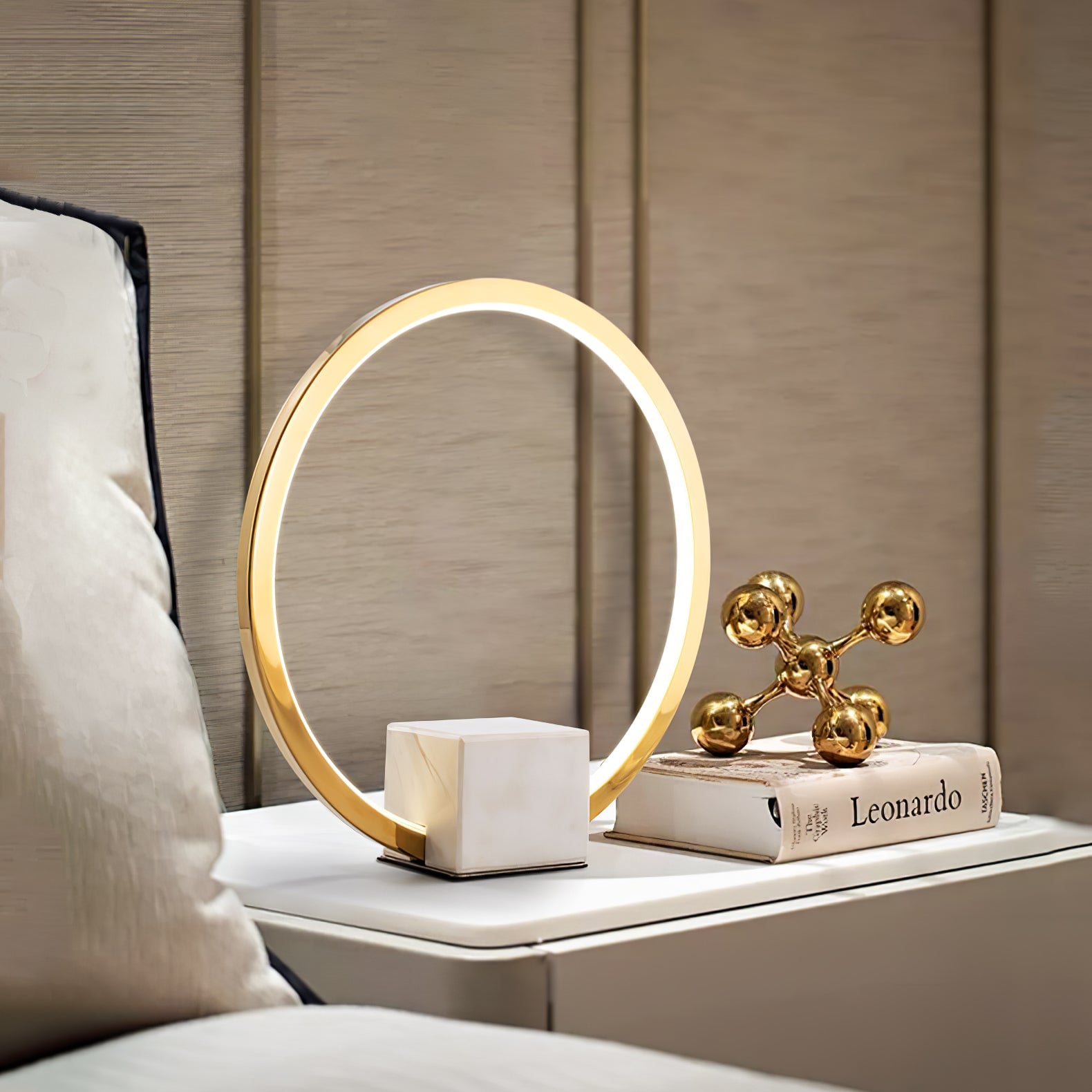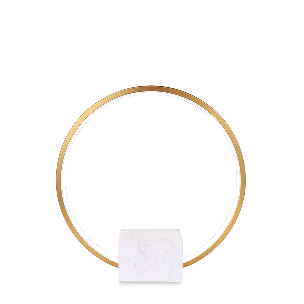This marble base halo lamp illuminates your bedside with style. A lover of simple and understated design? With a marble base and satin gold finish ring, this minimalist-style LED table lamp adds a tasteful statement to any room. Please note that due to this product being natural stone, each fixture may have slight variations.