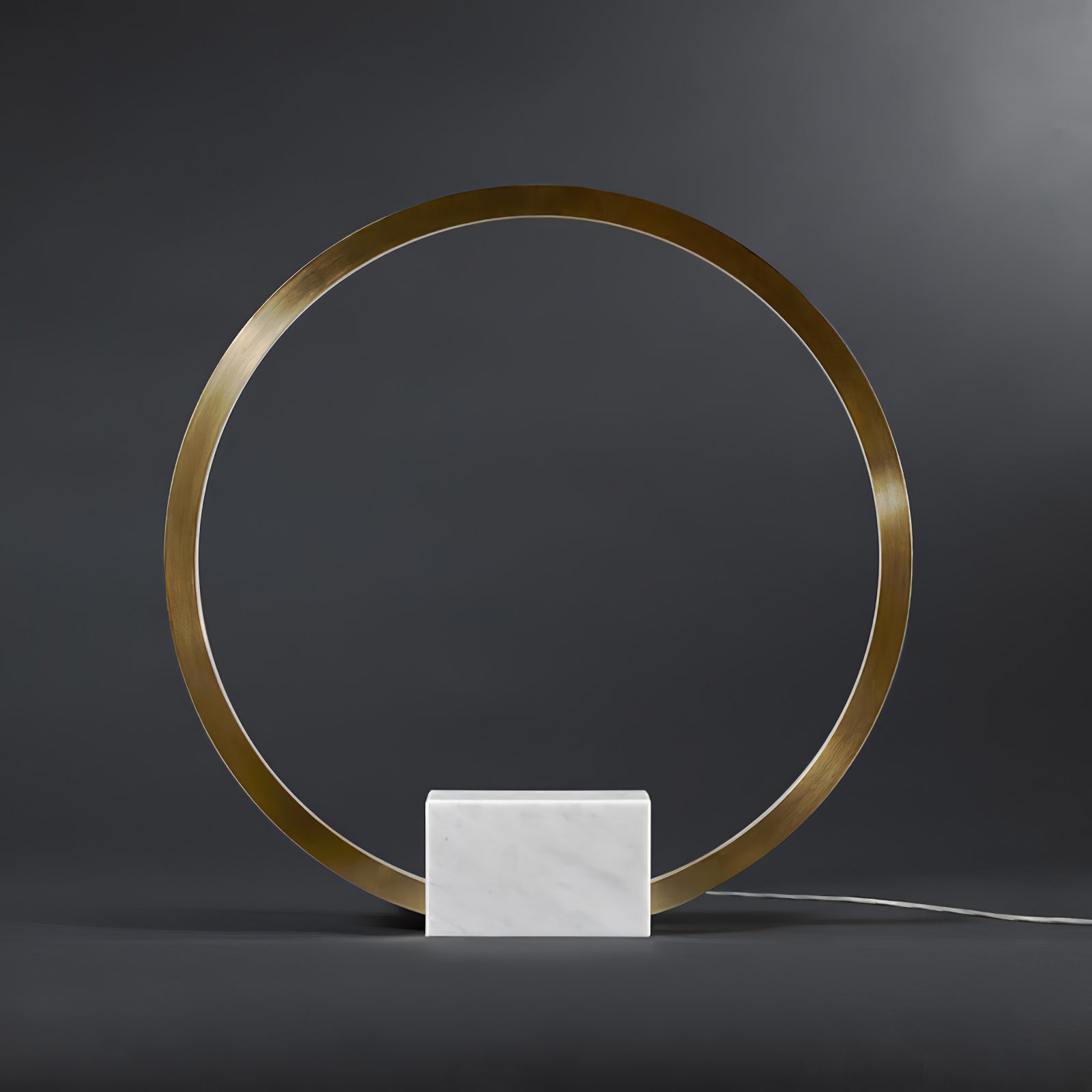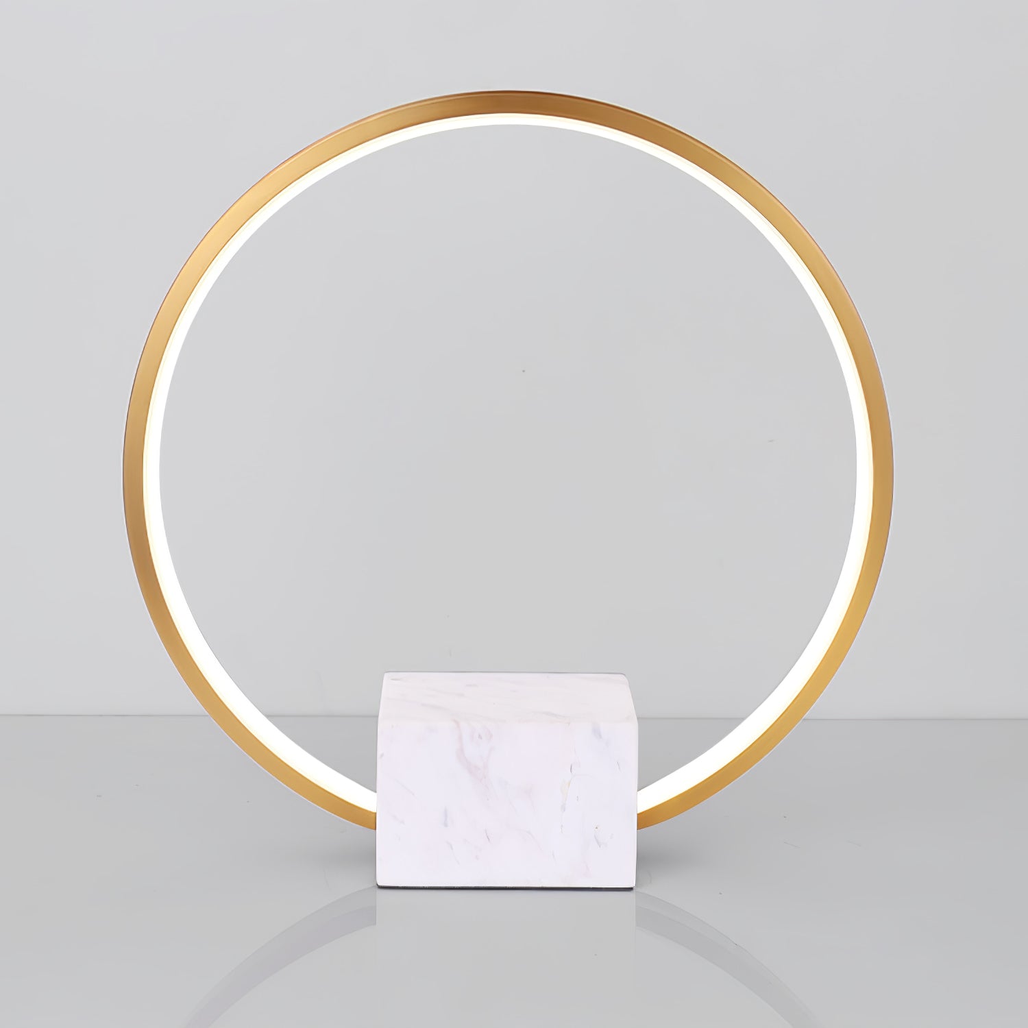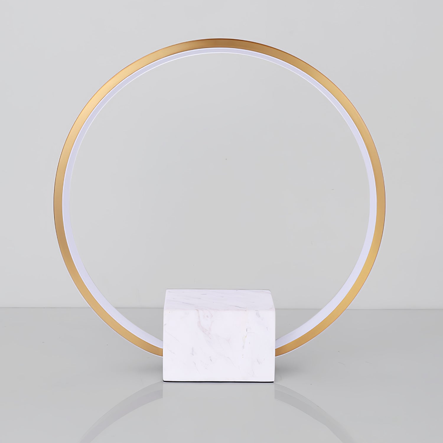 This marble base halo lamp illuminates your bedside with style. A lover of simple and understated design? With a marble base and satin gold finish ring, this minimalist-style LED table lamp adds a tasteful statement to any room. Please note that due to this product being natural stone, each fixture may have slight variations.