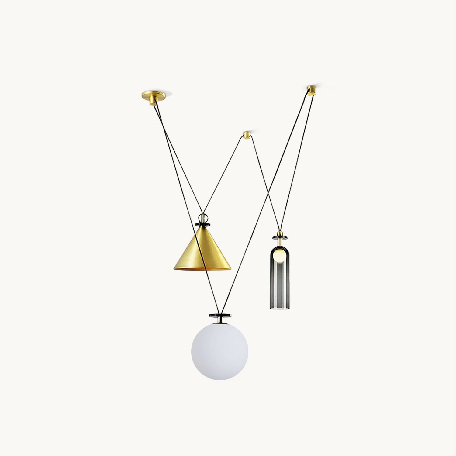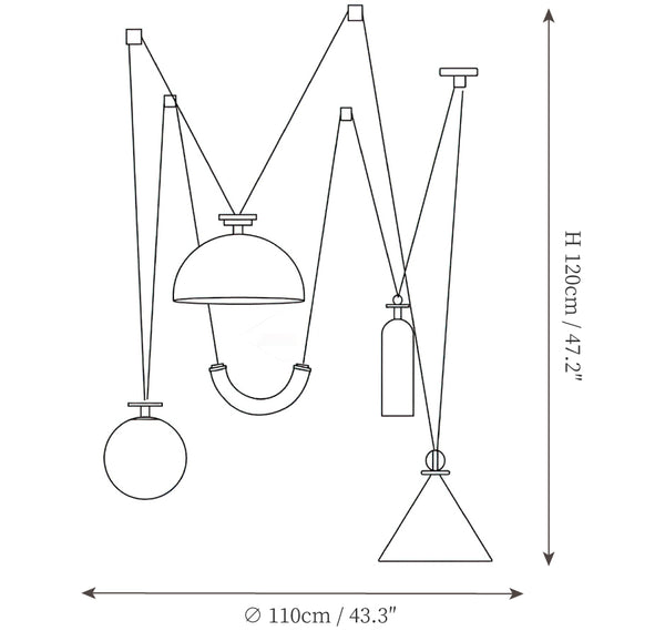 Shape Up is a versatile lighting series that celebrates bold geometric shapes: the playful juxtapositions upend traditional notions of symmetry in favor of dynamic spatial harmony. The modular system allows the shapes to be suspended and composed in response to a space's architecture and function, its shades discreetly networked via connecting cords and hubs.