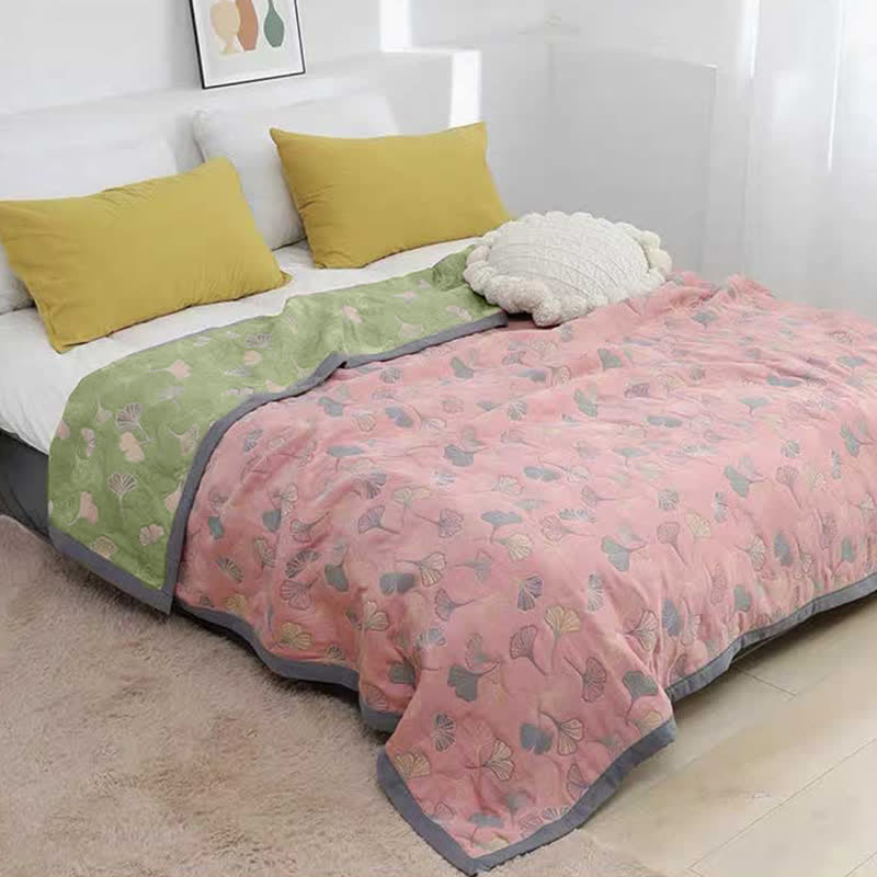 Ginkgo Leaf Pattern Cotton Reversible Quilt