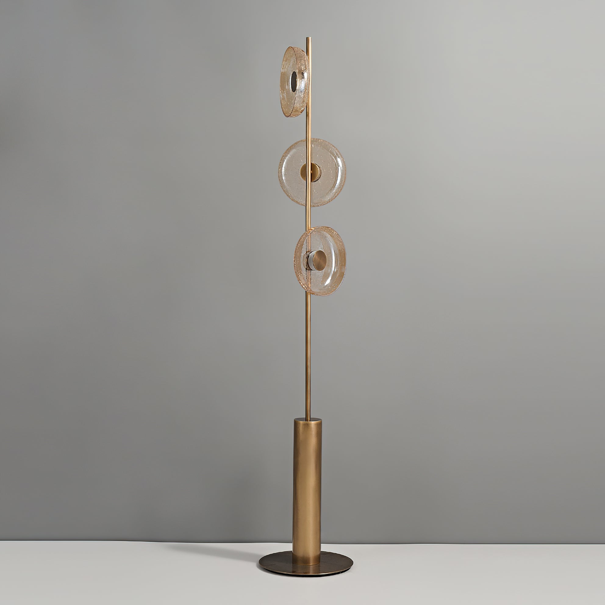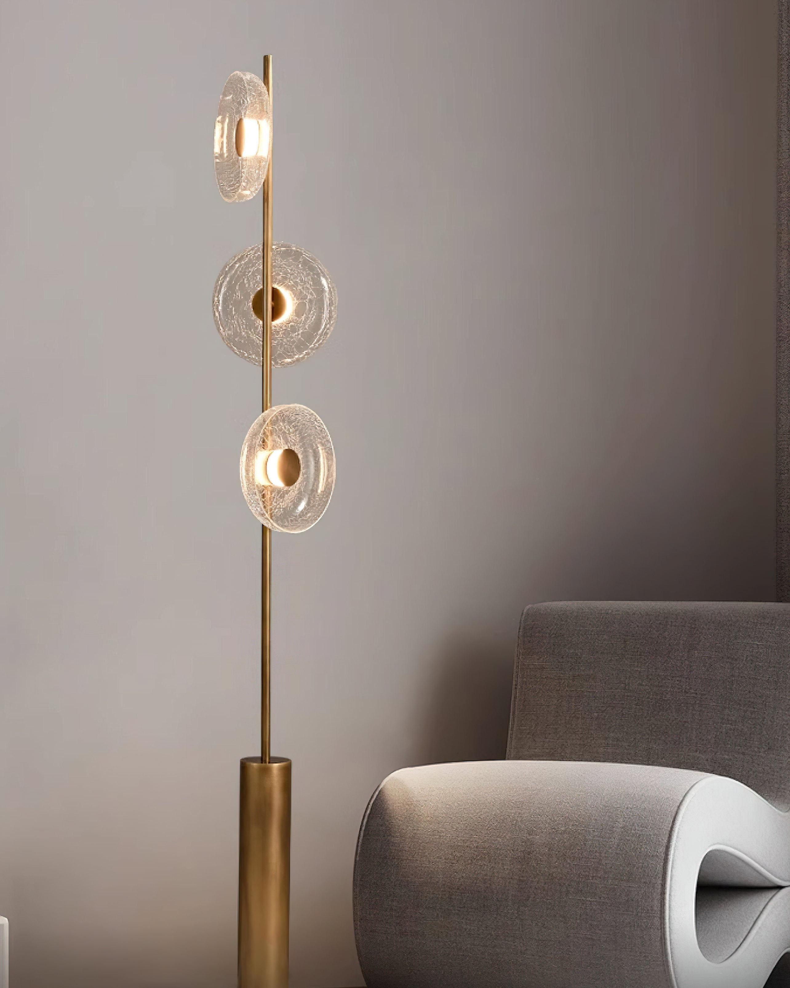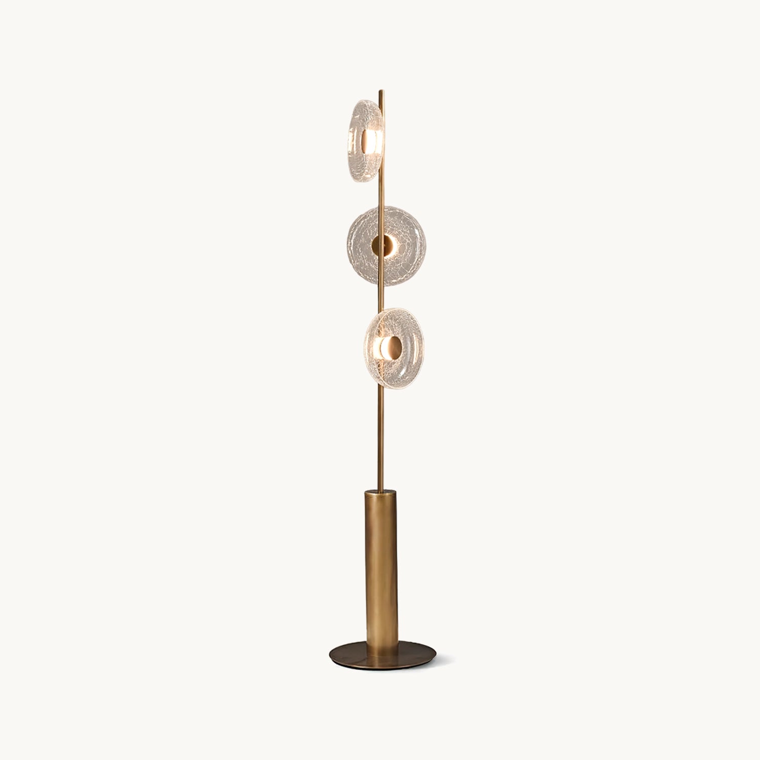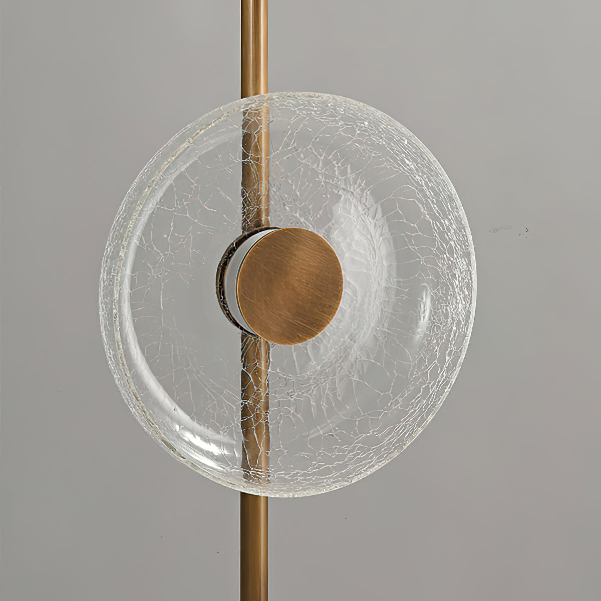 Introducing the Glacier Crackle Floor Lamp. This elegant lamp boasts a cracked glass lampshade that refracts light, creating a mesmerizing display. The textured brushed body adds a delicate touch to your home decor. With adjustable lighting levels, experience the enchantment of light and shadow interaction.