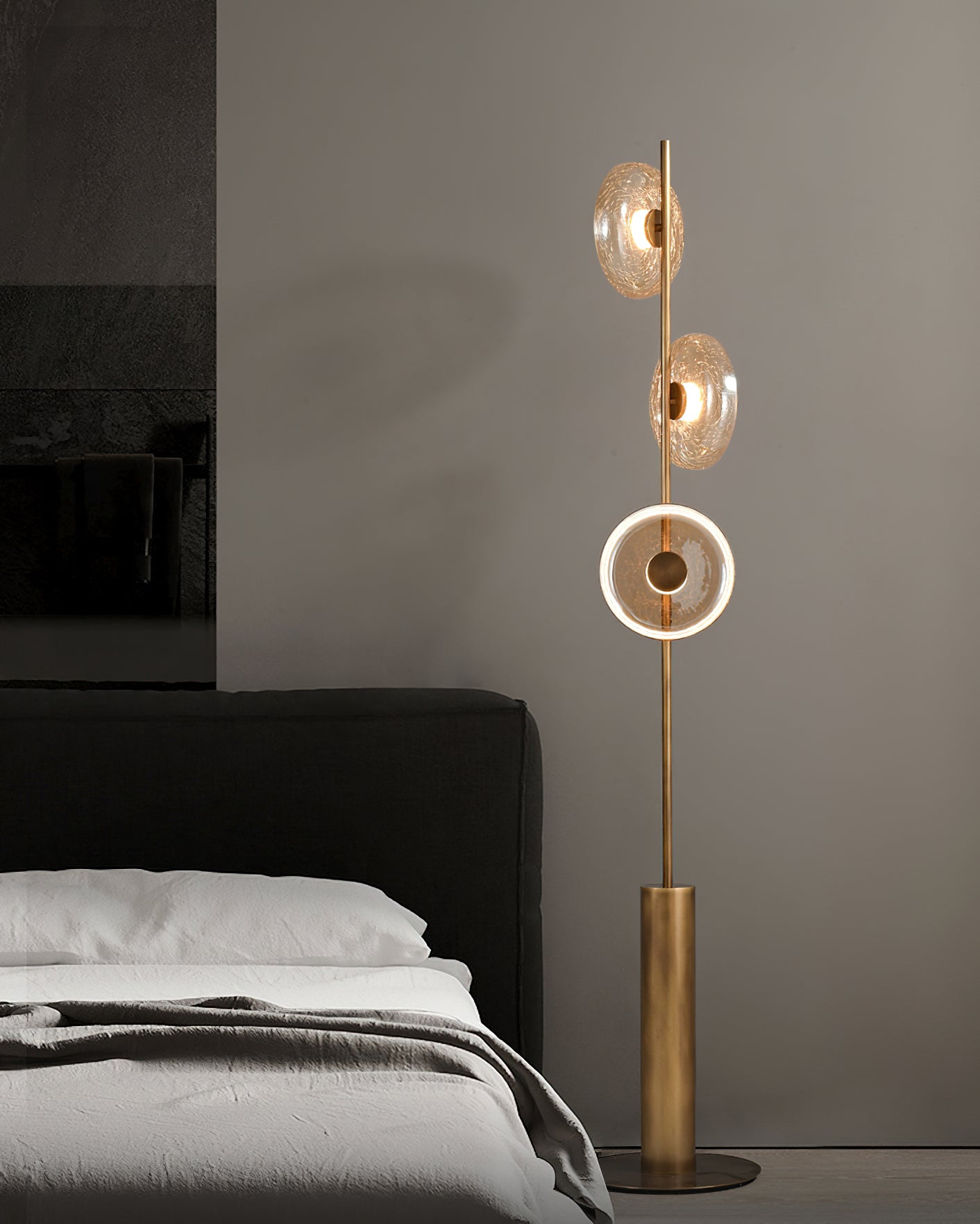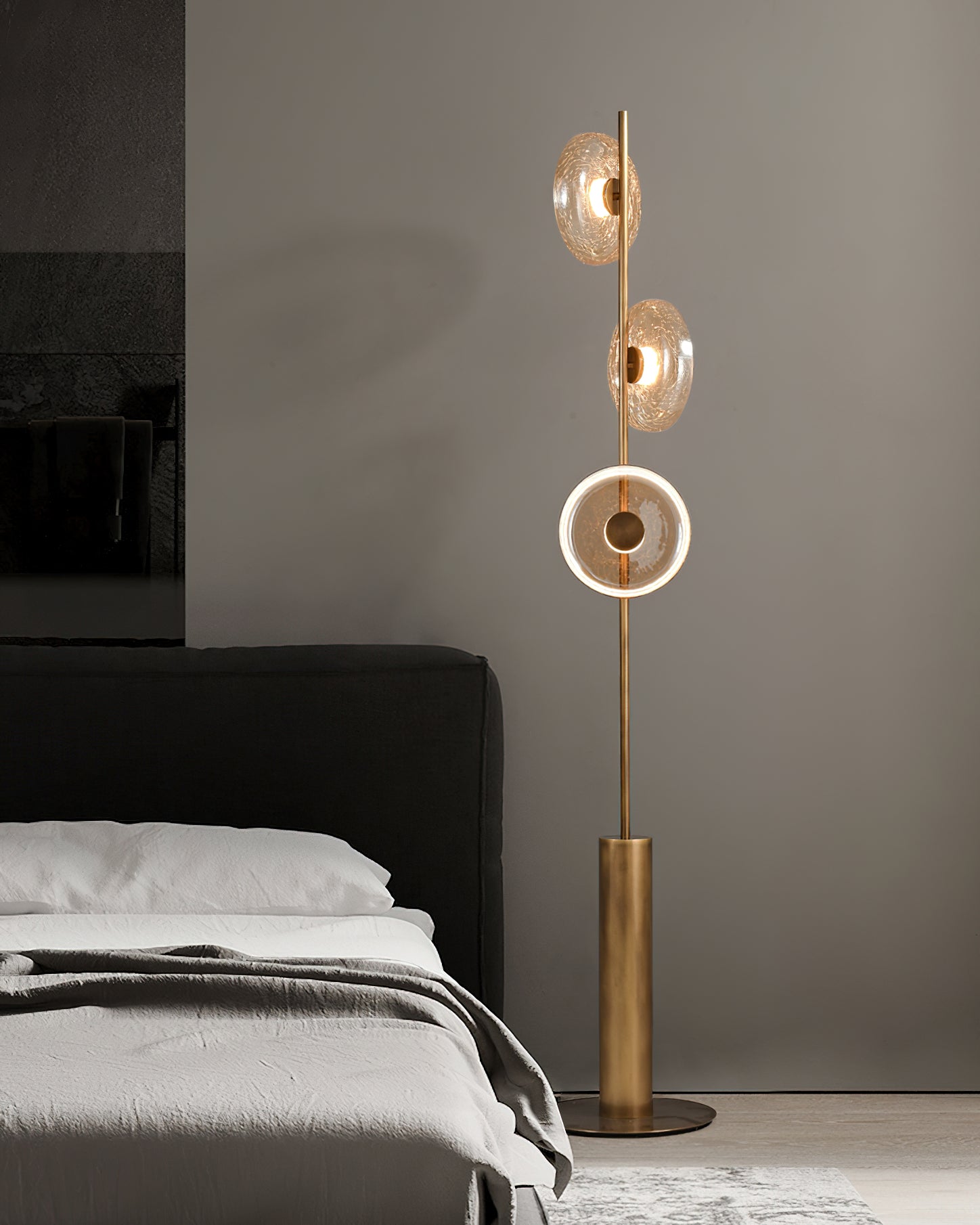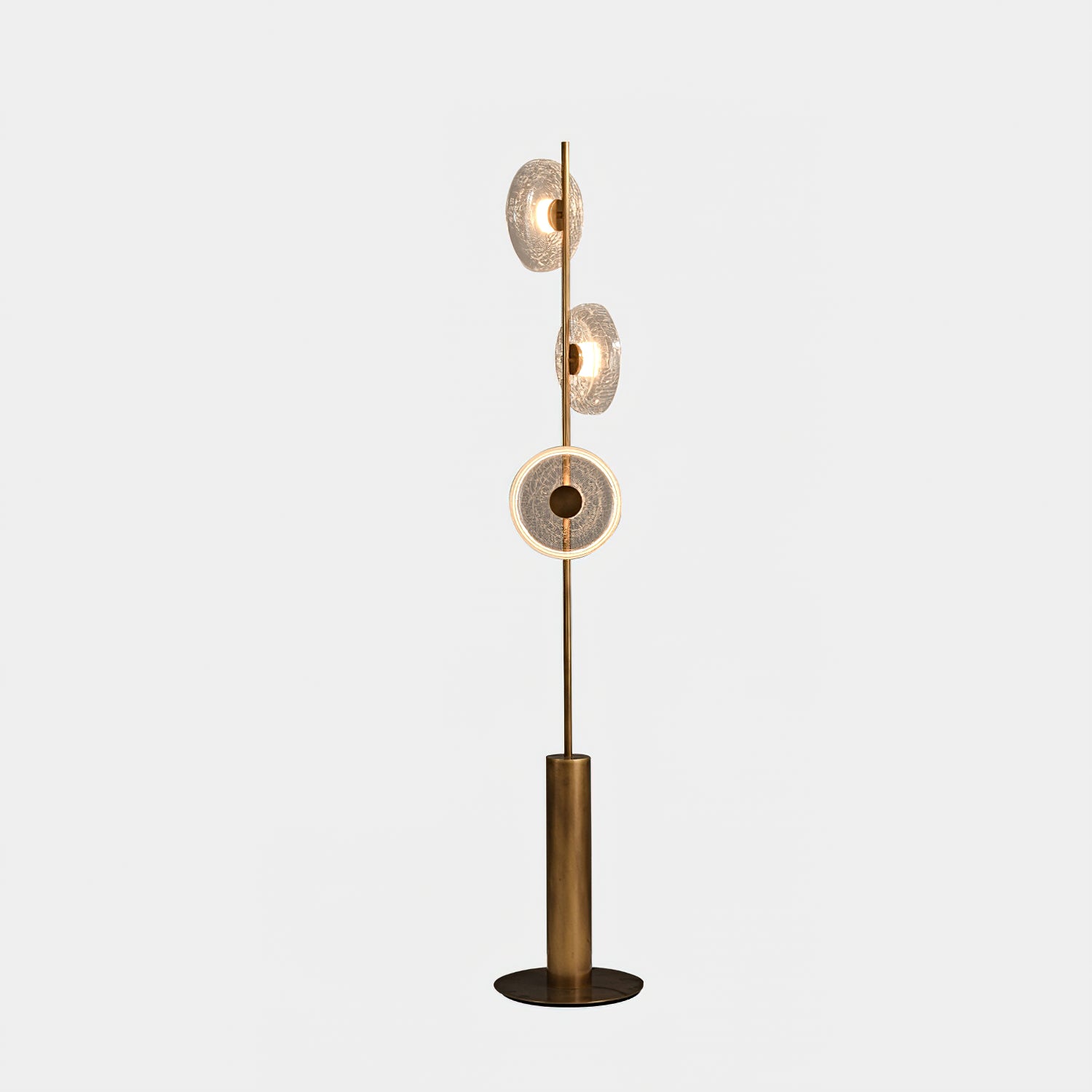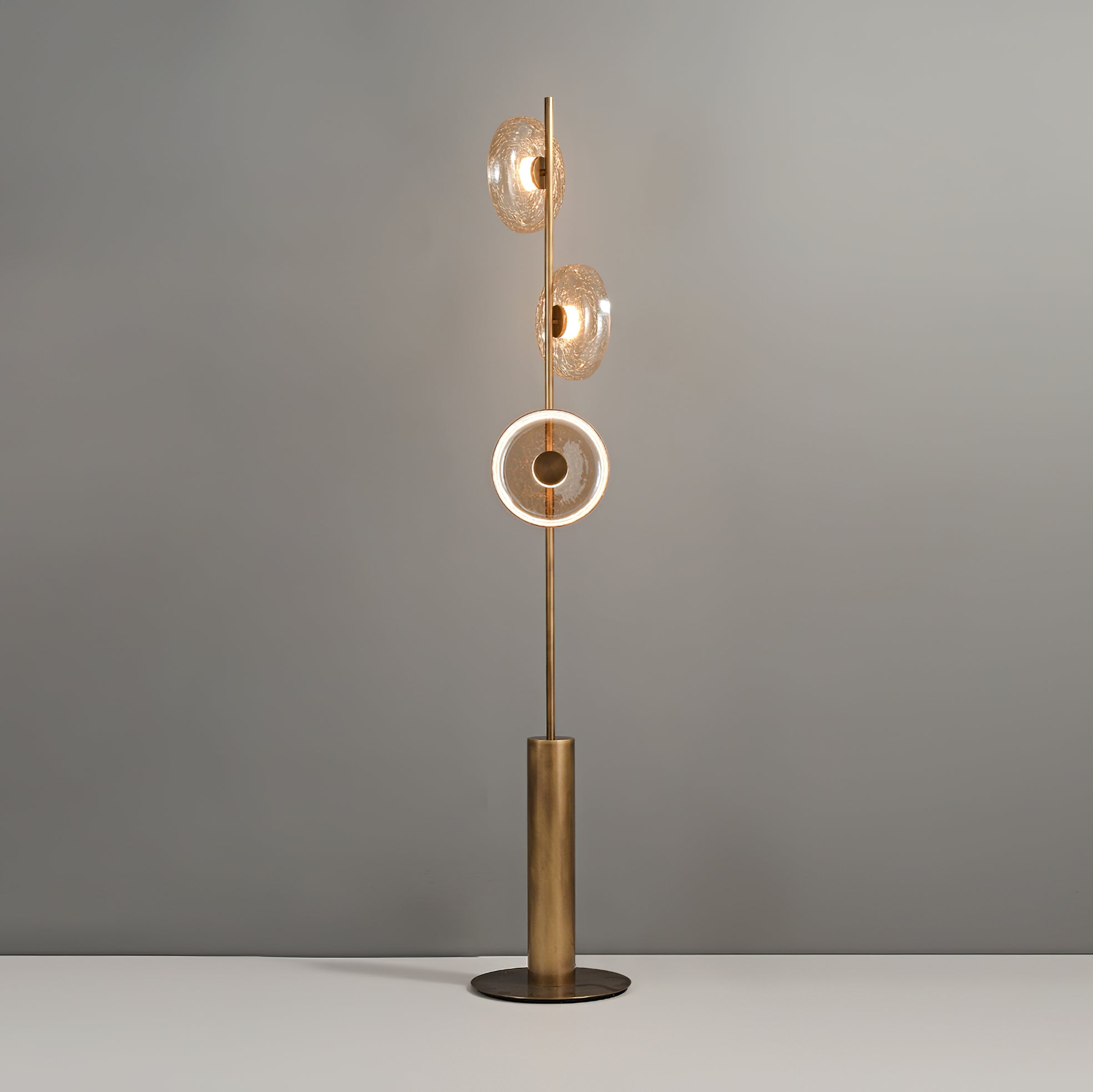 Introducing the Glacier Crackle Floor Lamp. This elegant lamp boasts a cracked glass lampshade that refracts light, creating a mesmerizing display. The textured brushed body adds a delicate touch to your home decor. With adjustable lighting levels, experience the enchantment of light and shadow interaction.