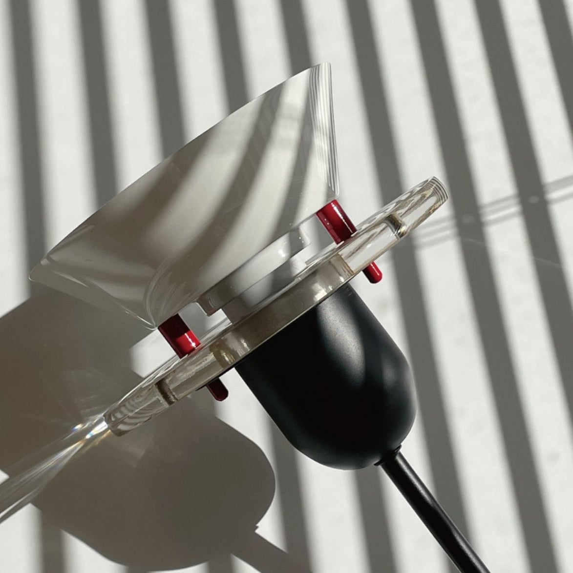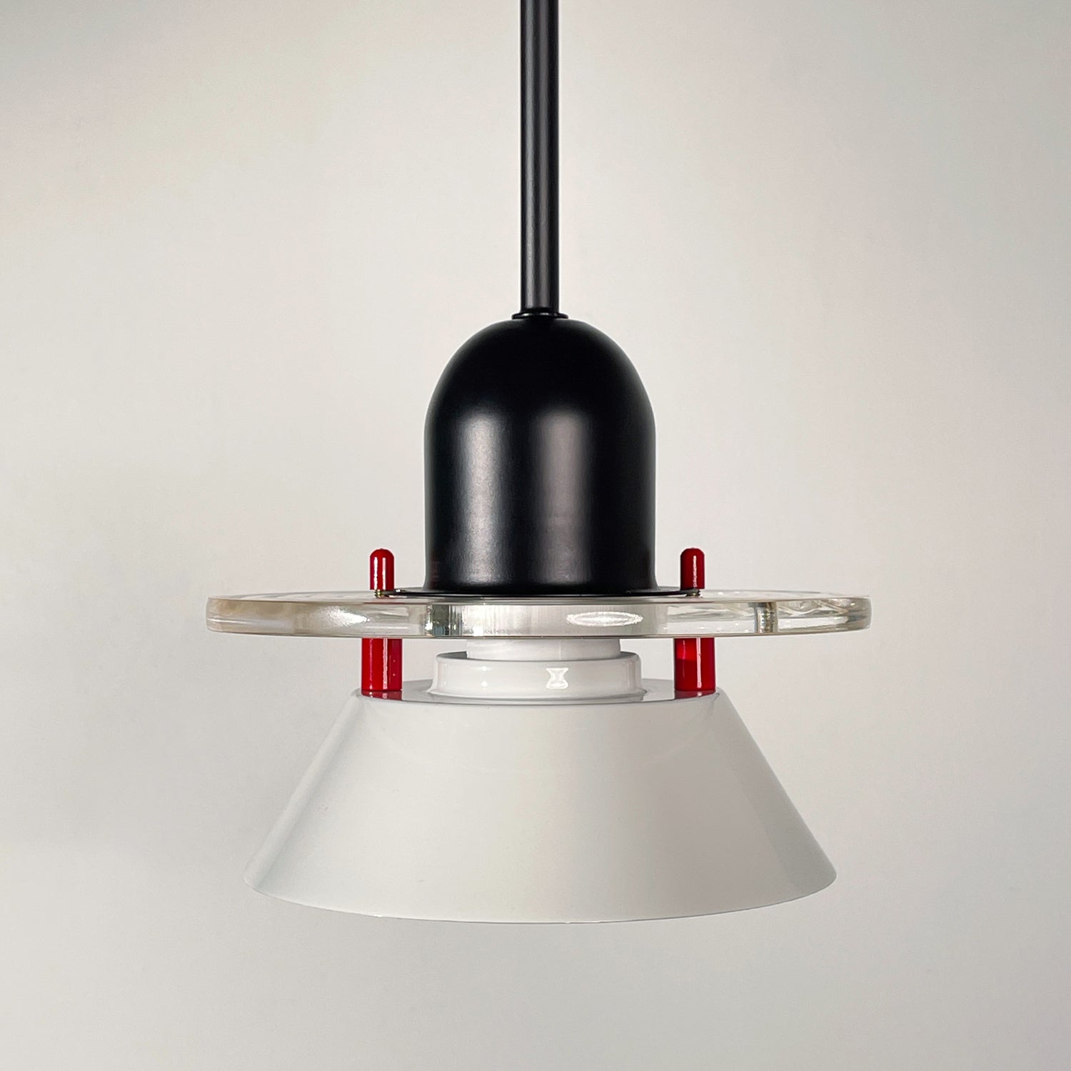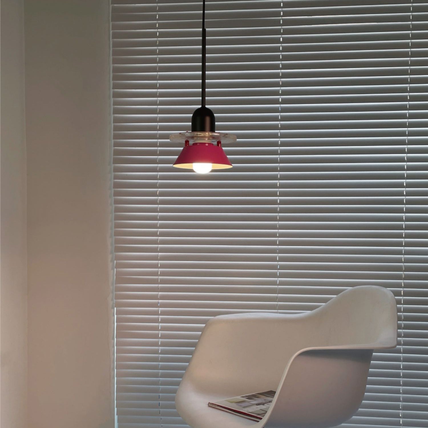 Add sparkle to your space with the Glashütte Pendant Light by Mooijane. This modern and playful design features a striking bell-shaped shade with contrasting red trim and clear glass ring to add a pop of colour to any room. With a simple black base and flexible mounting options, this pendant light easily combines playfulness with sophistication.