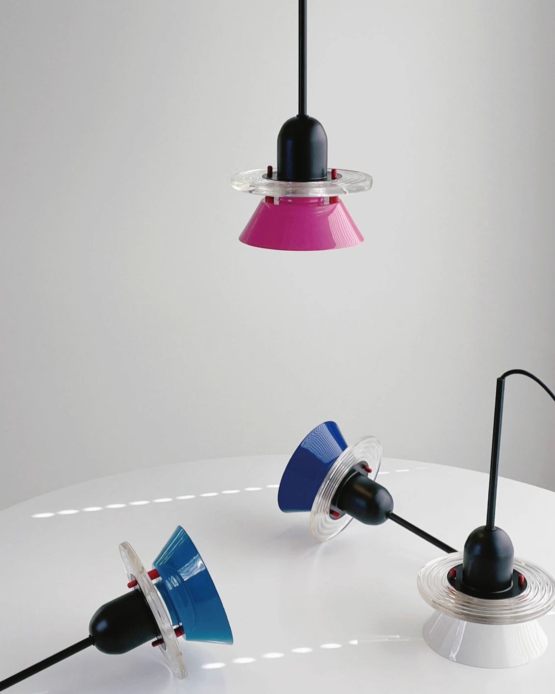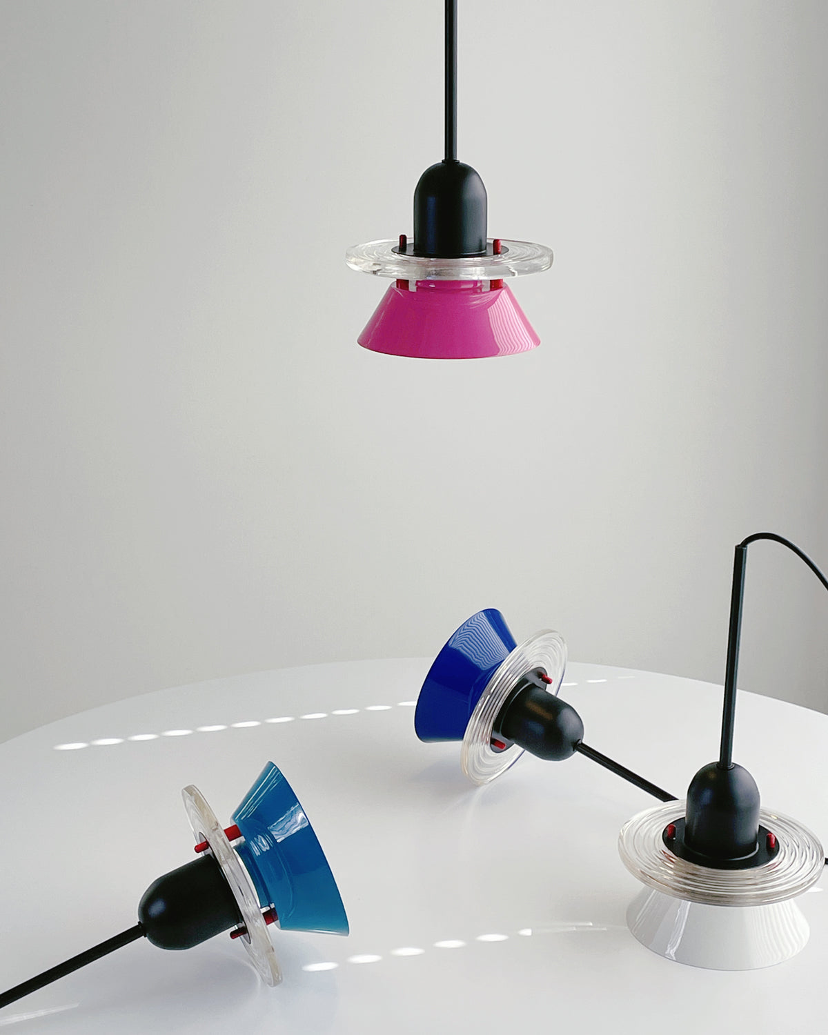 - Lampshade: Blue, White, Klein Blue, Rose Red.