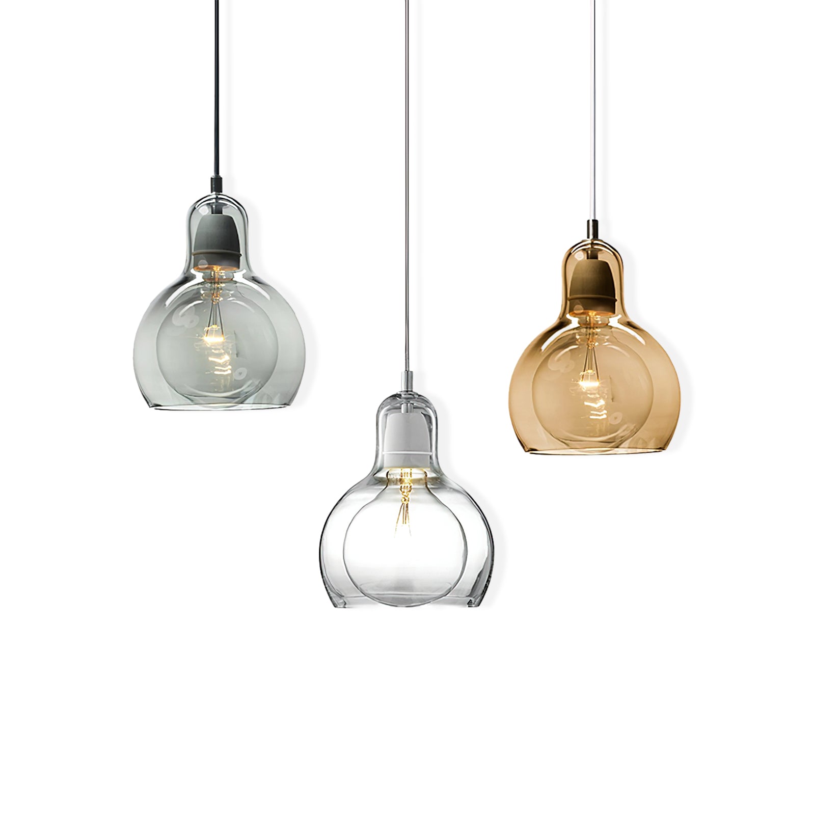 Experience lighting of unparalleled sophistication with the Glass Gourd Pendant Lamp. Designed with a classic bulb and gourd motif, the lamp is transformed with a blown glass process that creates perfectly smooth curves and complements the exposed bulb filament. Crafted with Nordic traditional hand blown glass industrial technology, the lamp casts a sumptuous, exclusive ambiance.