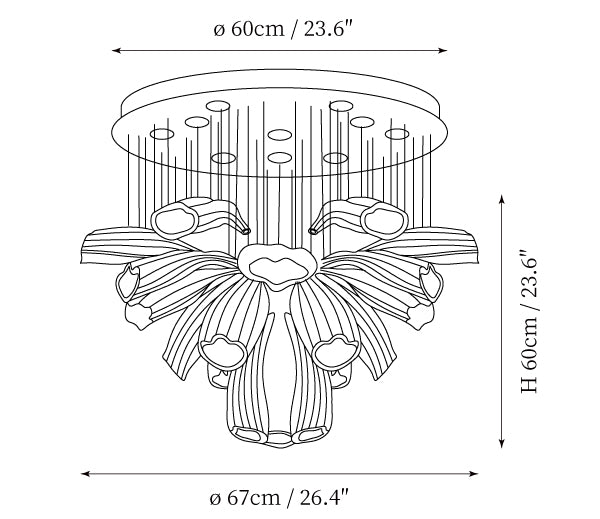 - Size: Dia 67cm x H 60cm / ∅ 26.4″ x H 23.6″ (Light source x 10)