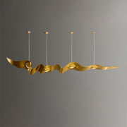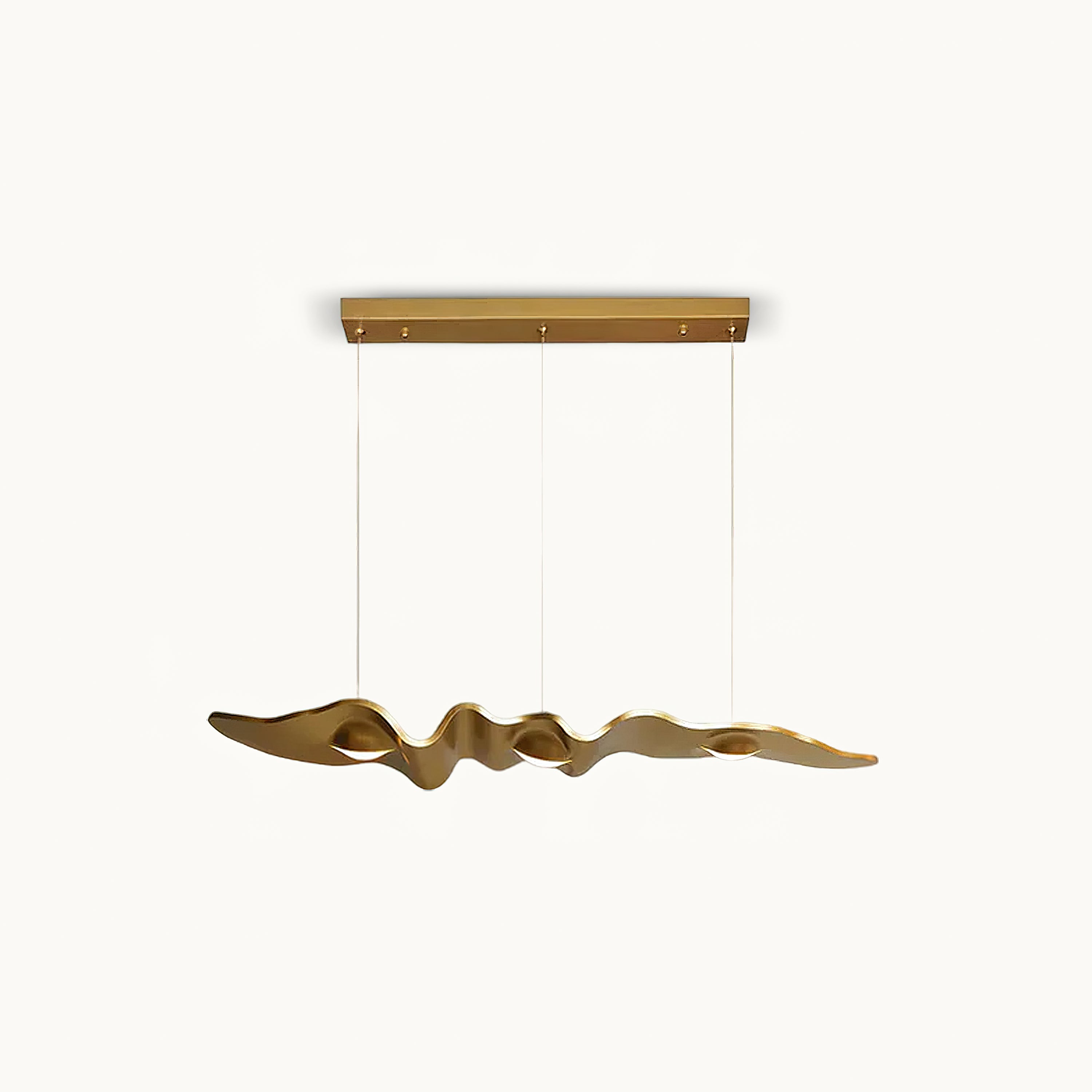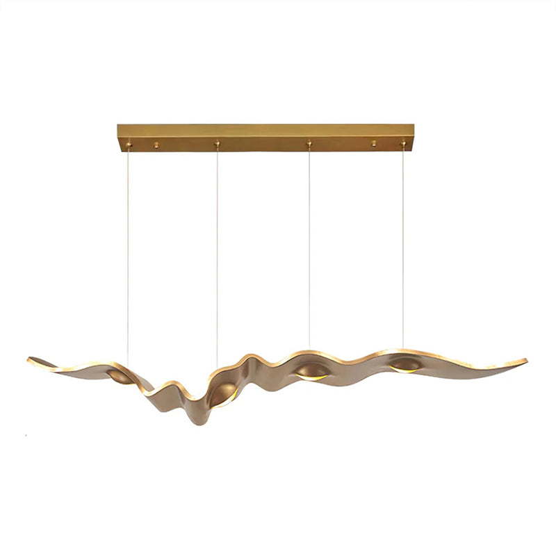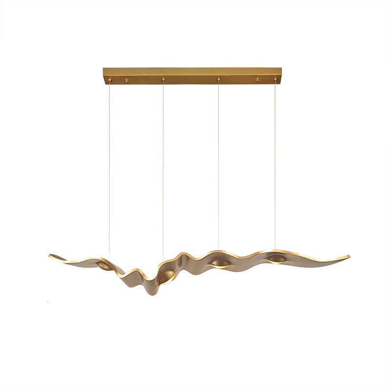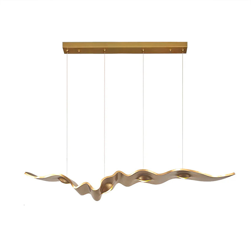 Crafted in aluminum, the Gold Ribbon Chandelier has a unique expression and shape, accentuated by its glowing surface and varying brightness levels. A light source within the body shines through an opening, creating a captivating centerpiece for any room. Elevate your space with this expertly crafted chandelier.