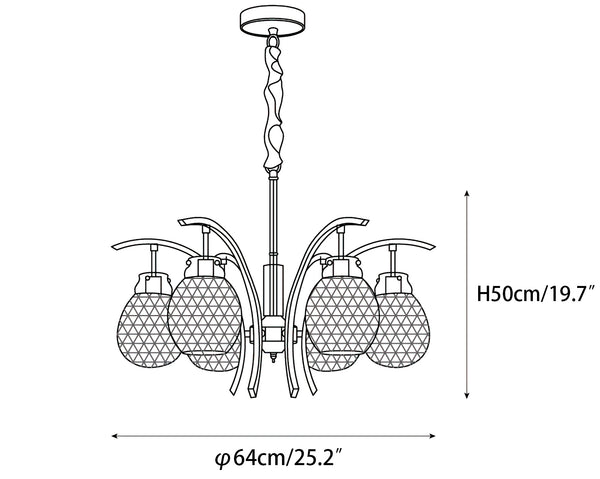 Size: 6 heads Dia 64cm x H 50cm / ∅ 25.2″ x H 19.7″