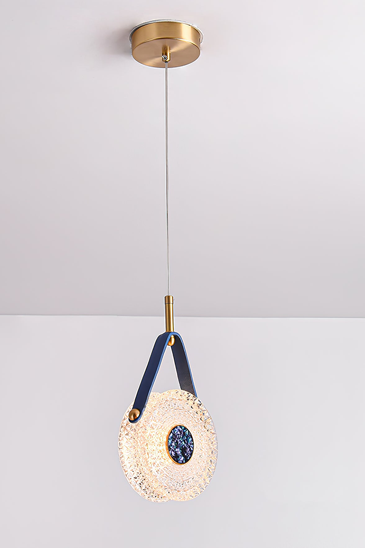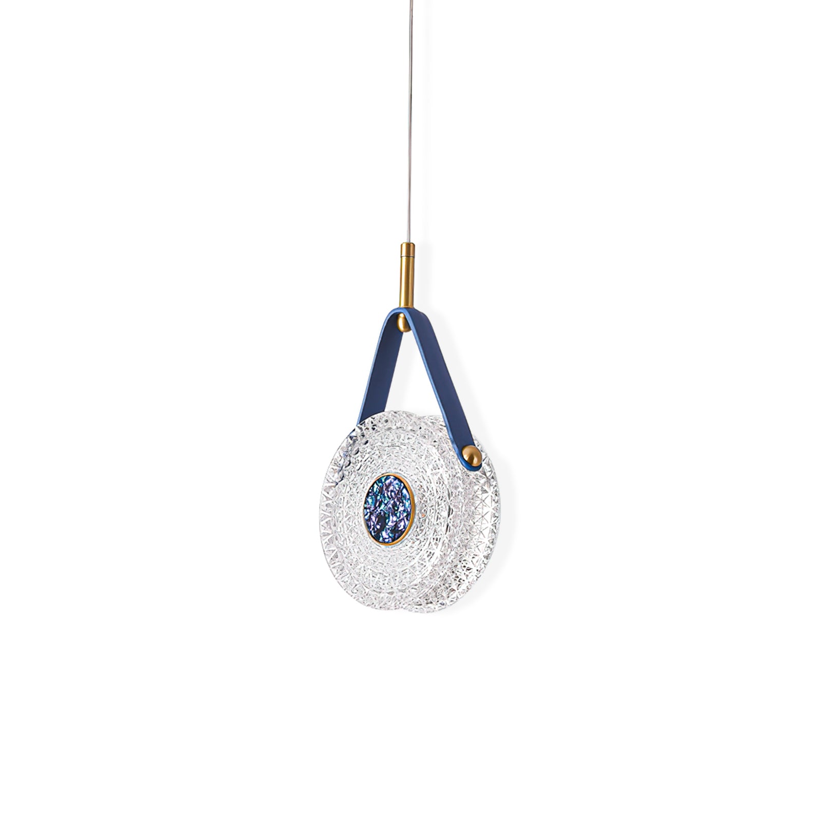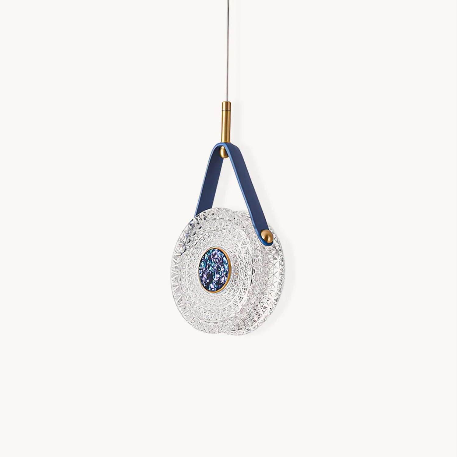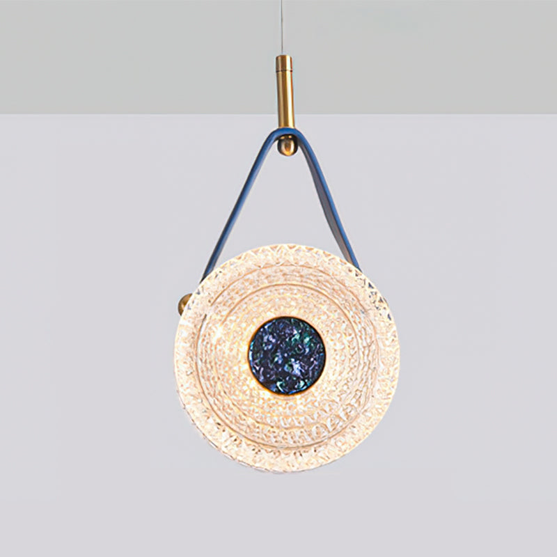 The Gong Pendant Light is a timeless design piece. Crafted with a brass frame and leather accents, it features a transparent bubble acrylic lampshade that delicately diffuses warm, romantic light. Inspired by the timeless elegance of a gong, this pendant light adds a touch of sophisticated style to any space.