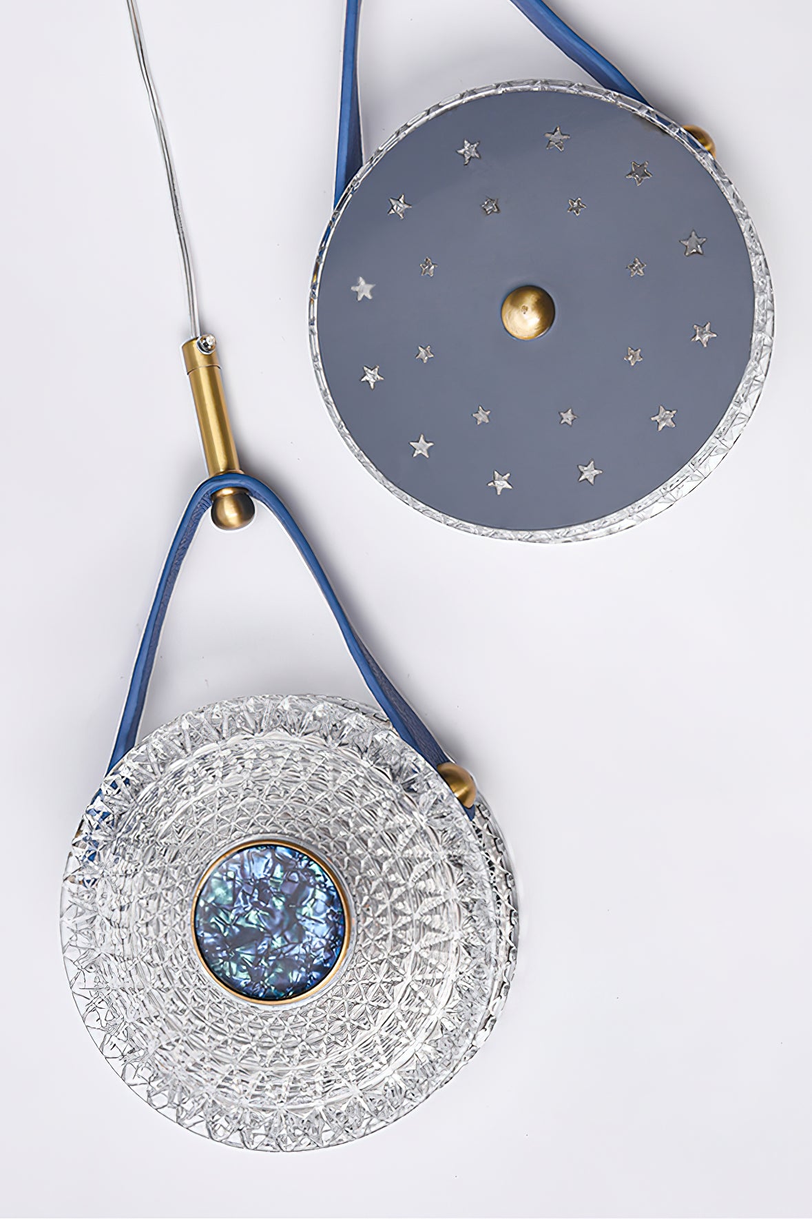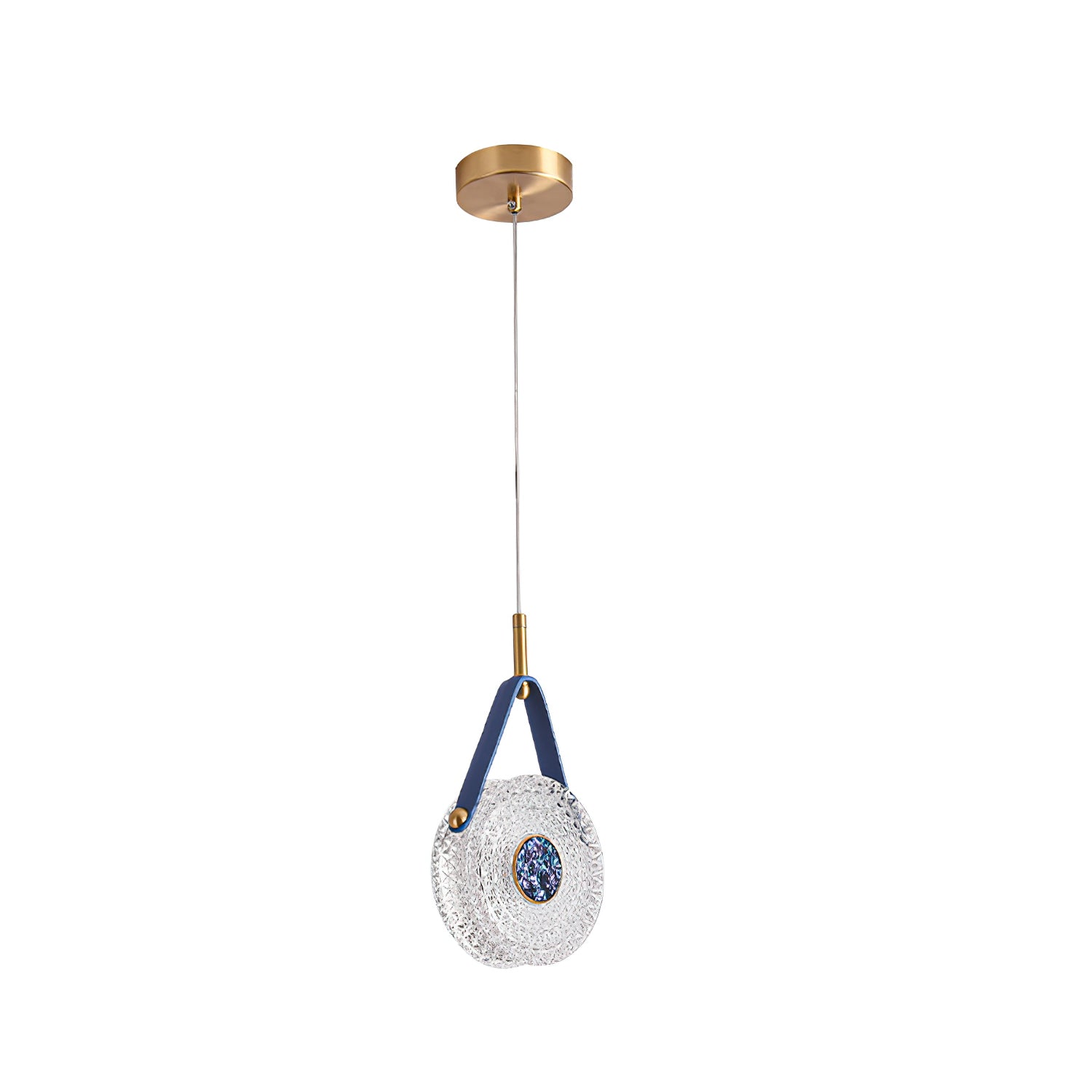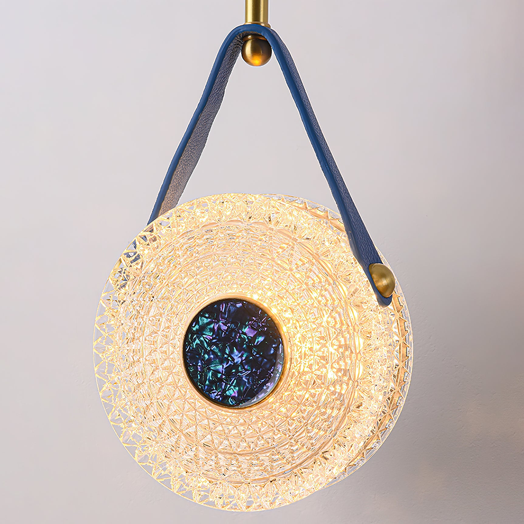 The Gong Pendant Light is a timeless design piece. Crafted with a brass frame and leather accents, it features a transparent bubble acrylic lampshade that delicately diffuses warm, romantic light. Inspired by the timeless elegance of a gong, this pendant light adds a touch of sophisticated style to any space.