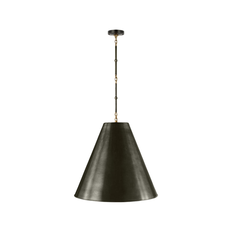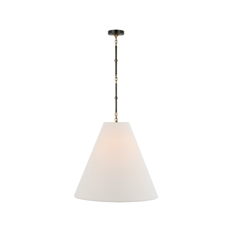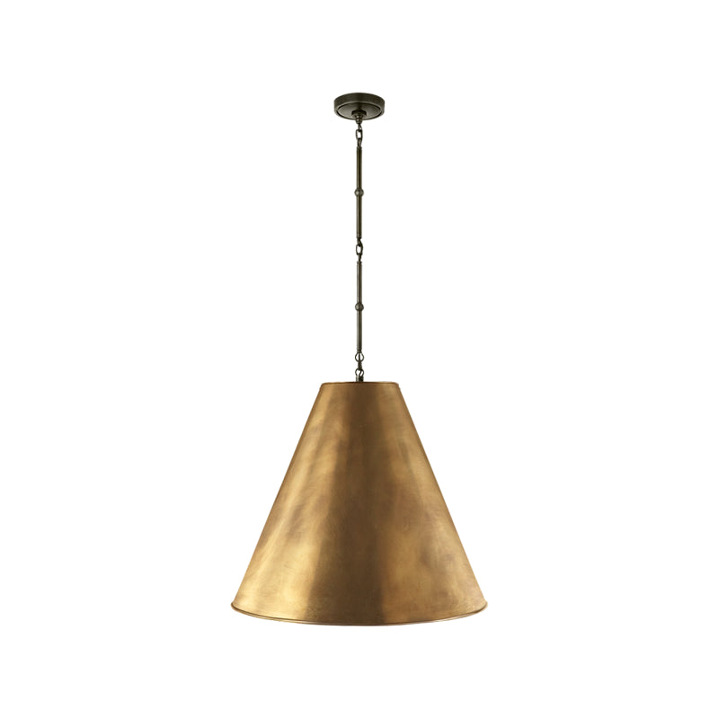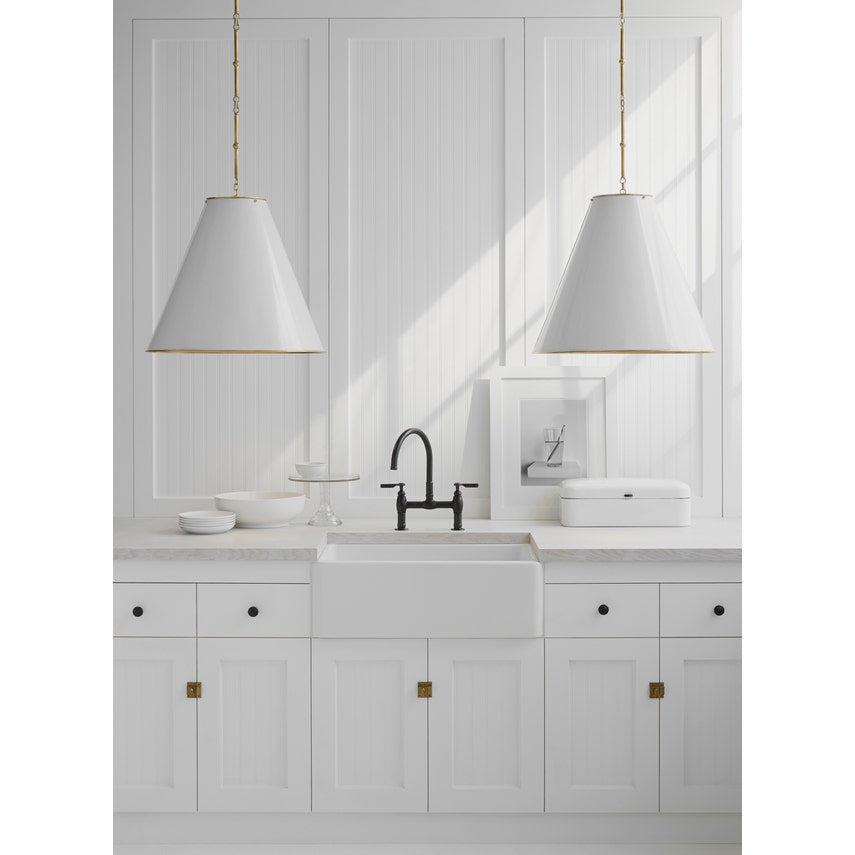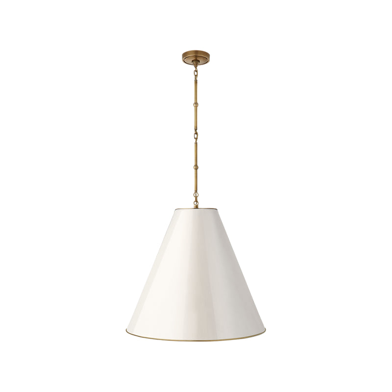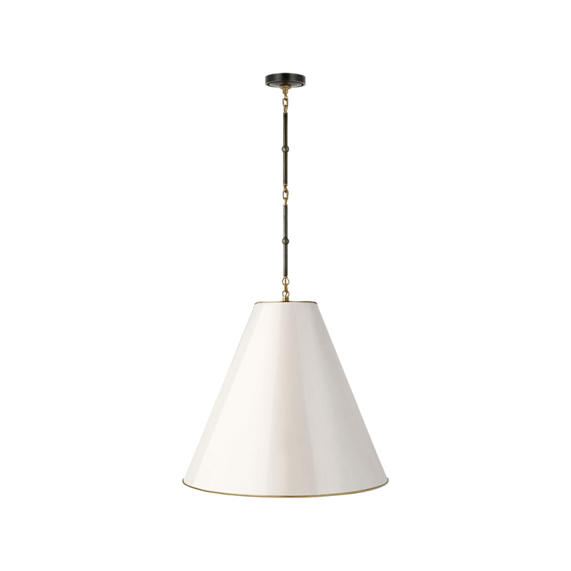 Elevate your space with the Goodman Small Pendant Light. Its tapered shade and refined details exude classic elegance. Designed by Thomas O'Brien, the combination of metal and paper adds a modern touch. Attached to an elegant long chain, this lamp adds a touch of class to any interior space.