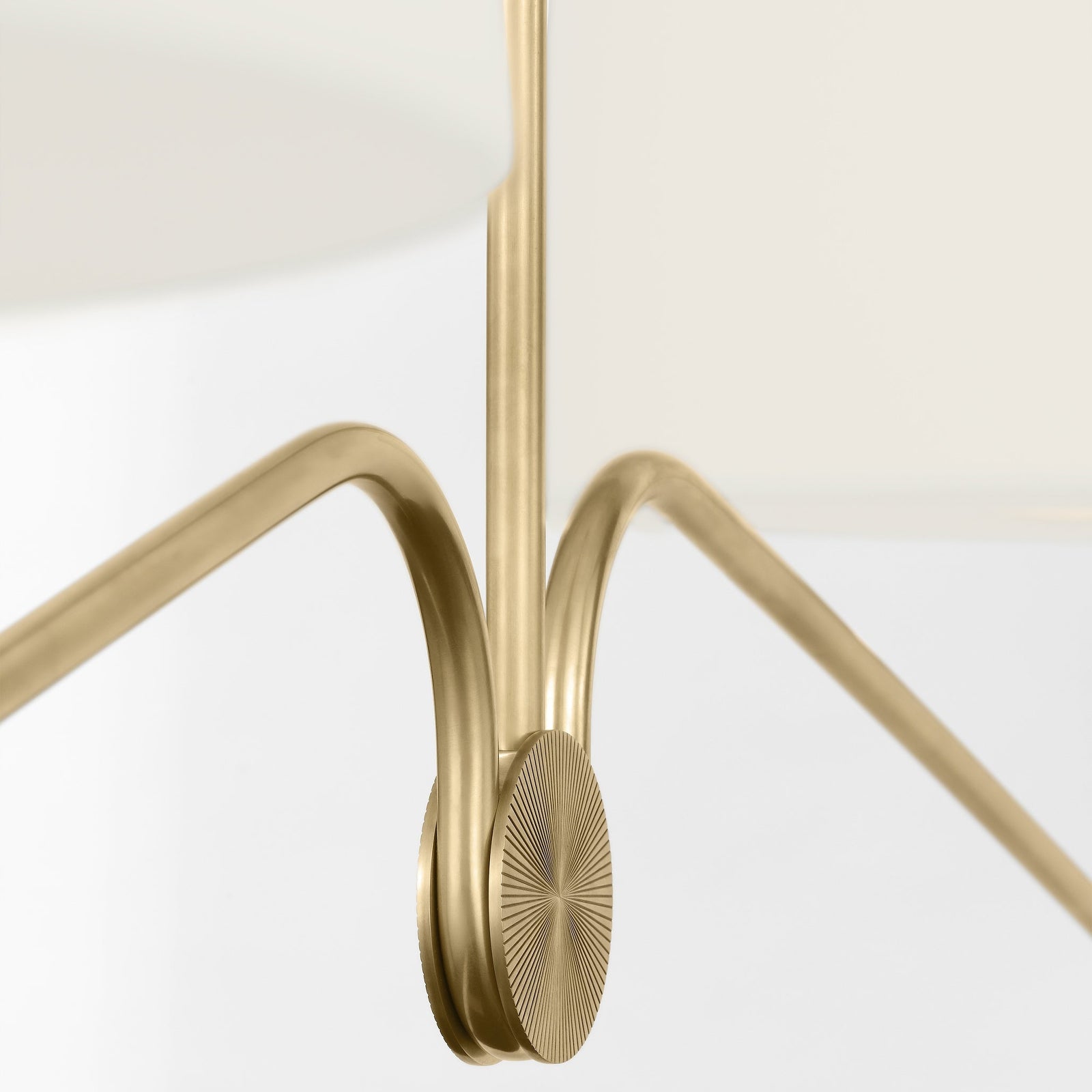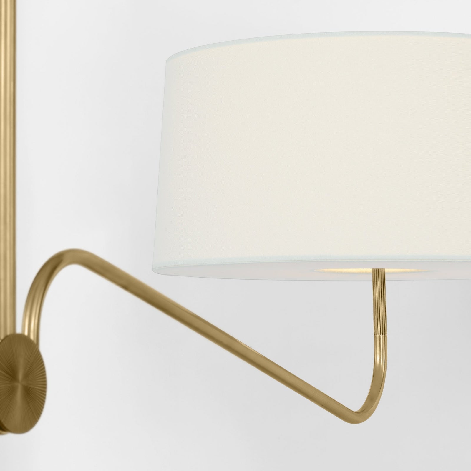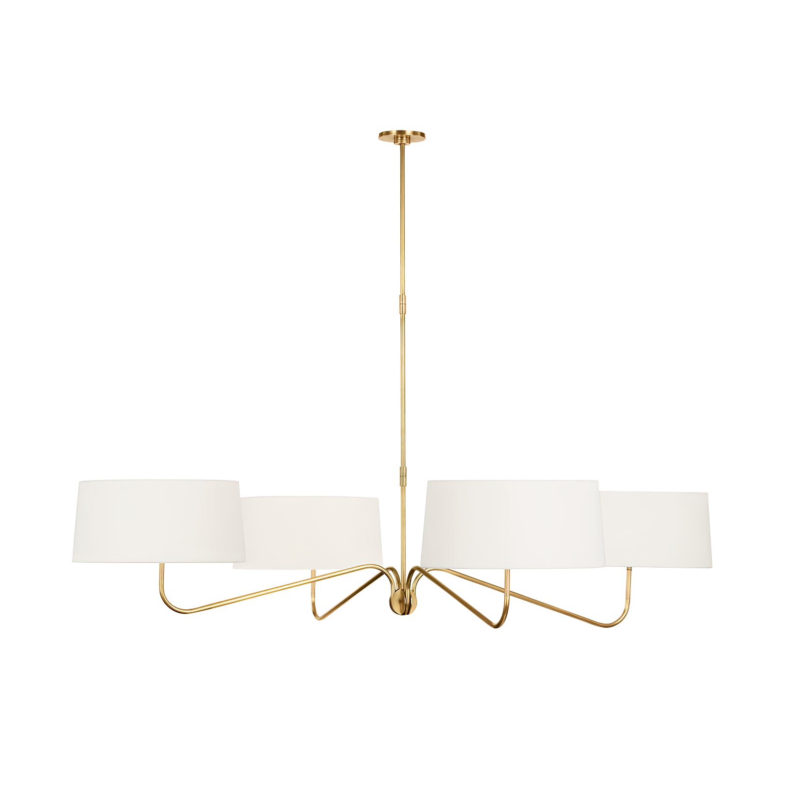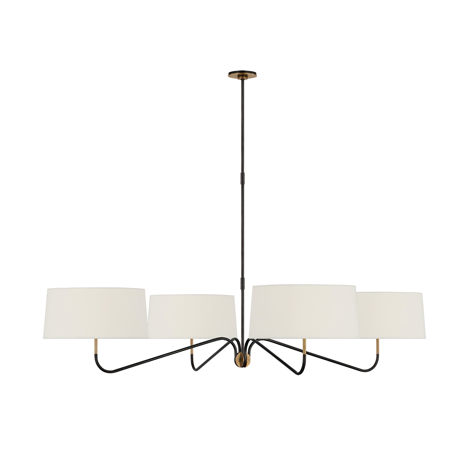 Achieve a sleek and refined aesthetic with the Grande Two-Arm Chandelier. Its minimalist metal frame, balanced by the white linen shades, offers an effortless blend of form and function. Perfect for highlighting dining areas or entryways, this chandelier embodies timeless elegance with its clean lines and modern appeal.