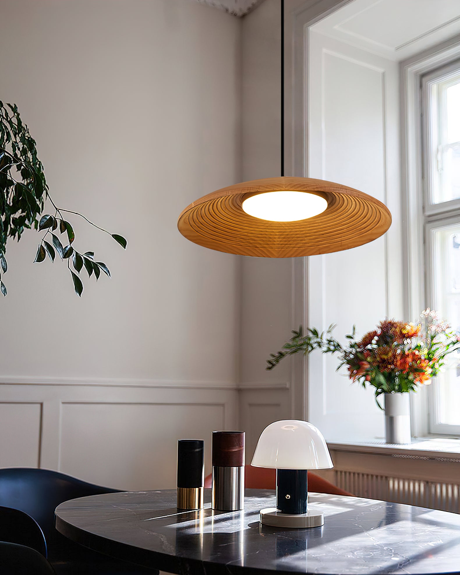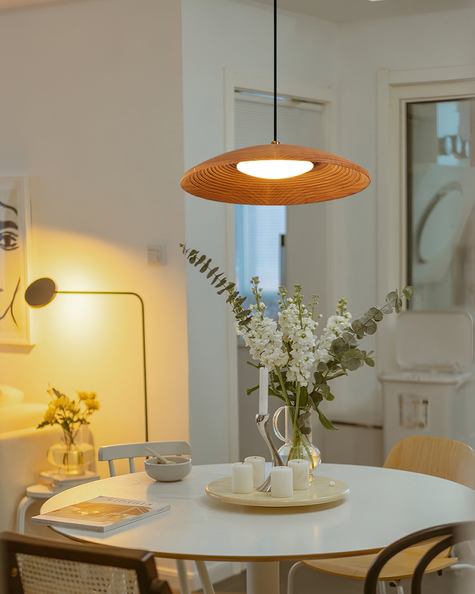 This Growth Ring Pendant Lamp offers a unique combination of luxurious materials. The lampshade is crafted with highly transparent acrylic and ash, creating an elegant yet inviting atmosphere. Featuring uniformly lit light transmission, the acrylic material is highly temperature and chemical resistant. The ash lampshade provides a smooth texture with strong hardness and corrosion protection, creating a homely warmth. Illuminate any room in sophistication and style.