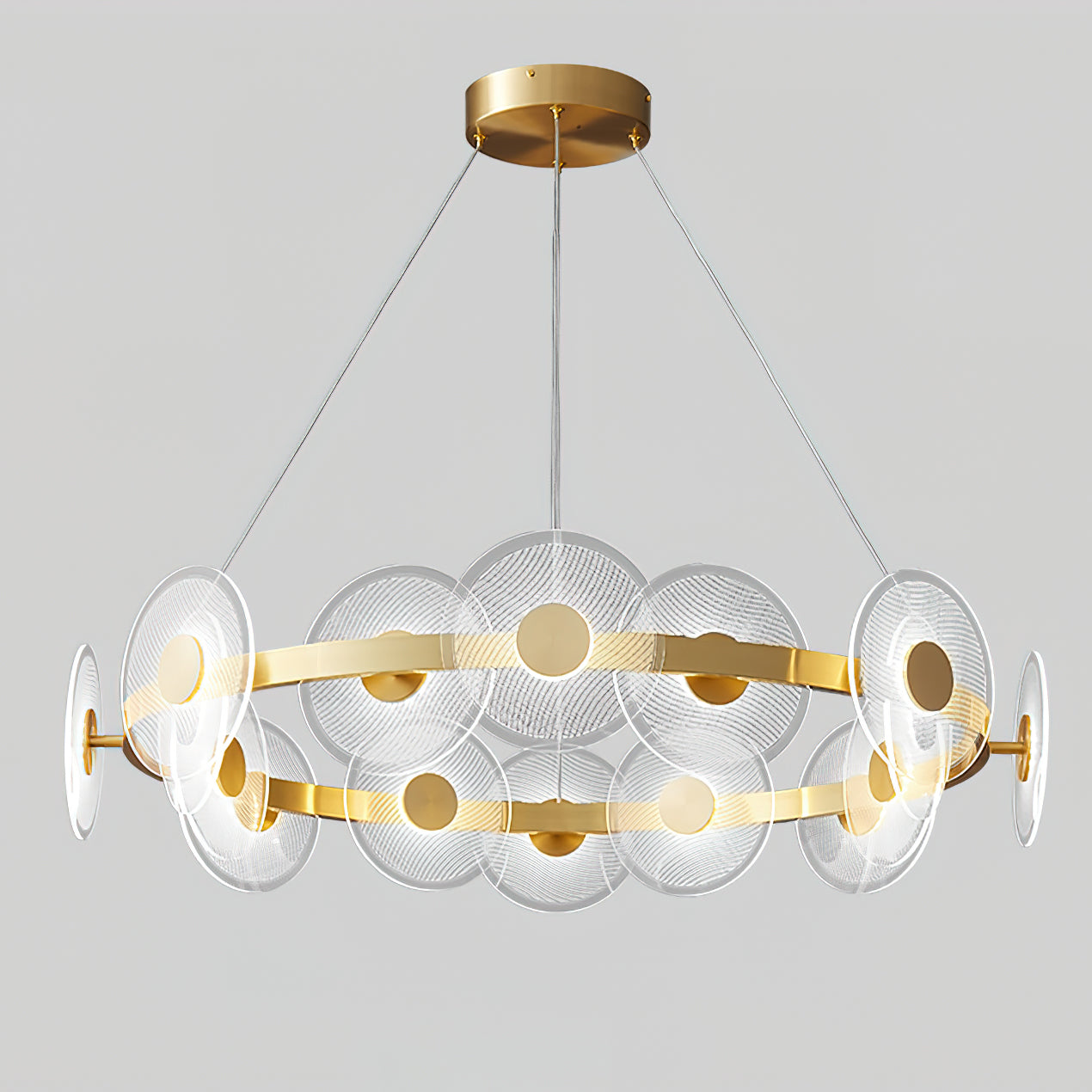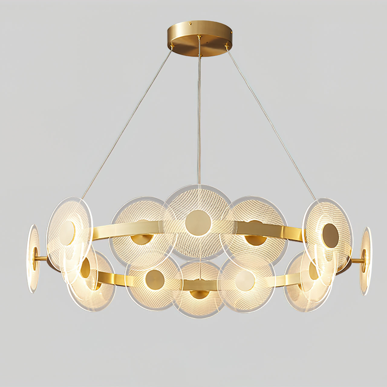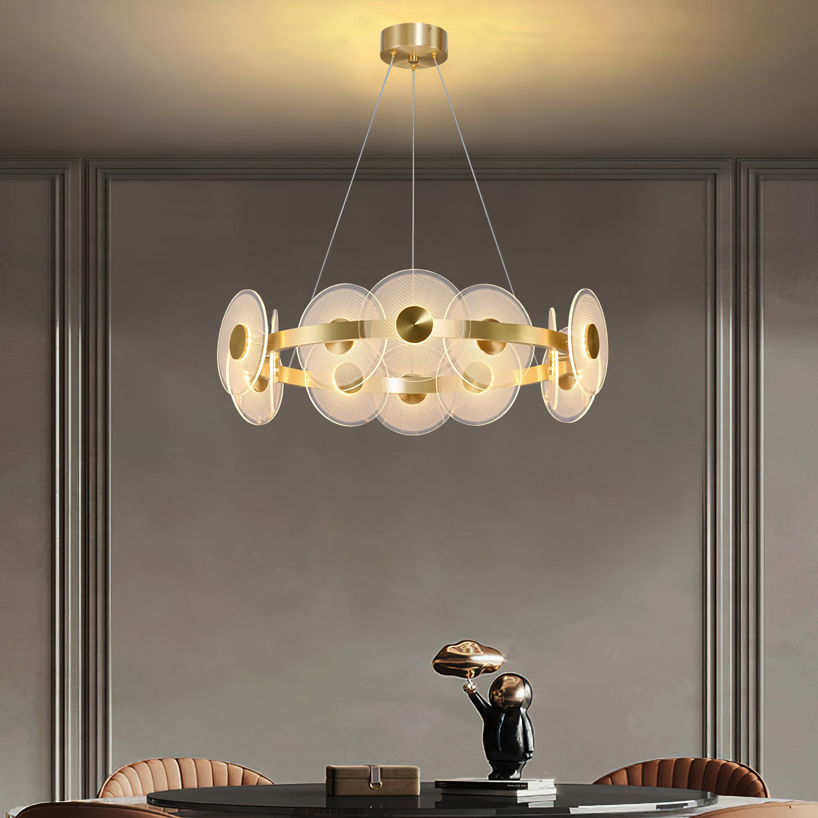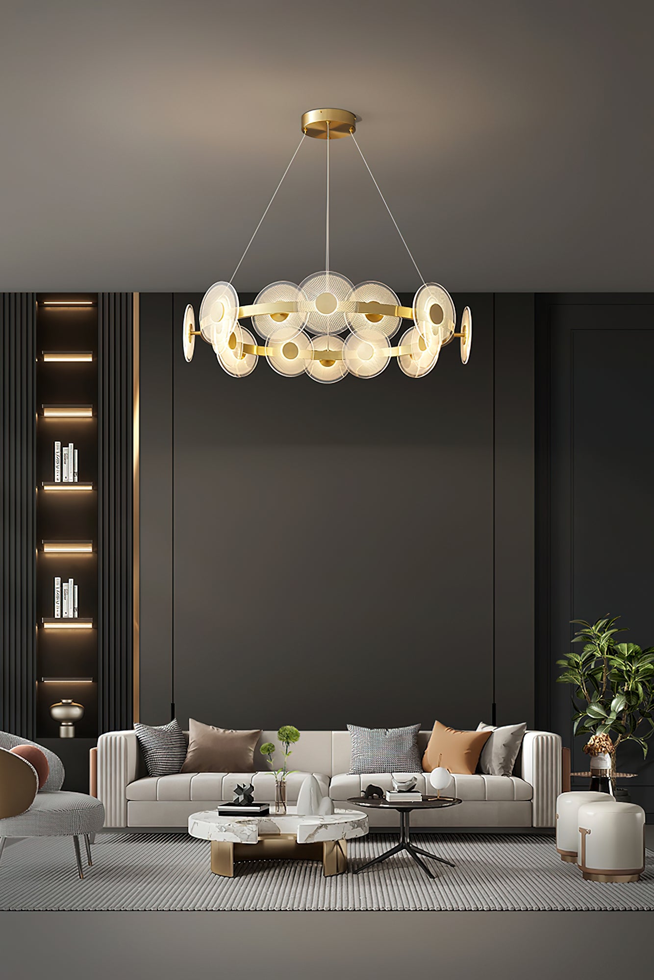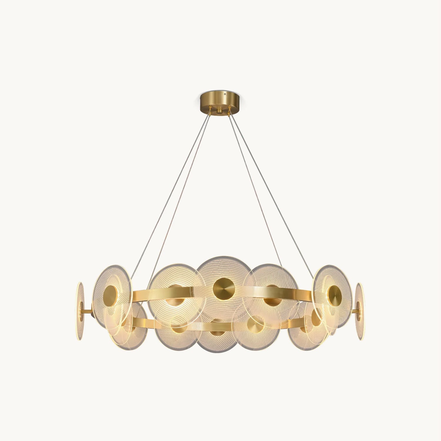 The Halo Chandelier illuminates any space with its stunning design. Its brass lamp body is brushed and suspended, making it corrosion-resistant and rust-free for long-lasting performance. The high-quality acrylic lampshade provides a clear, soft light, while the all-copper ceiling panel ensures a stable and reliable design. Choose from three colors and adjust the brightness and color temperature with each.
