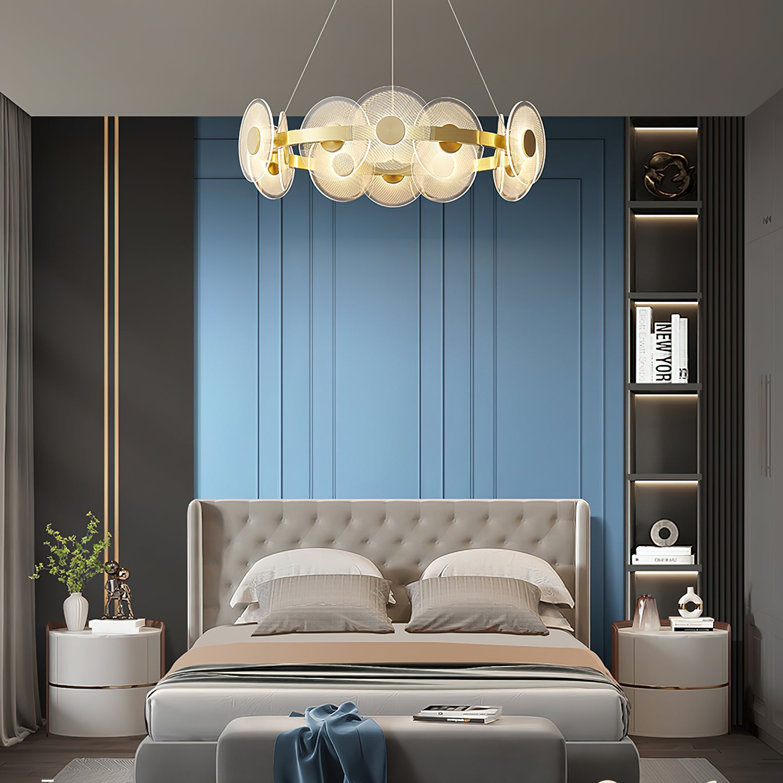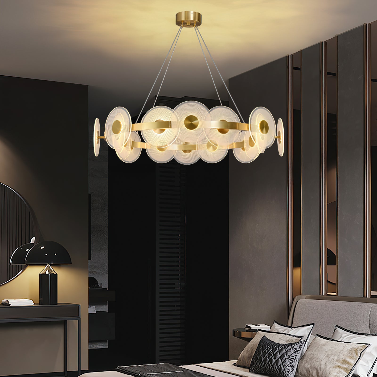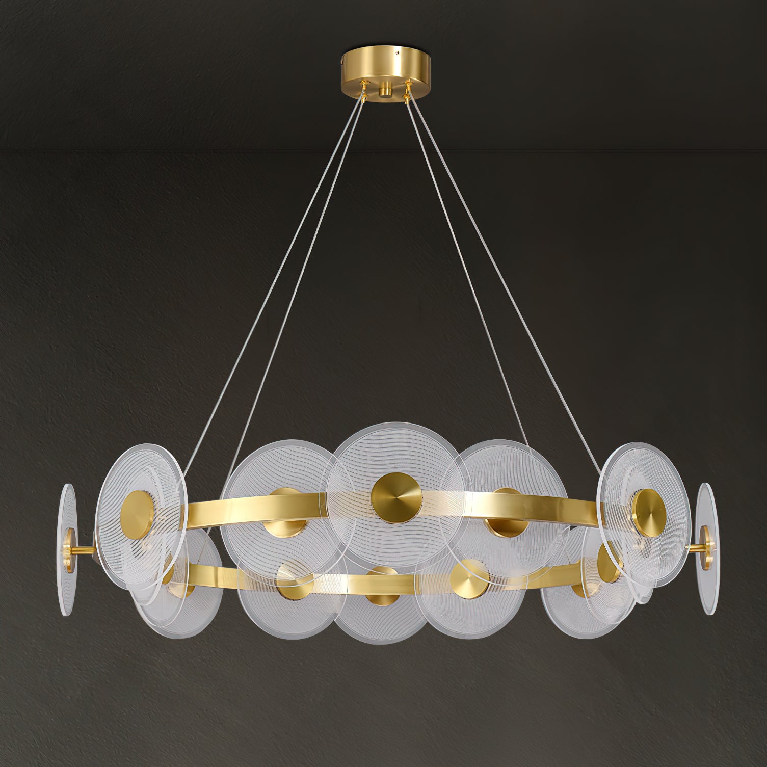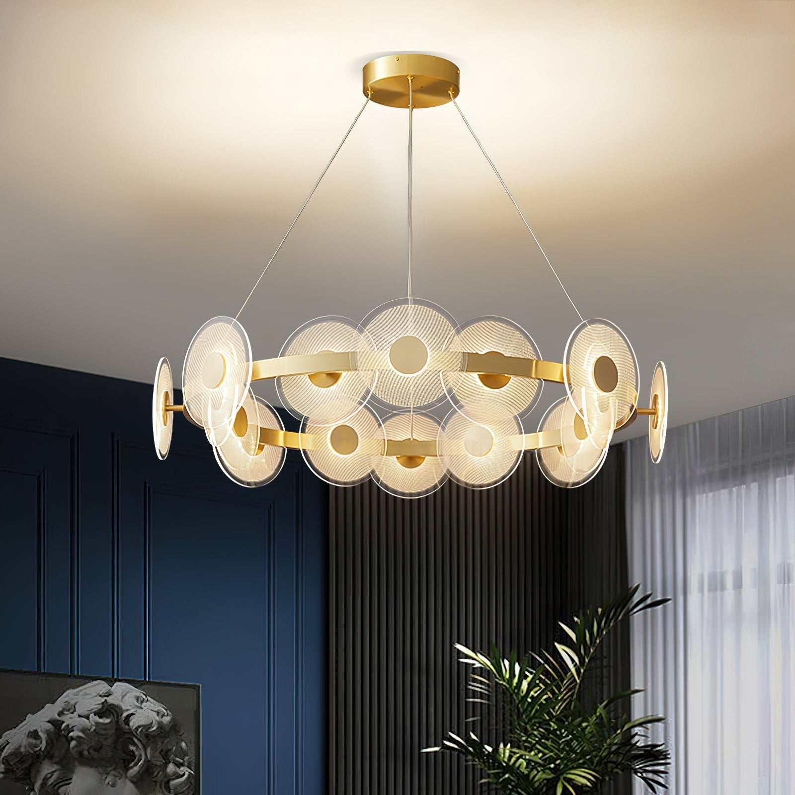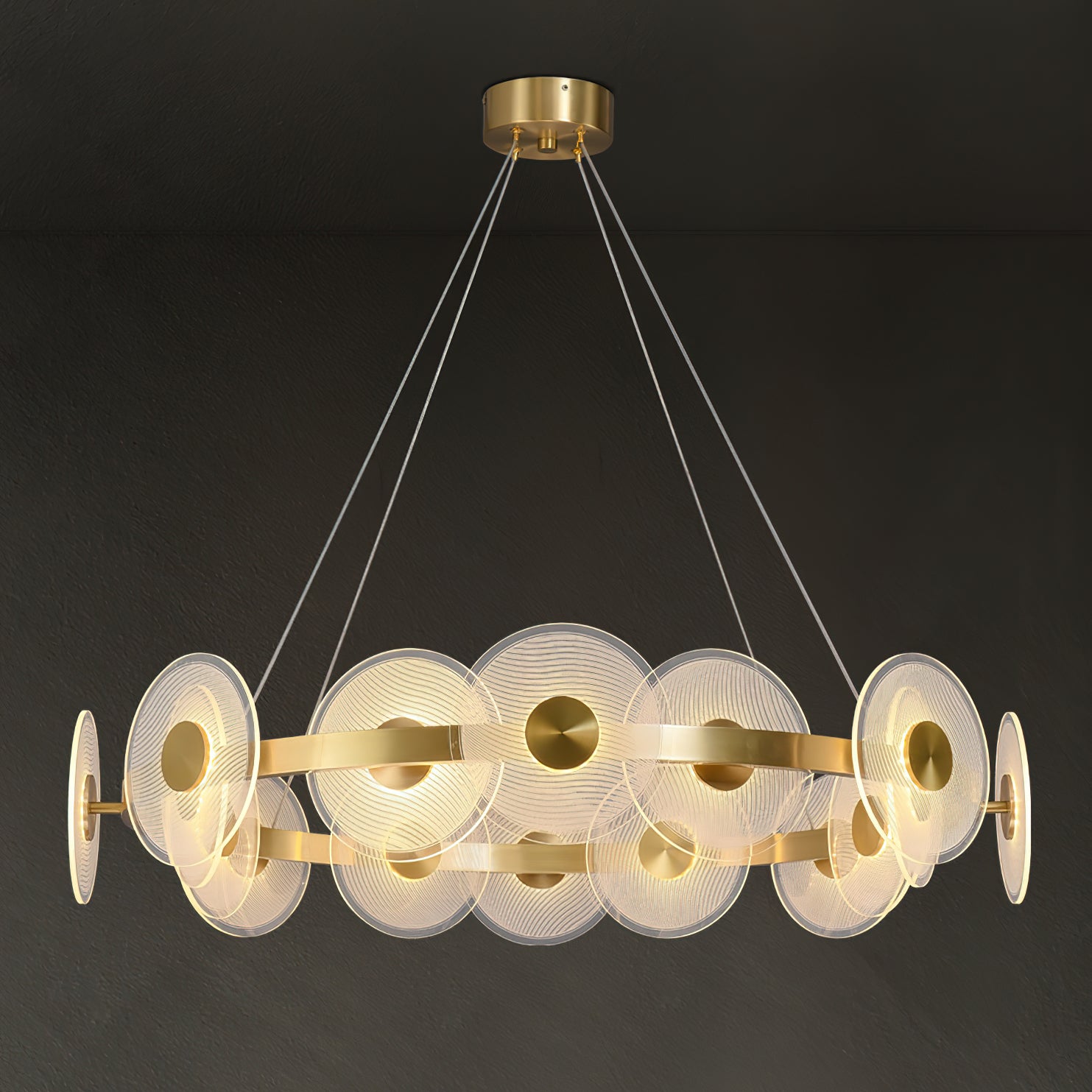 The Halo Chandelier illuminates any space with its stunning design. Its brass lamp body is brushed and suspended, making it corrosion-resistant and rust-free for long-lasting performance. The high-quality acrylic lampshade provides a clear, soft light, while the all-copper ceiling panel ensures a stable and reliable design. Choose from three colors and adjust the brightness and color temperature with each.