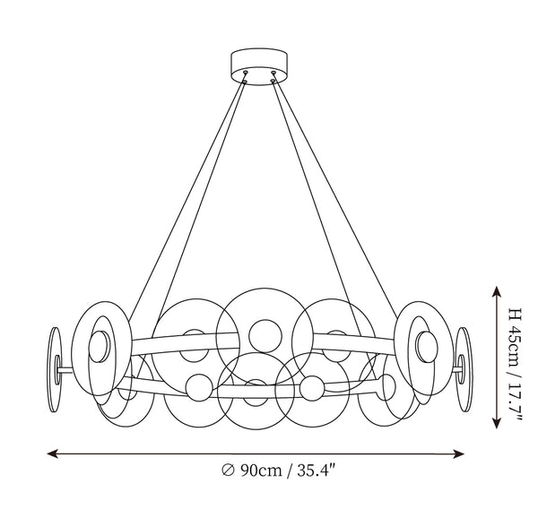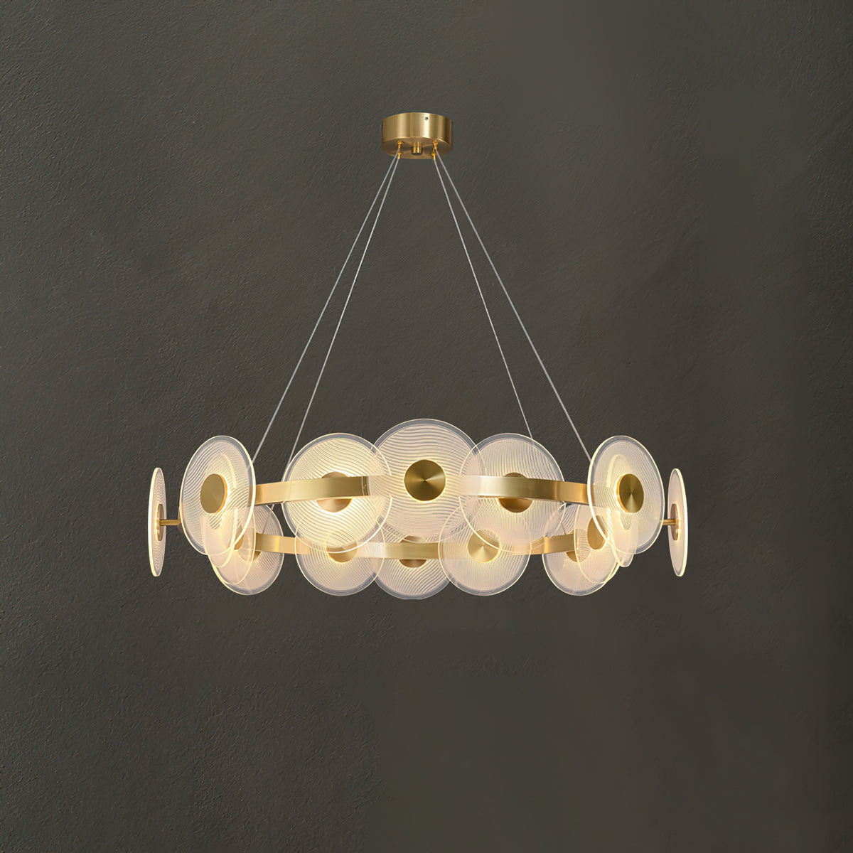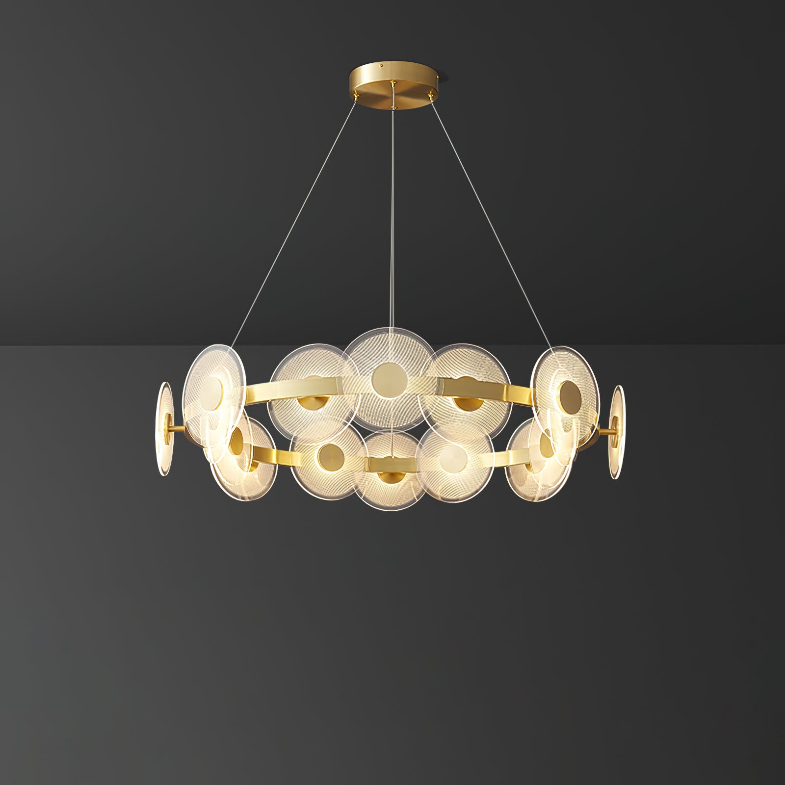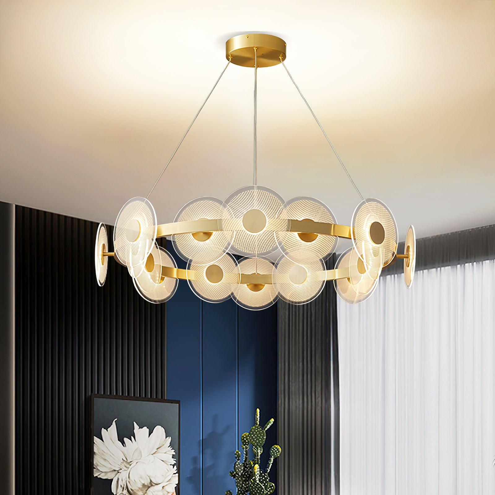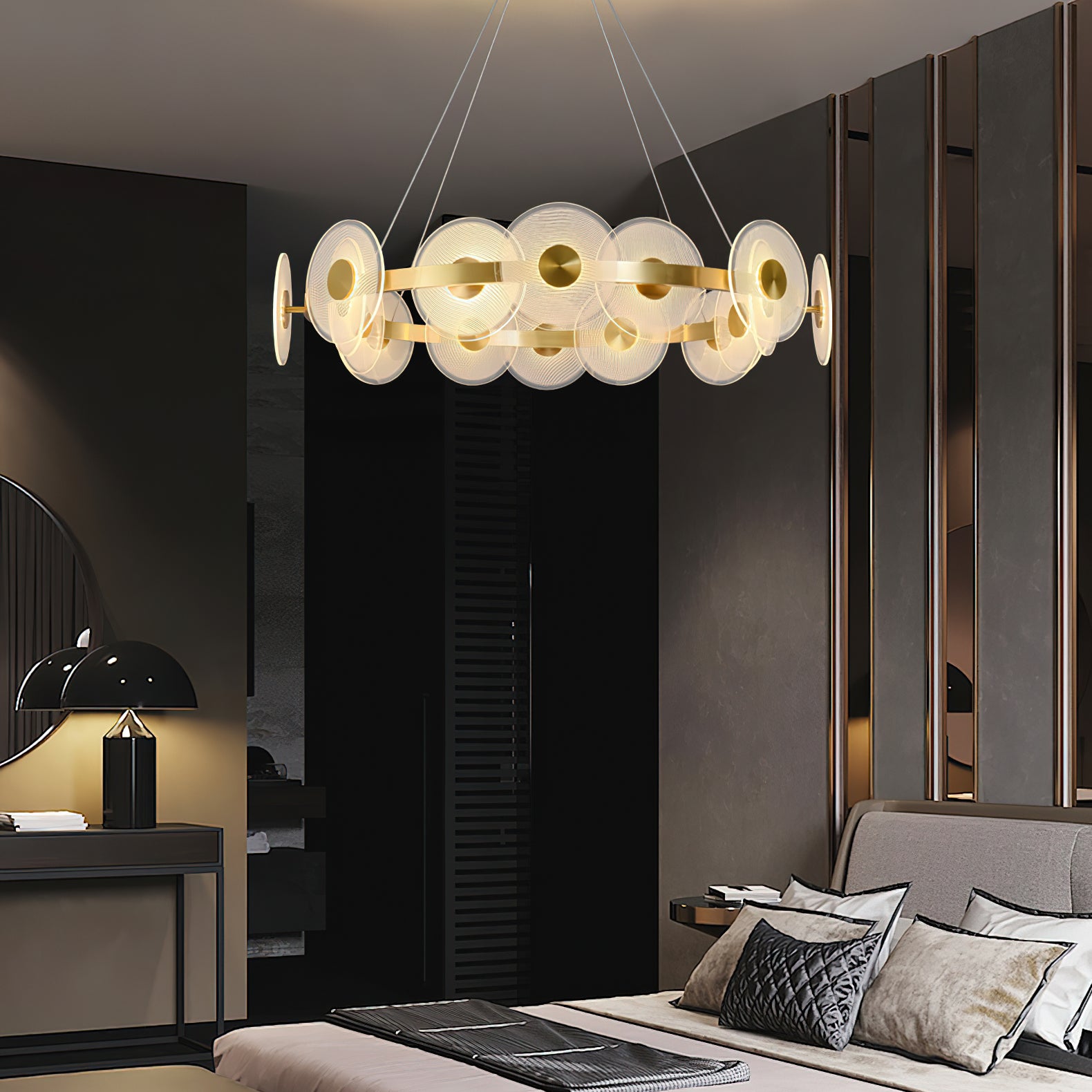 The Halo Chandelier illuminates any space with its stunning design. Its brass lamp body is brushed and suspended, making it corrosion-resistant and rust-free for long-lasting performance. The high-quality acrylic lampshade provides a clear, soft light, while the all-copper ceiling panel ensures a stable and reliable design. Choose from three colors and adjust the brightness and color temperature with each.
