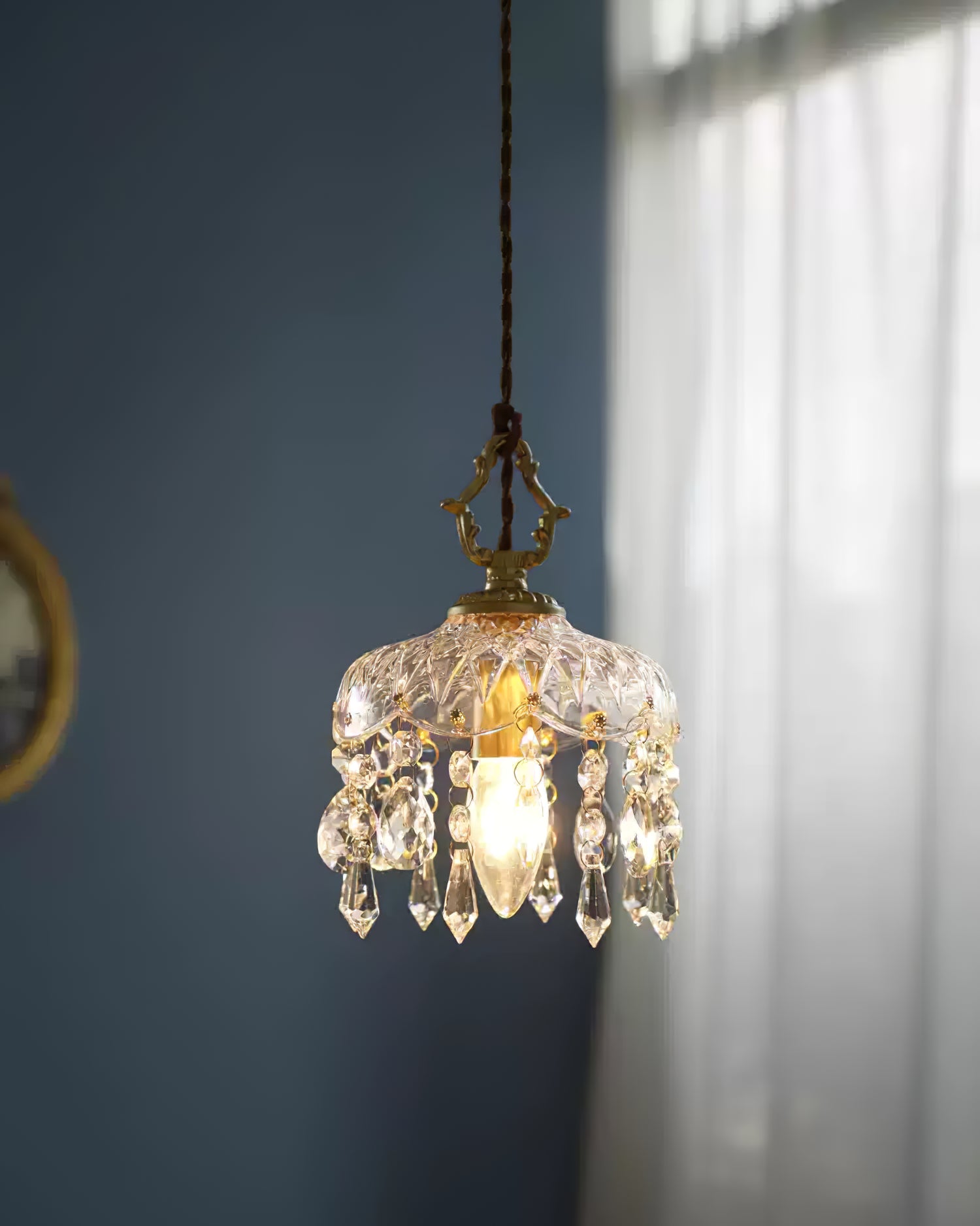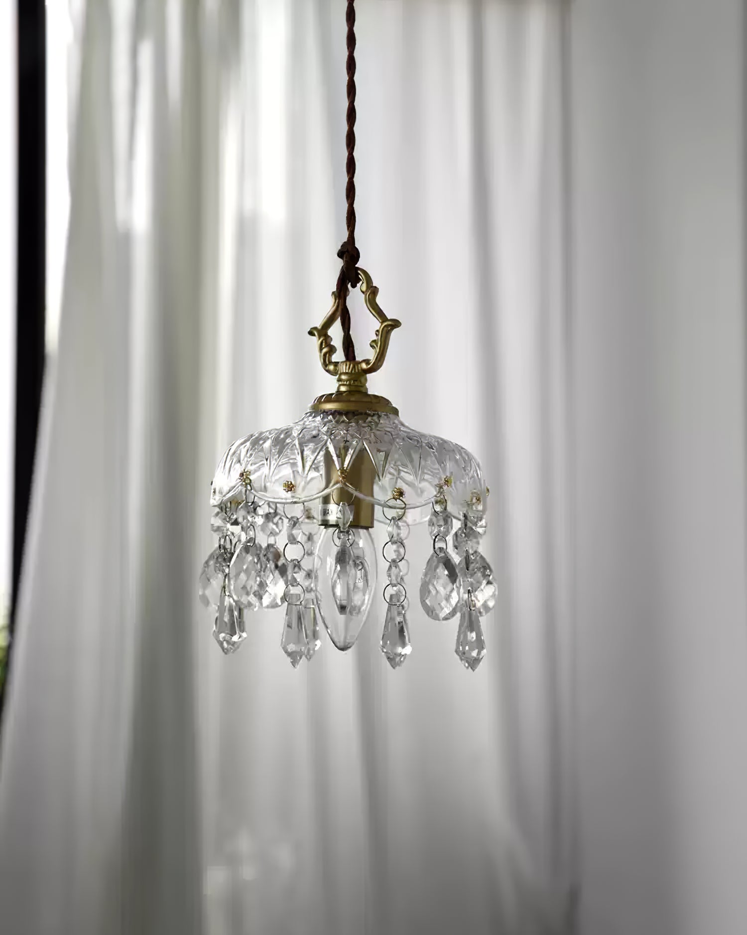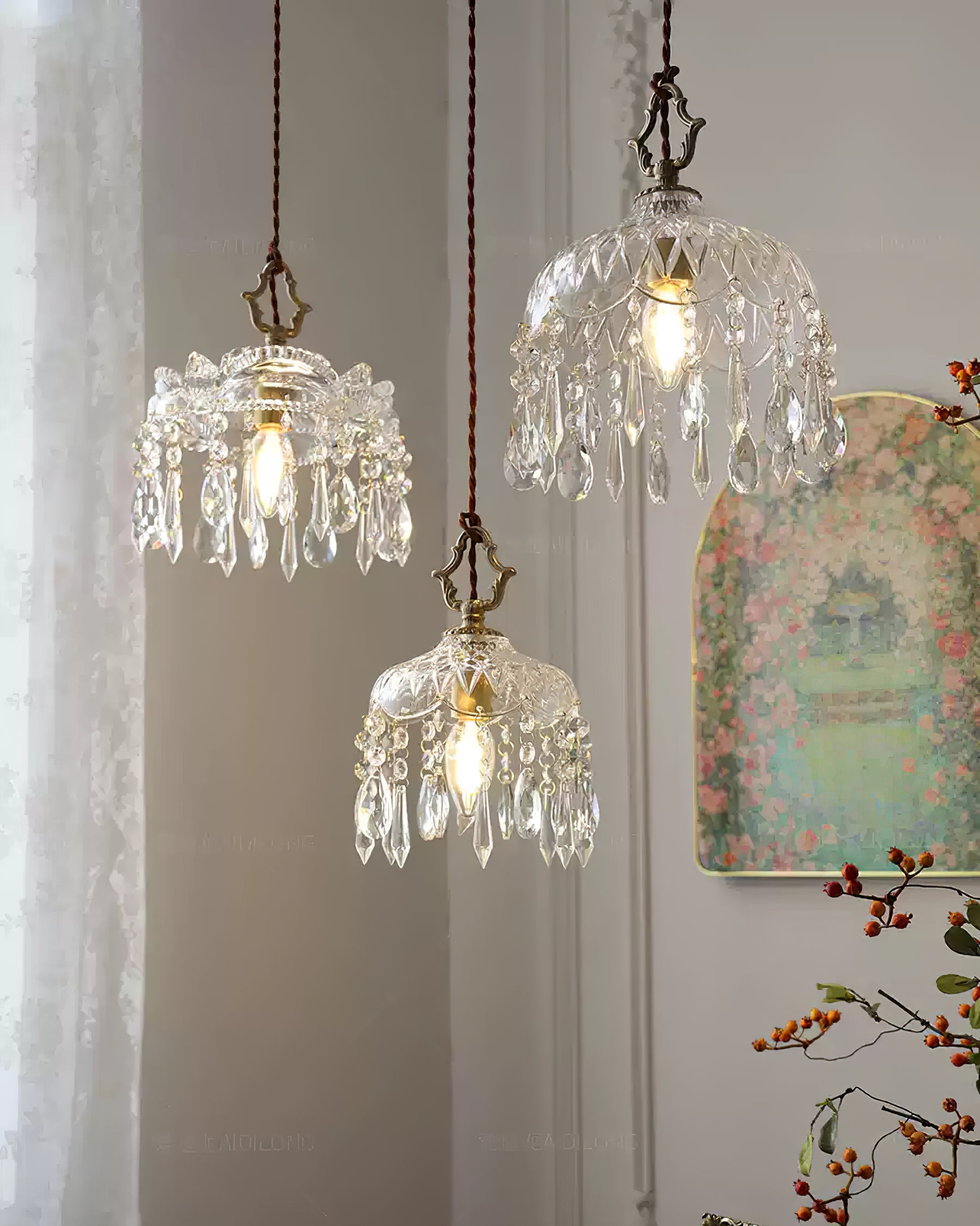 Elevate your home’s ambiance with Liootrlamp's vintage crystal pendant light. This beautifully crafted small chandelier features intricately cut crystals that sparkle with elegance and timeless charm. Its compact design makes it an ideal lighting solution for intimate spaces such as bedrooms, dining rooms, or reading nooks, adding a touch of sophistication to any room. With Liootrlamp, experience the perfect blend of classic beauty and modern functionality, illuminating your space with style and grace.