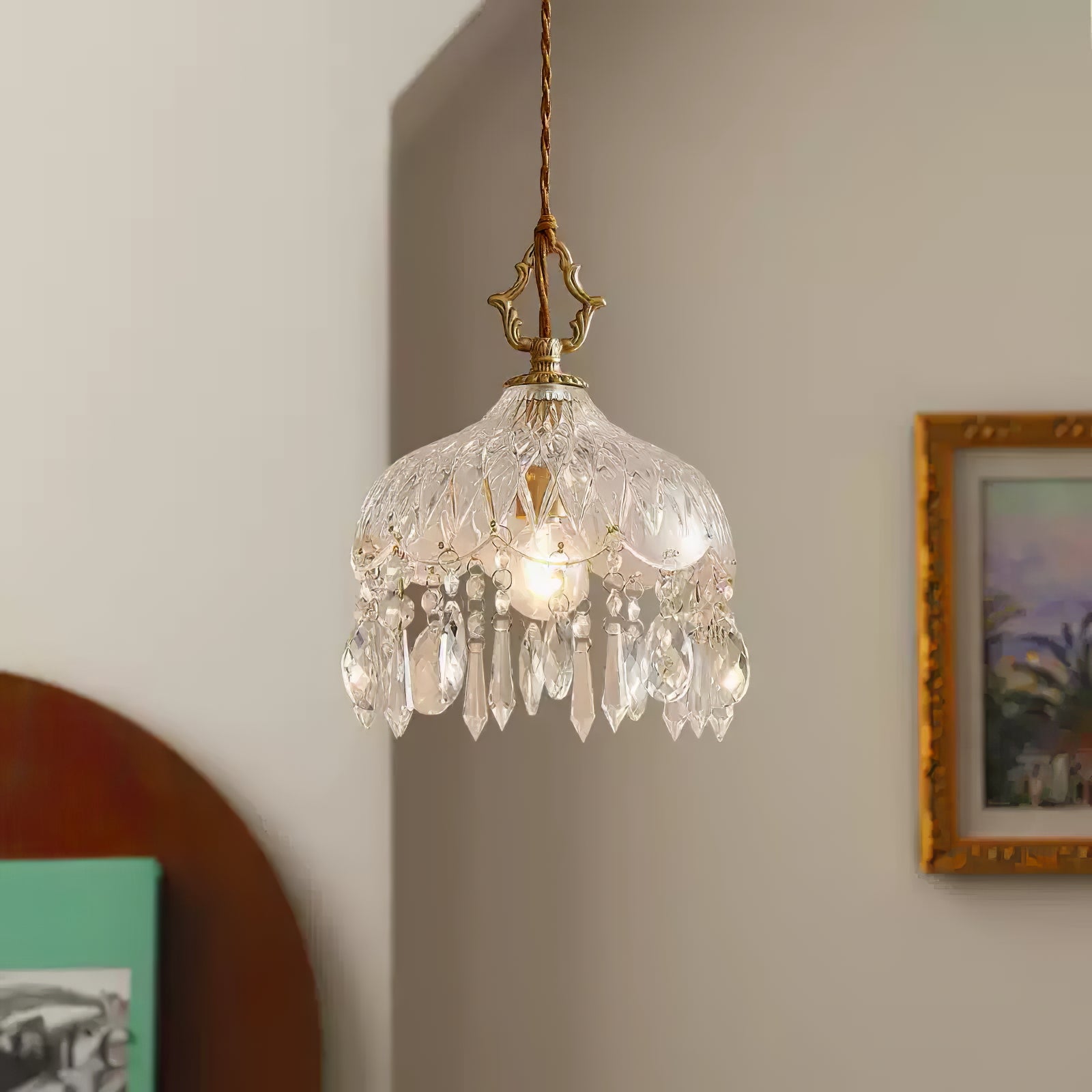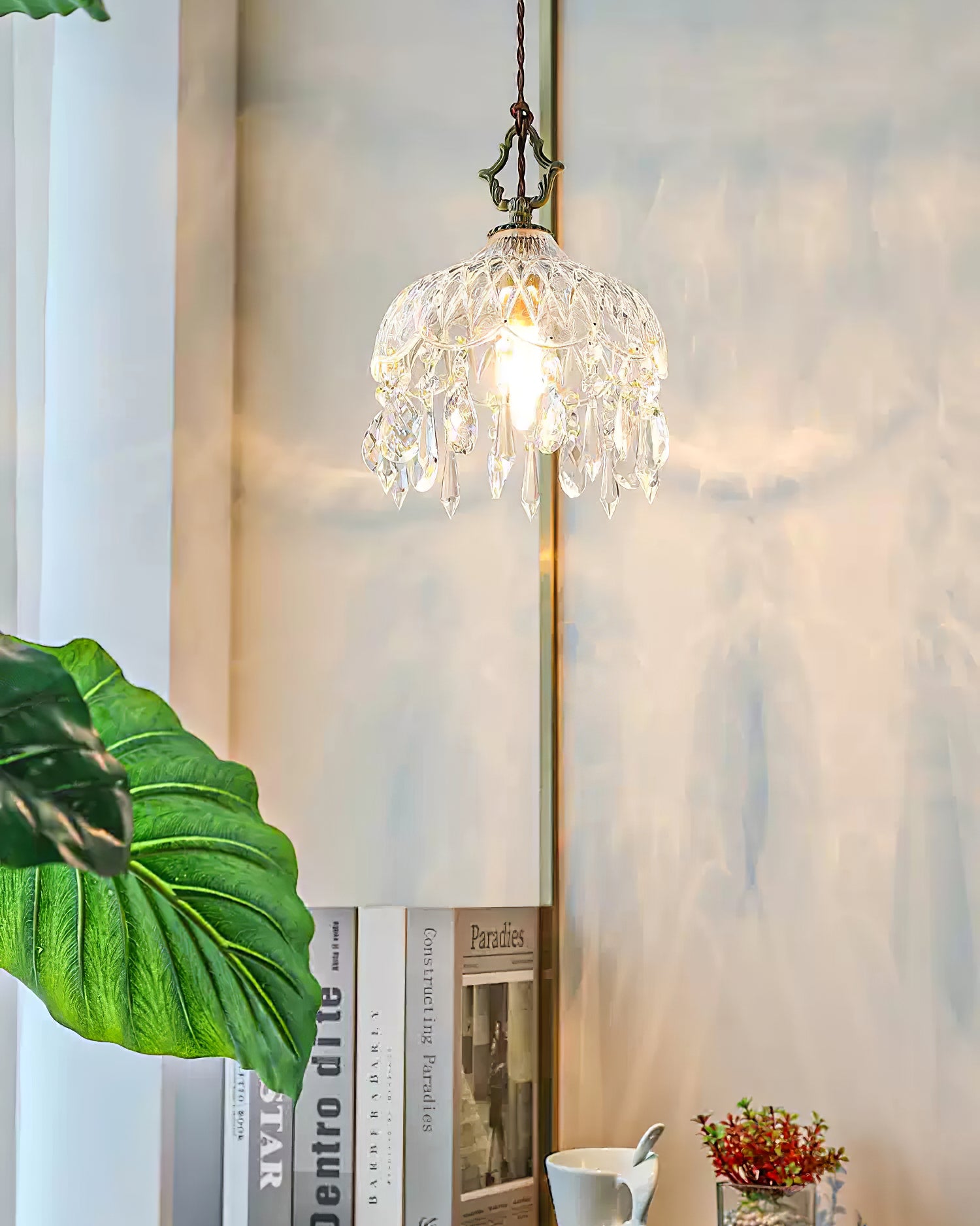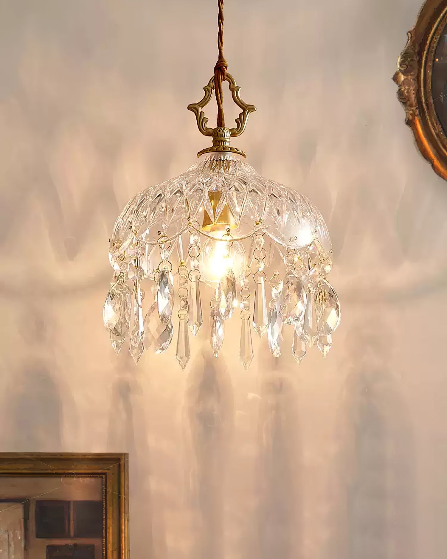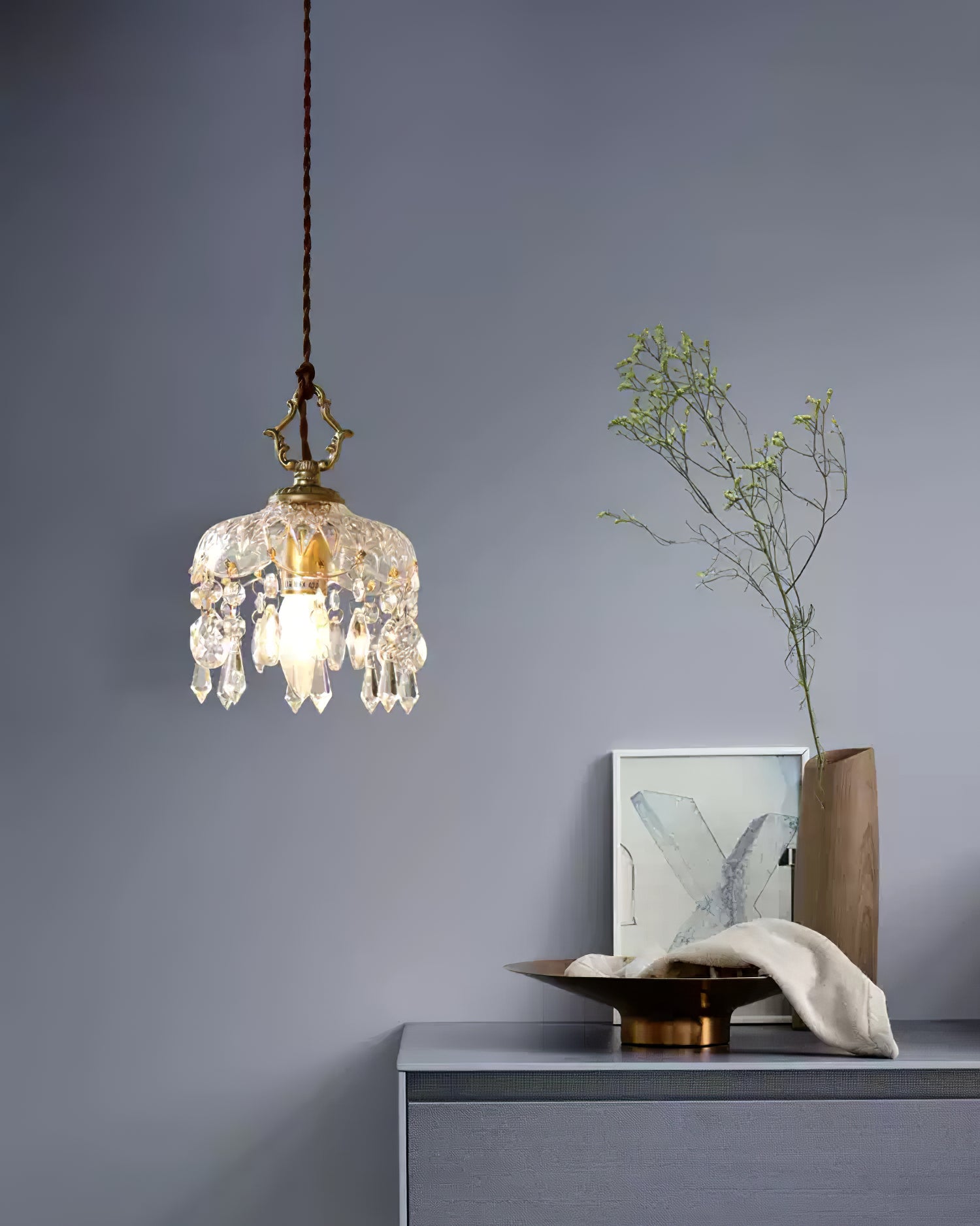 Elevate your home’s ambiance with Liootrlamp's vintage crystal pendant light. This beautifully crafted small chandelier features intricately cut crystals that sparkle with elegance and timeless charm. Its compact design makes it an ideal lighting solution for intimate spaces such as bedrooms, dining rooms, or reading nooks, adding a touch of sophistication to any room. With Liootrlamp, experience the perfect blend of classic beauty and modern functionality, illuminating your space with style and grace.