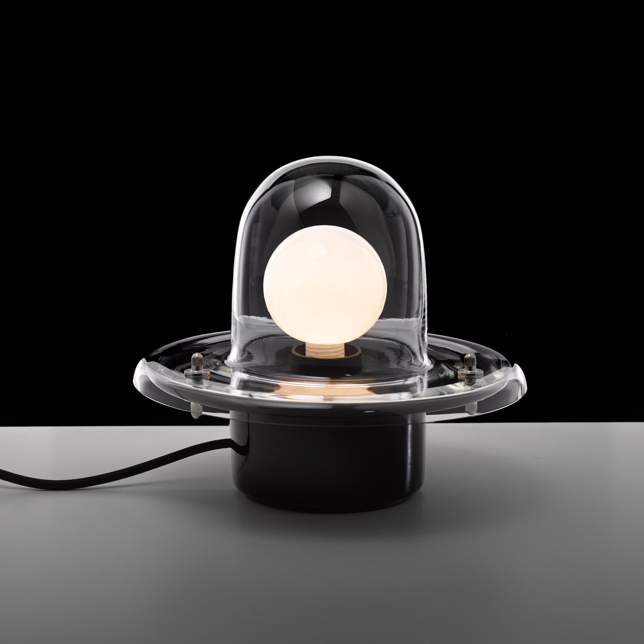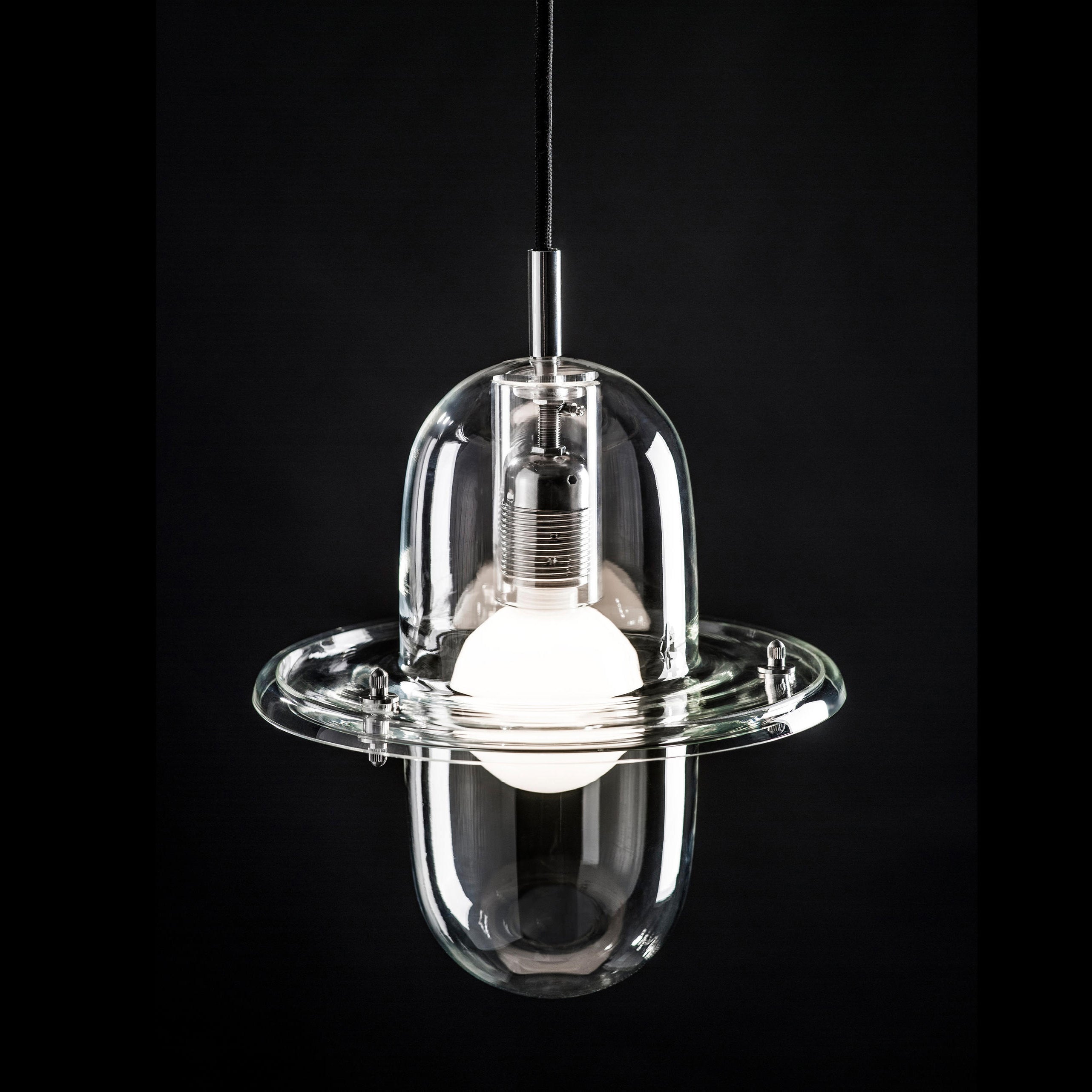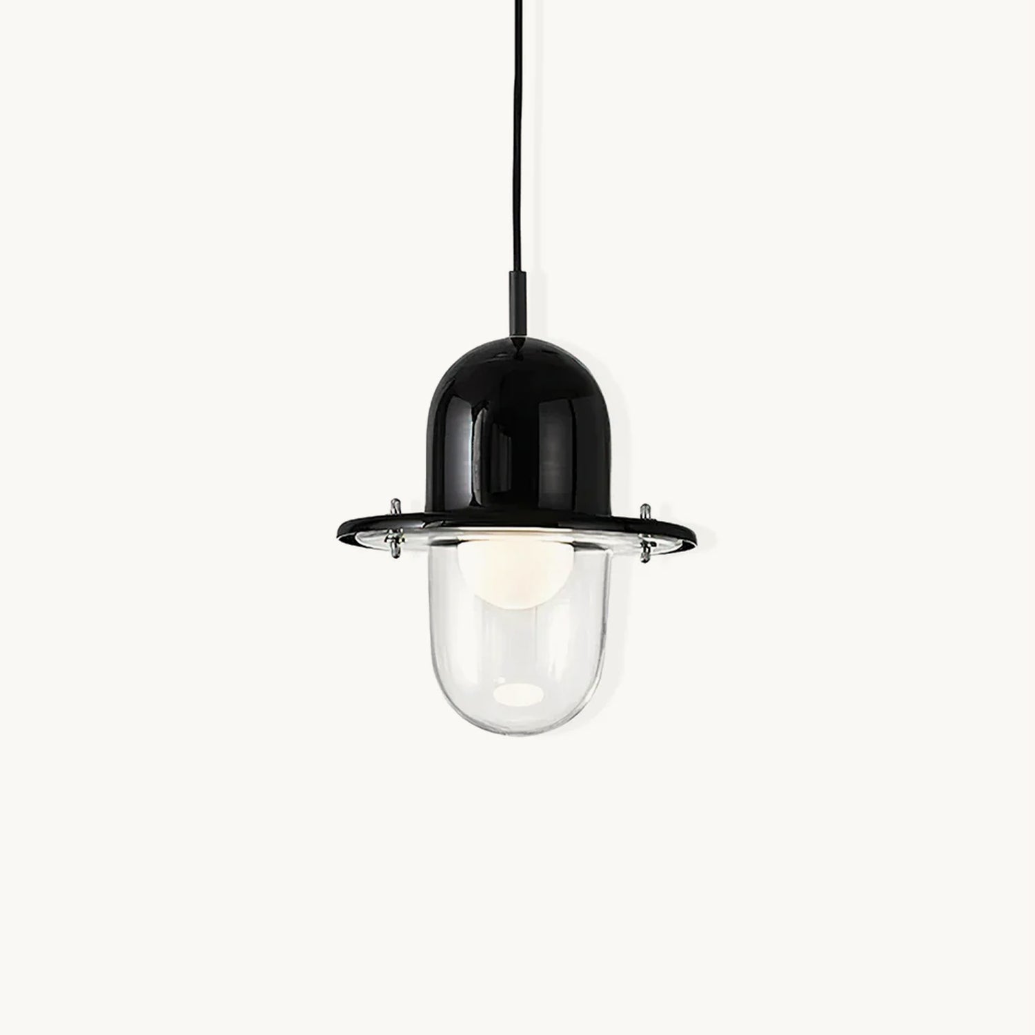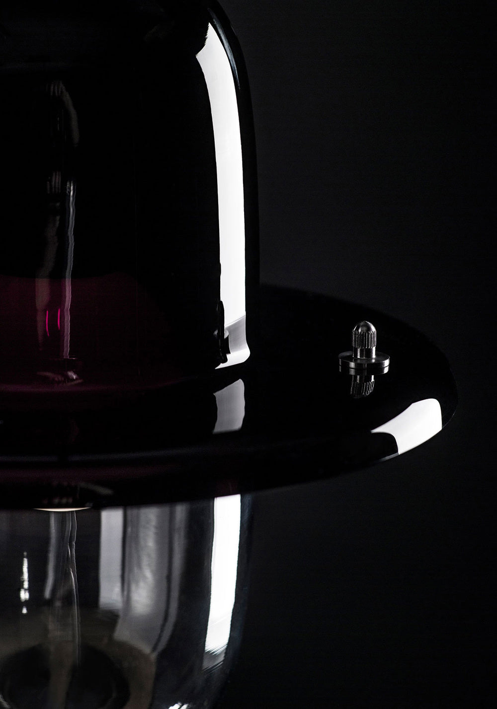 Inspired by industrial lighting and street lamps found in many European cities, the Hat pendant light combines practicality and simplicity with a humourous hint at the traditional, Victorian bowler hat. Its transparent or colored glass topper illuminates the ceiling, whilst the clear bottom portion is starkly utilitarian. Hats' upper and lower components are connected by three industrial-style, custom screws, and, inside, a translucent light bulb softens and evenly distributes the light. Hats pendant lights are ideal for small interiors and are also suitable to be combined into groups.
