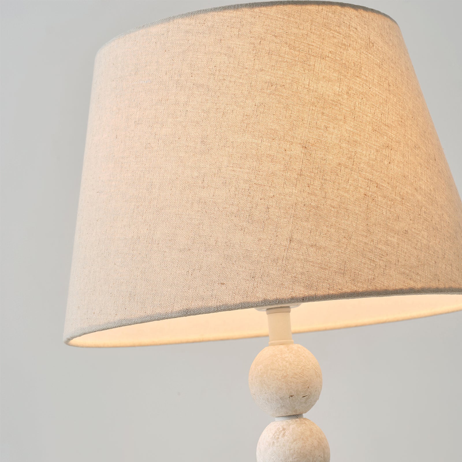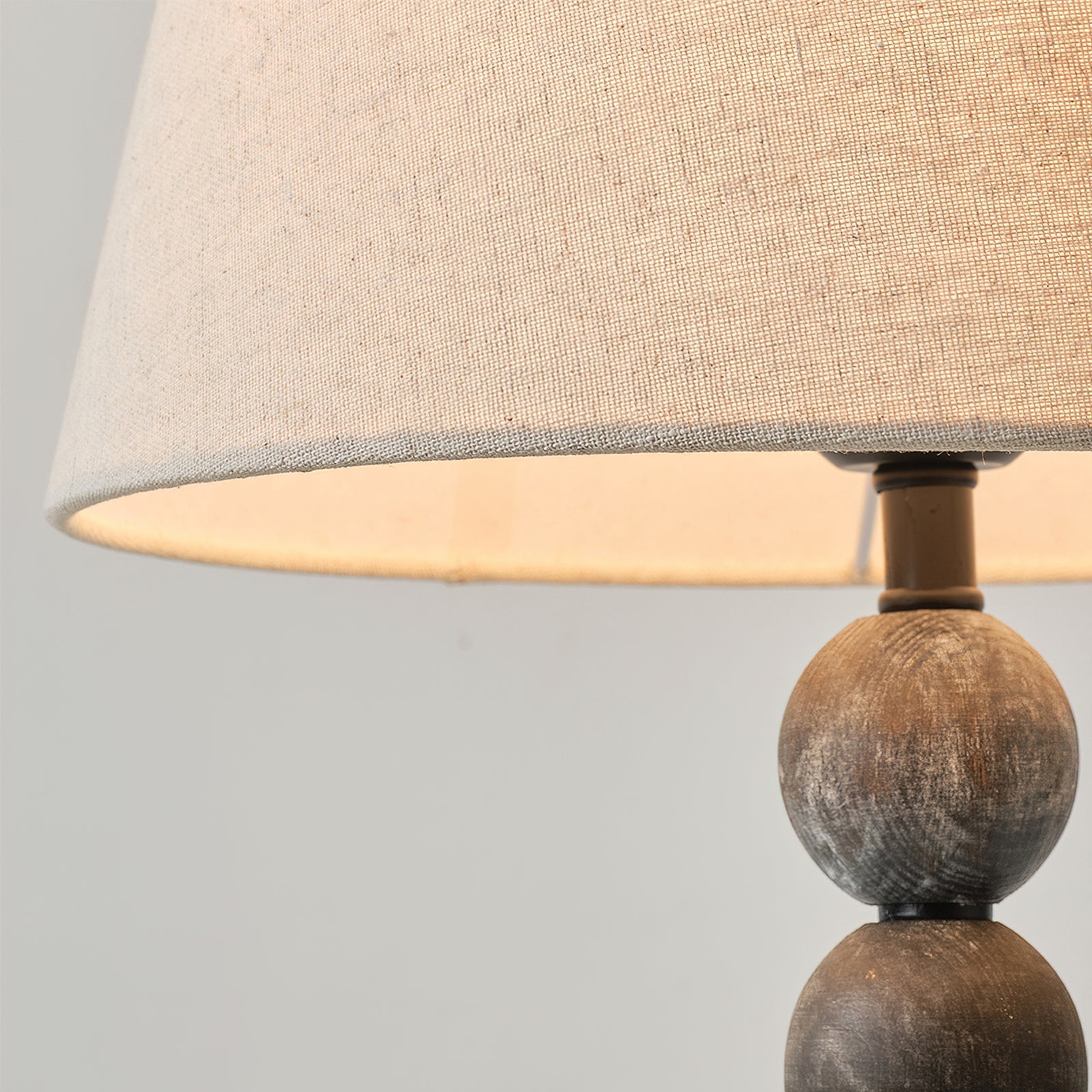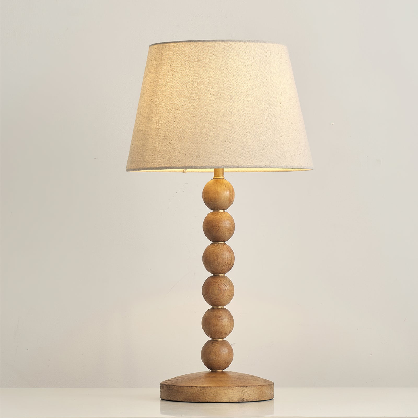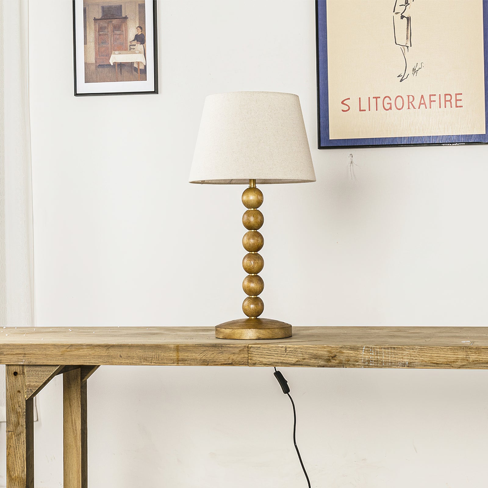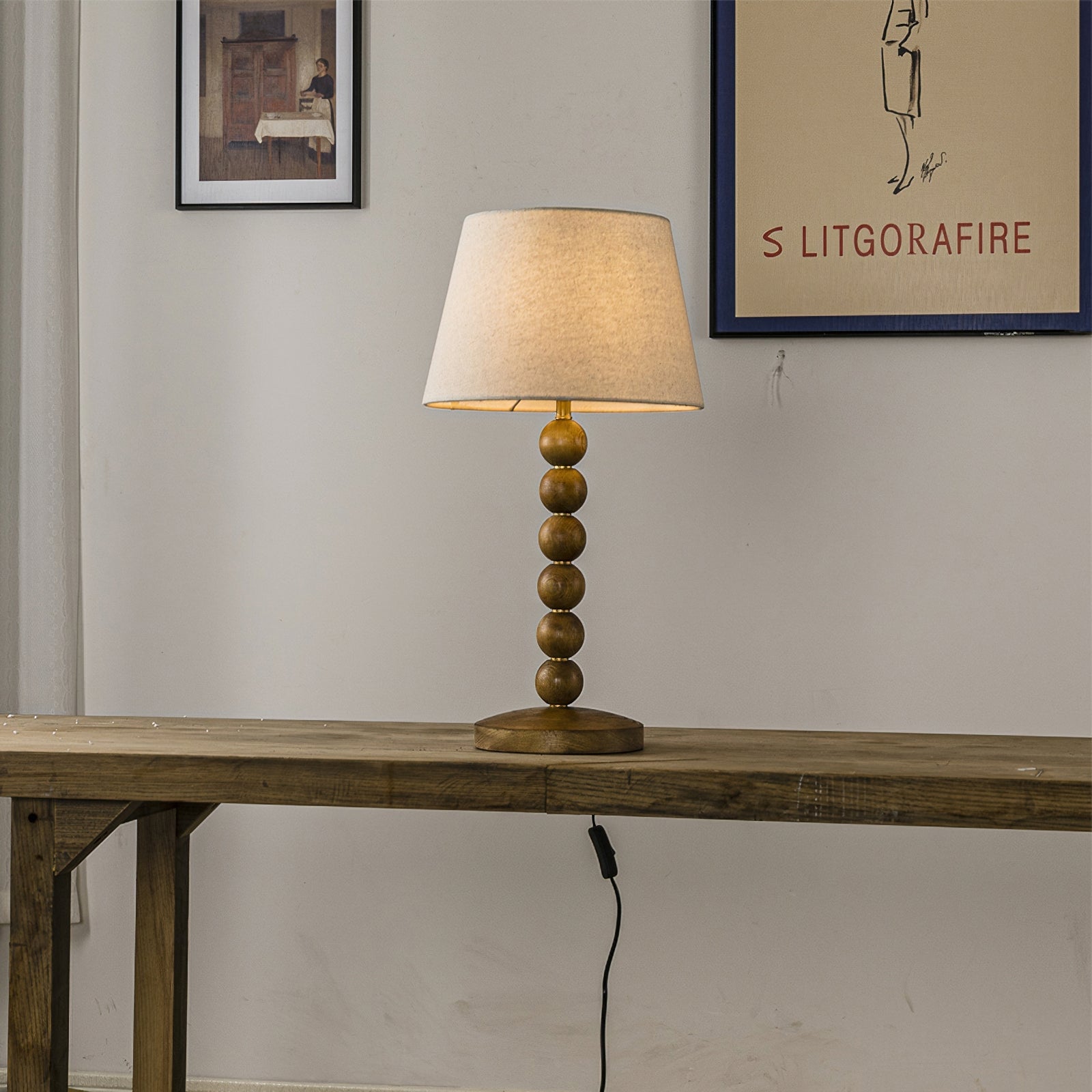 The Hivvago Table Lamp features a durable solid wood base paired with an off-white fabric drum shade, delivering soft, natural illumination. Designed for both style and function, it enhances any room with a warm, inviting glow while complementing a variety of décor styles.