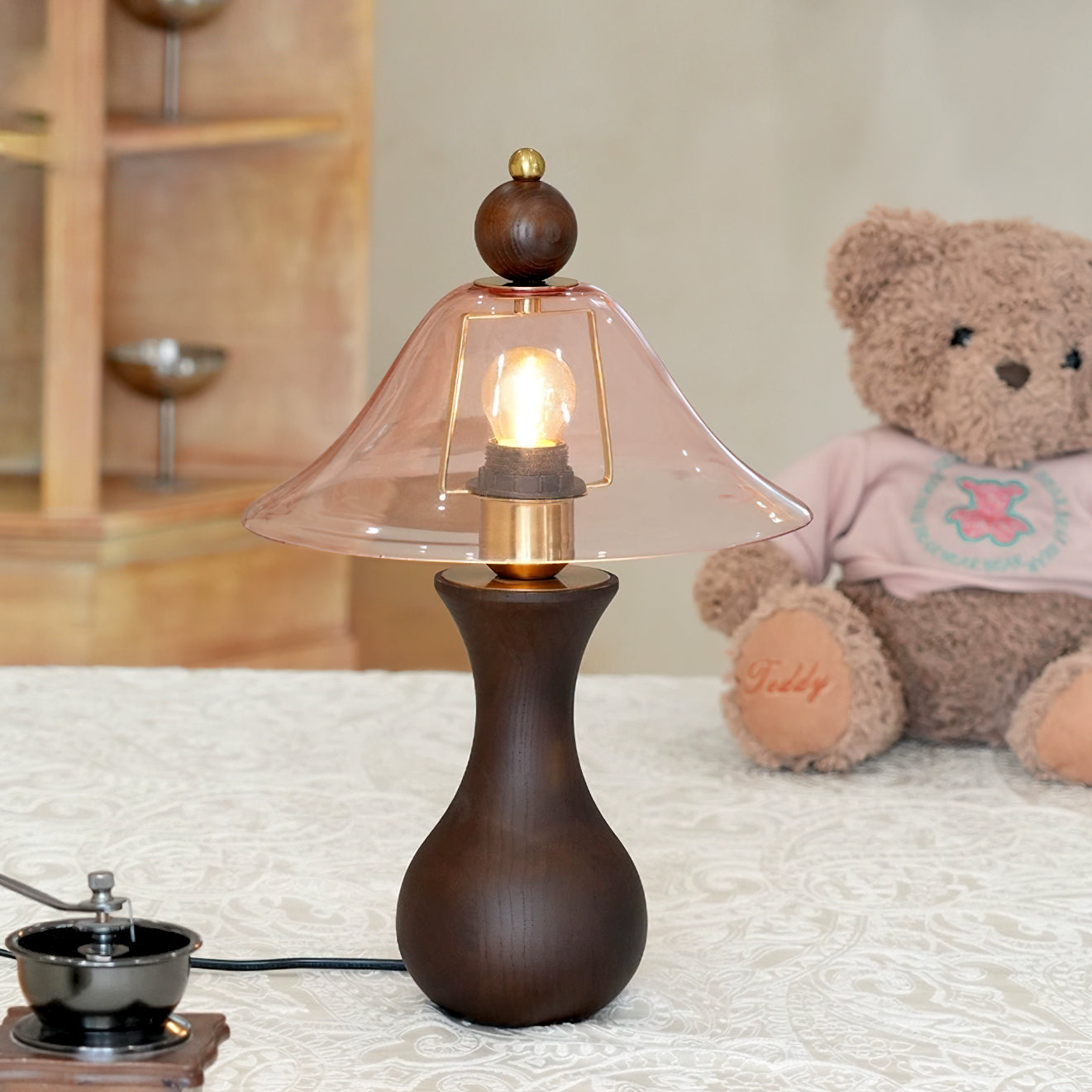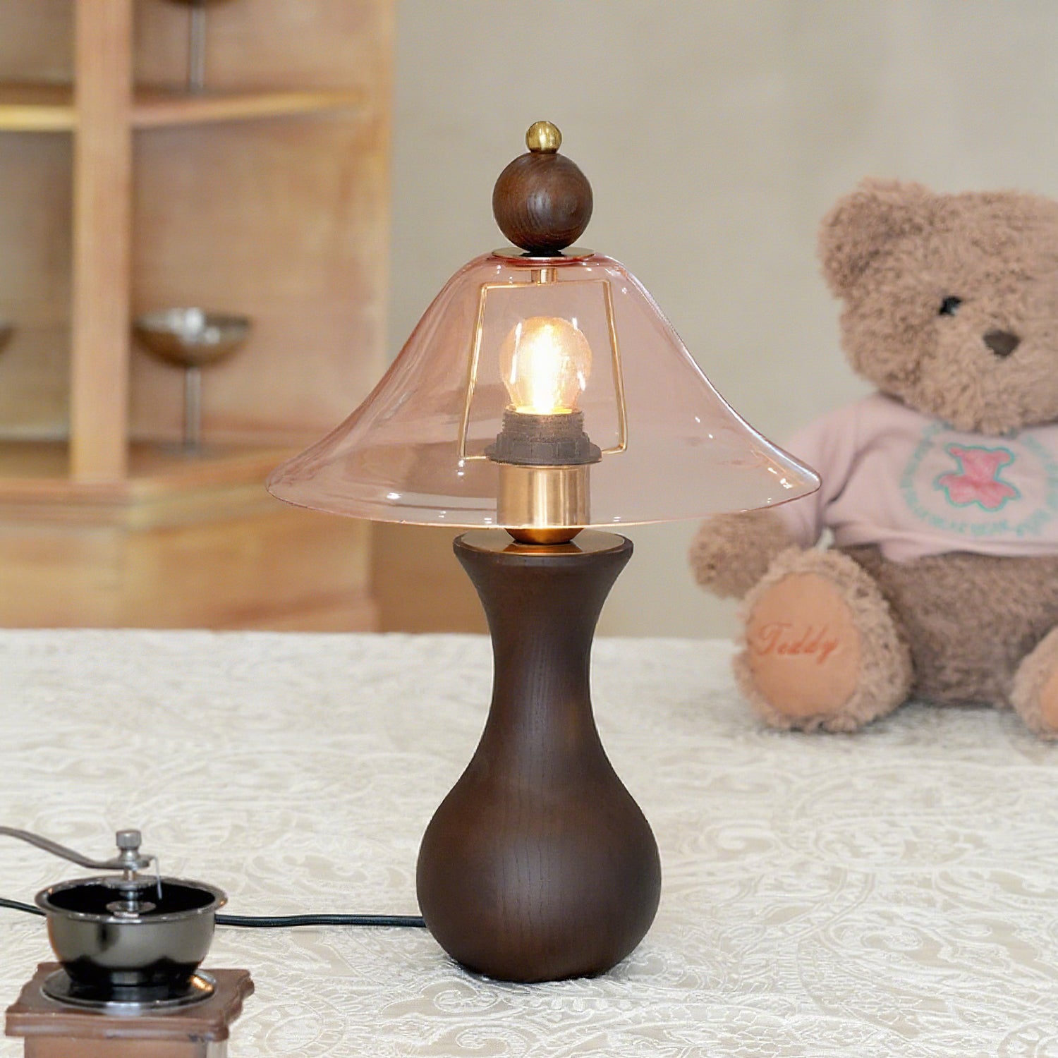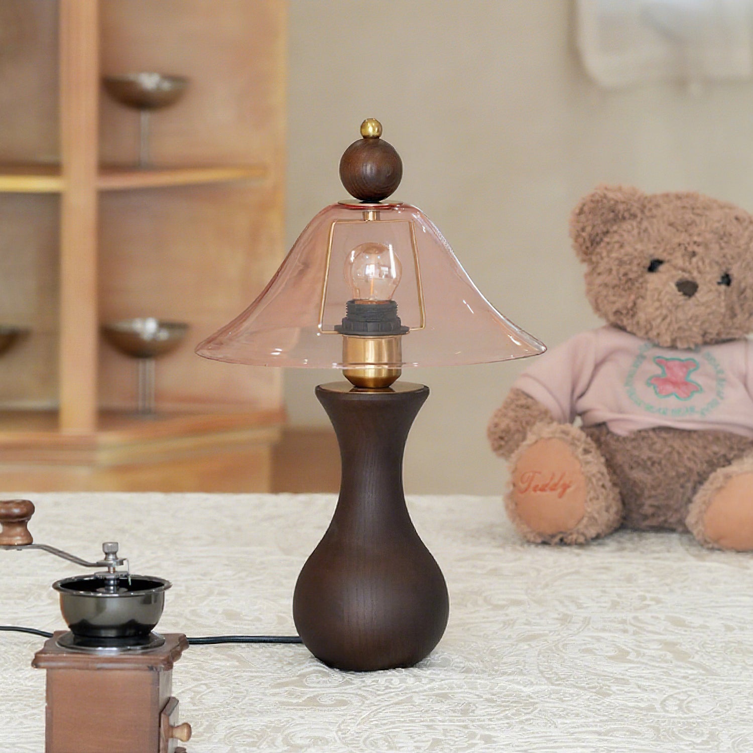 - Lampshade: Amber, Pink.